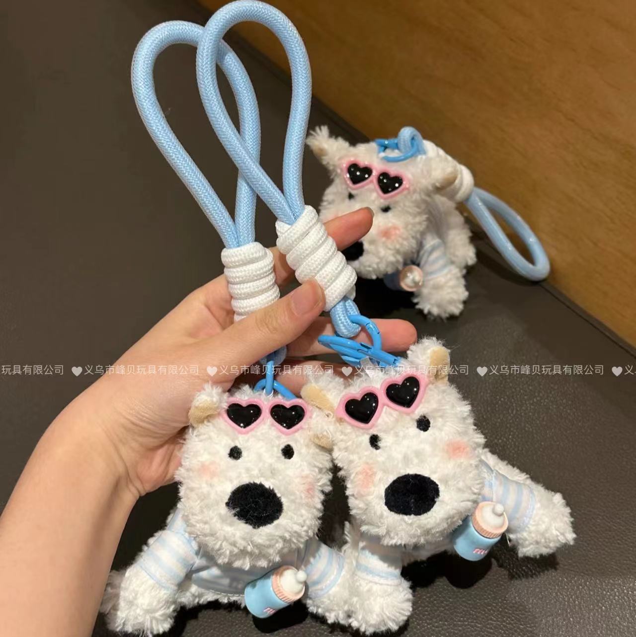 거짓말 자세 녹색 줄무늬 병 서쪽 고지대 봉제 장난감 작은 연구 장식 키 체인 가방 매달려 휴대 전화 다시 클립
