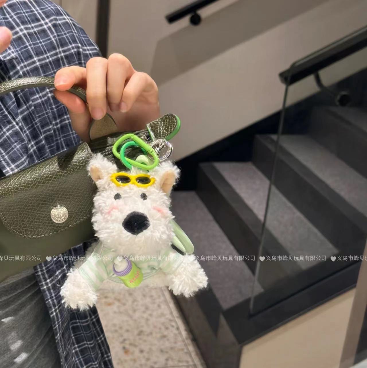 거짓말 자세 녹색 줄무늬 병 서쪽 고지대 봉제 장난감 작은 연구 장식 키 체인 가방 매달려 휴대 전화 다시 클립스토어 가기