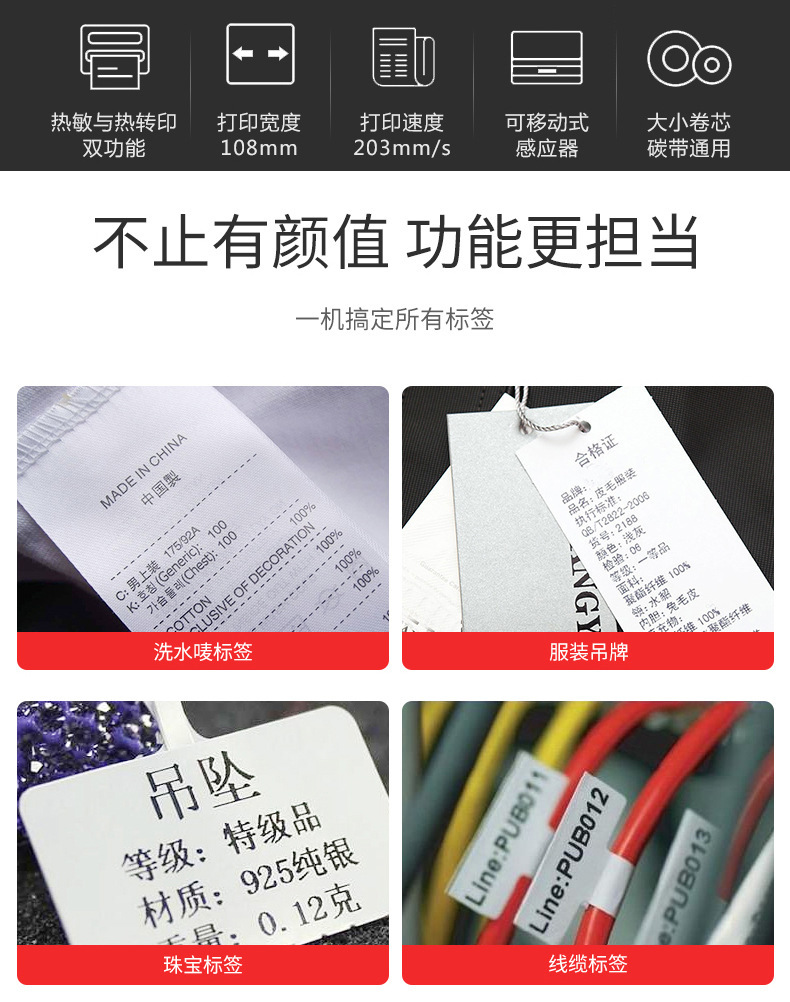 Bose G2108 G3106 HD 바코드 프린터 스티커 태그 인증서 세척 마크