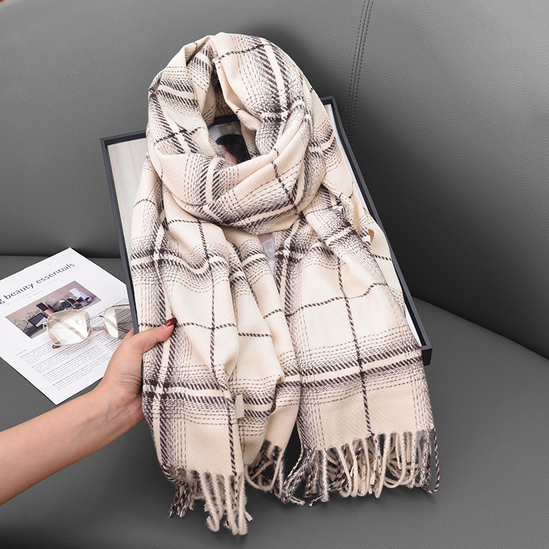 샤넬 스타일 스카프 여성의 가을과 겨울 캐시미어 부드러운 소녀 격자 무늬 두꺼운 목도리 한국식 올 매치 학생 스카프 따뜻한