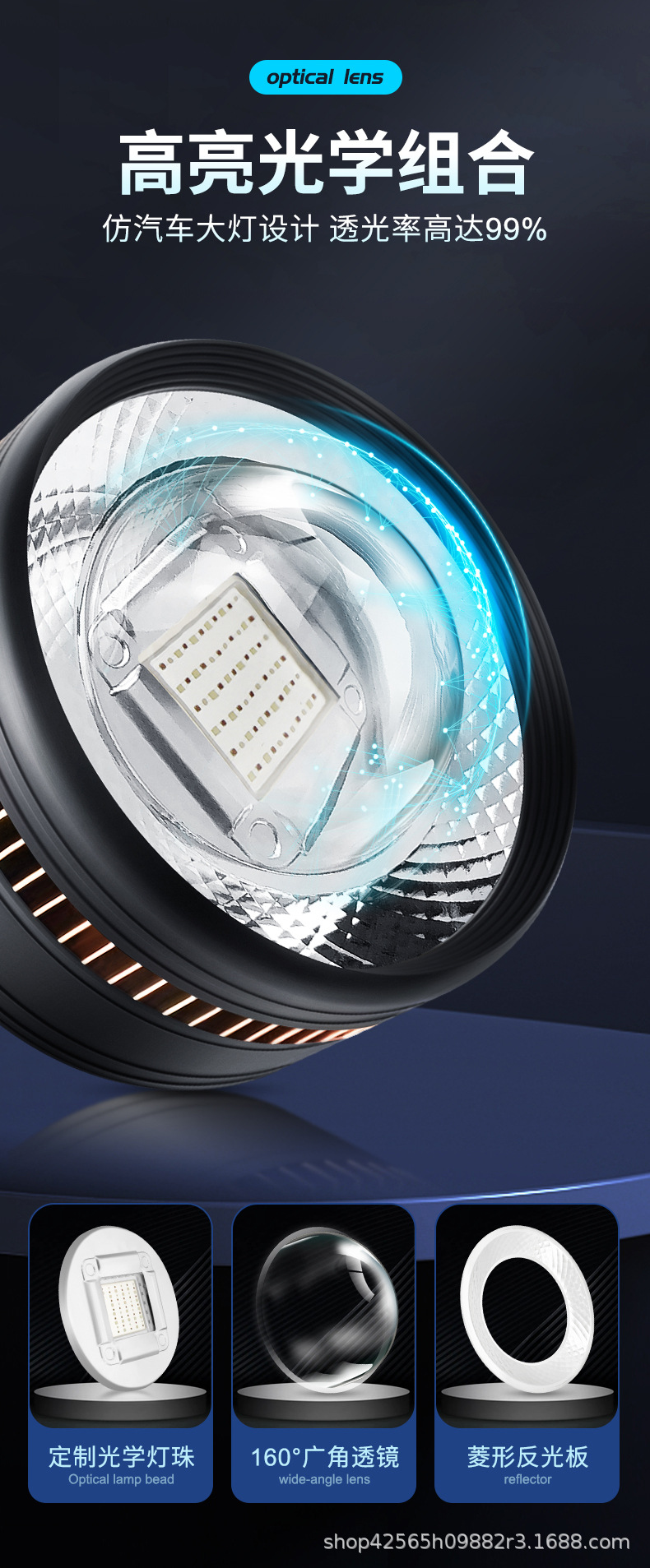 • 360°조정 가능한 램프 헤드 검정색 전체 스펙트럼 파란색 및 흰색 조명