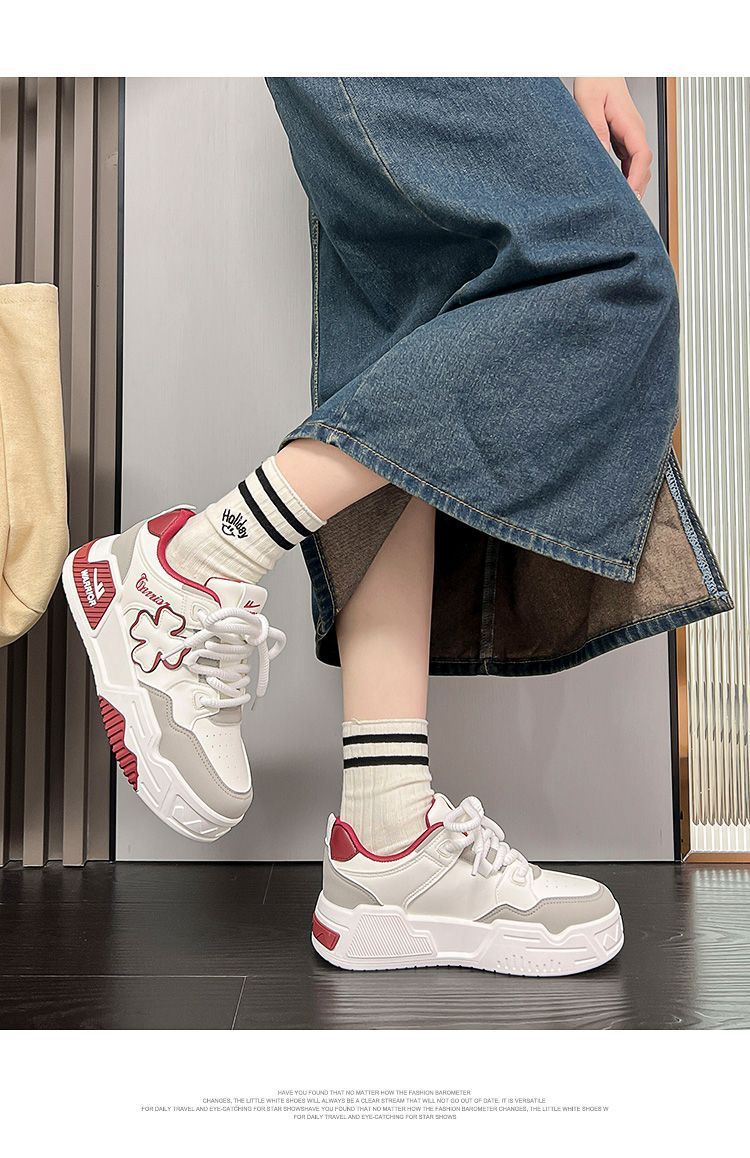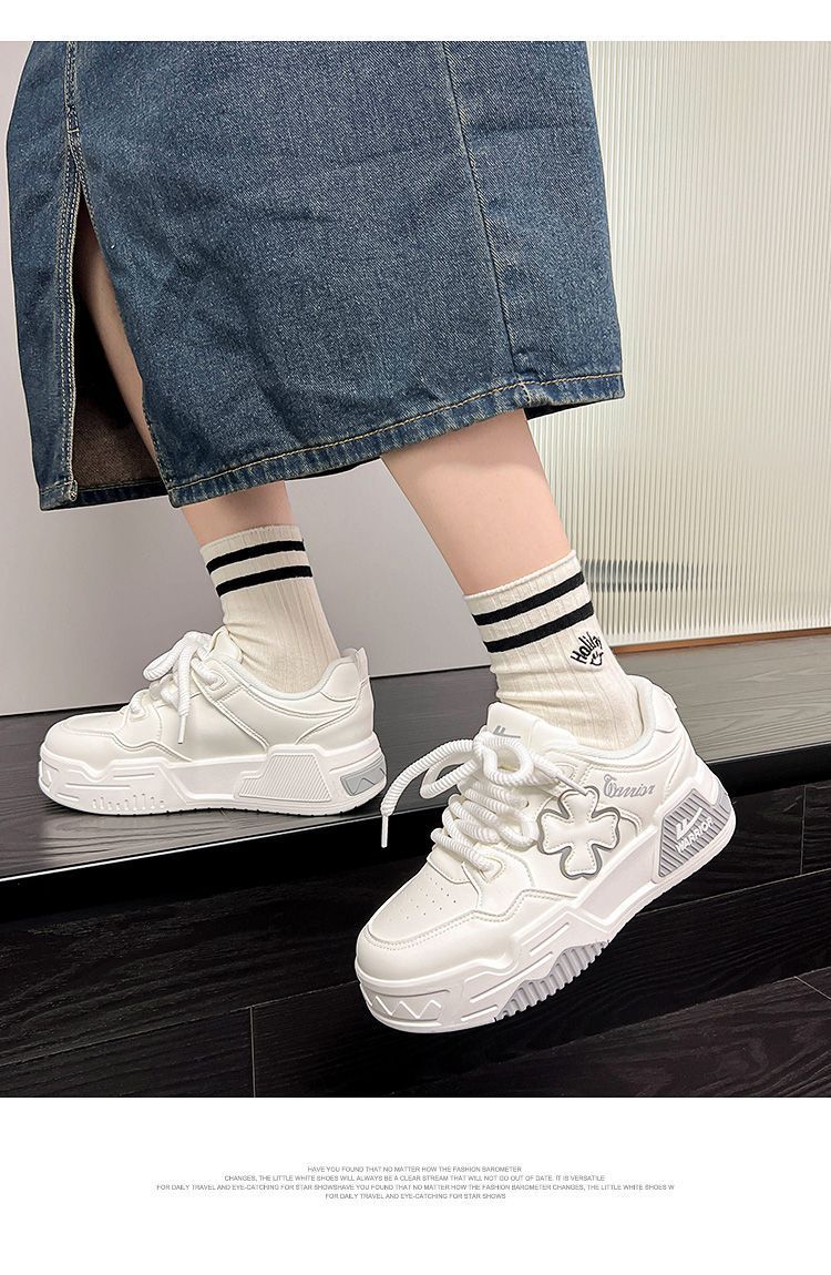국산 여성 신발 두꺼운 밑창 흰색 운동화 여성용 2024 신상 인기 패션 다용도 가벼운 캐주얼 신발 여성용 스니커즈