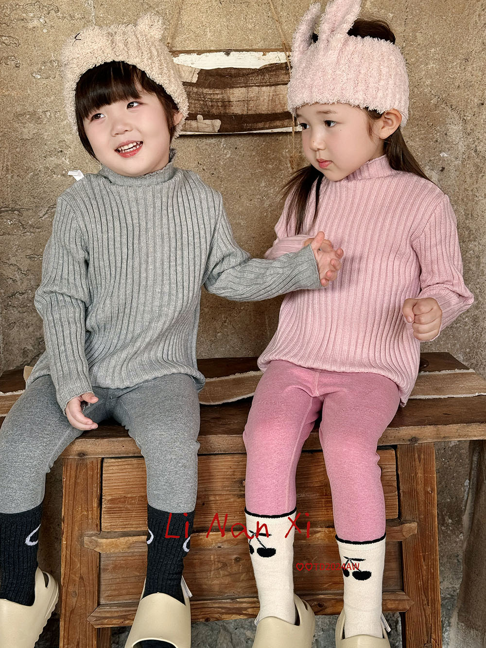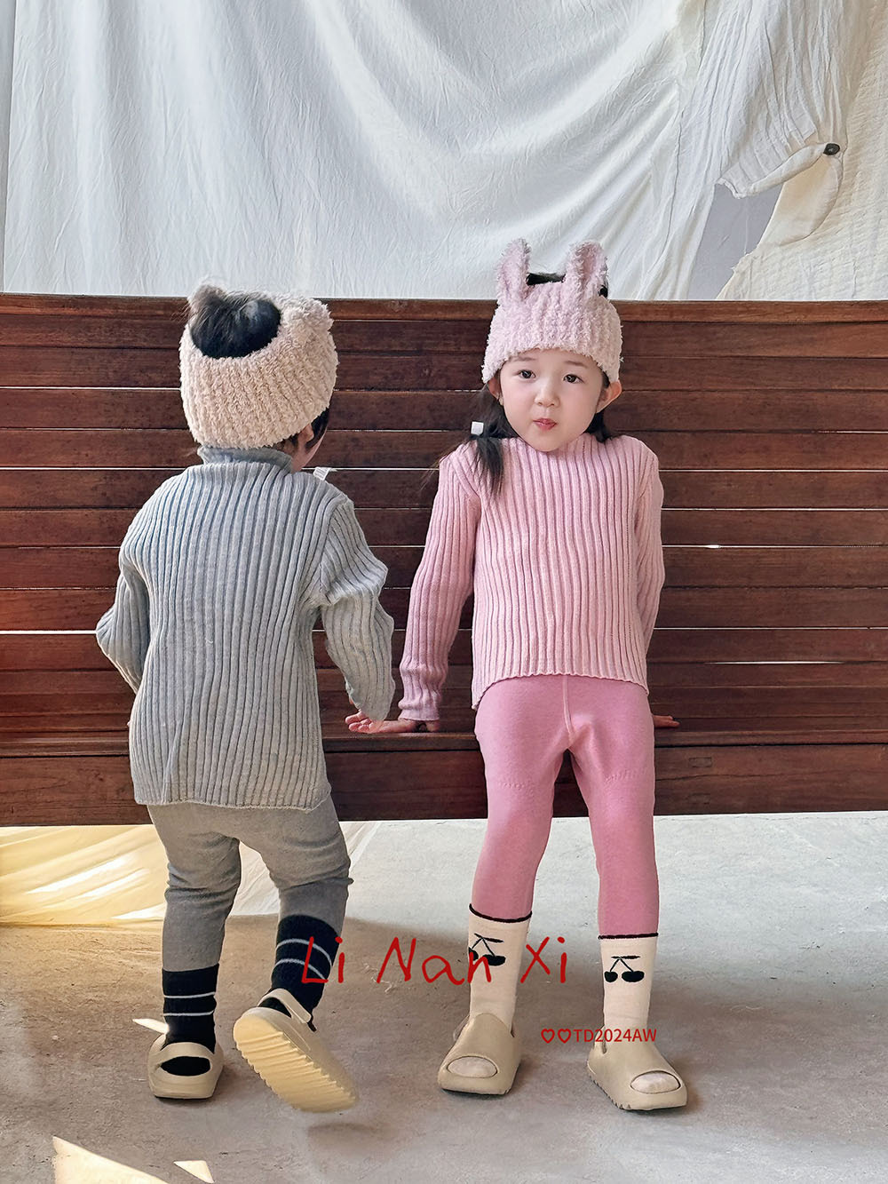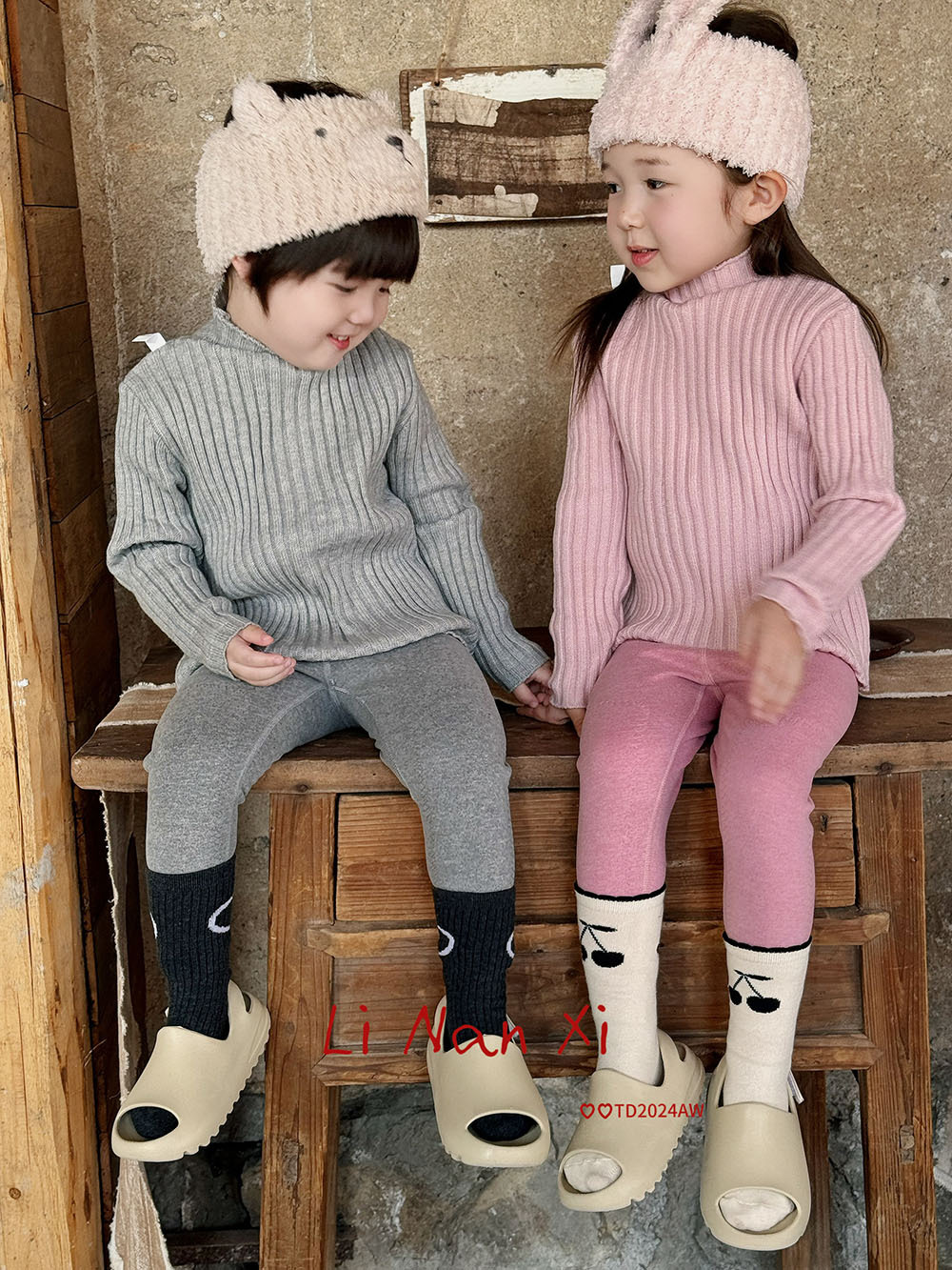 82385 어린이 가을 바지 다리 바지 무릎 바지 소년 소녀를위한 따뜻한 바지 아기 두꺼운 원피스 겨울 레깅스