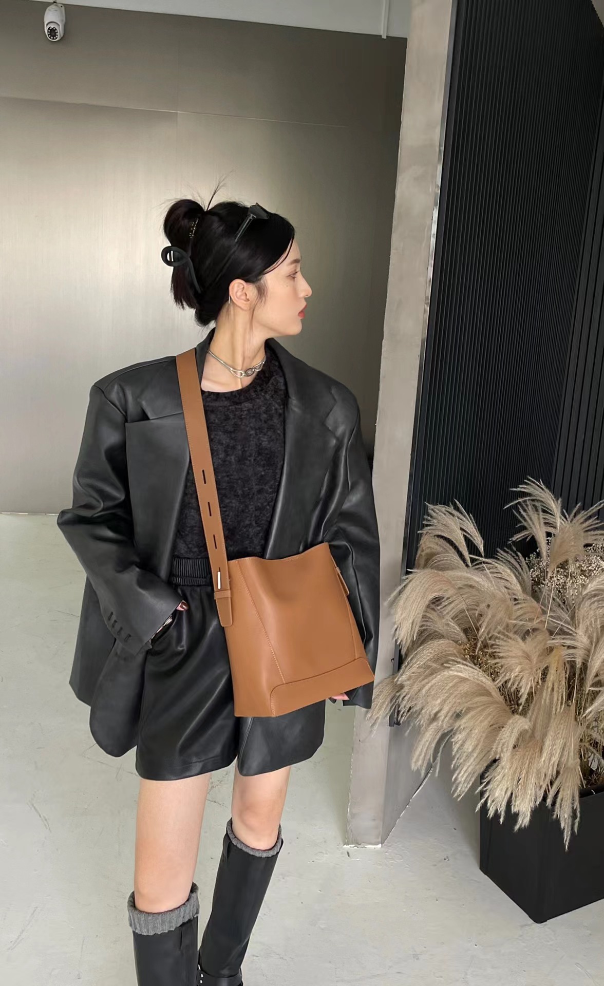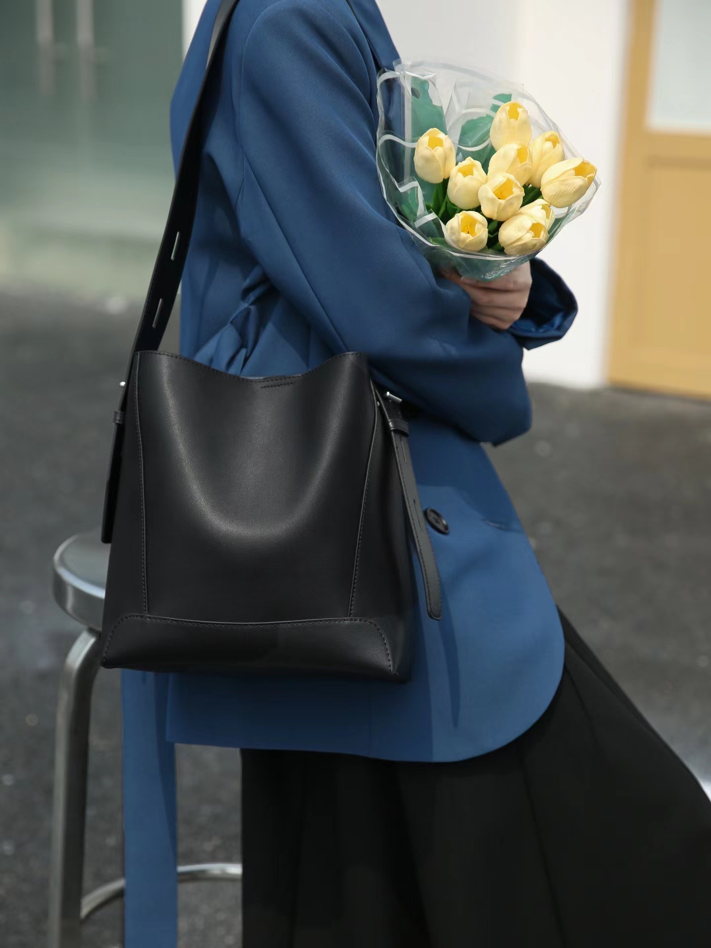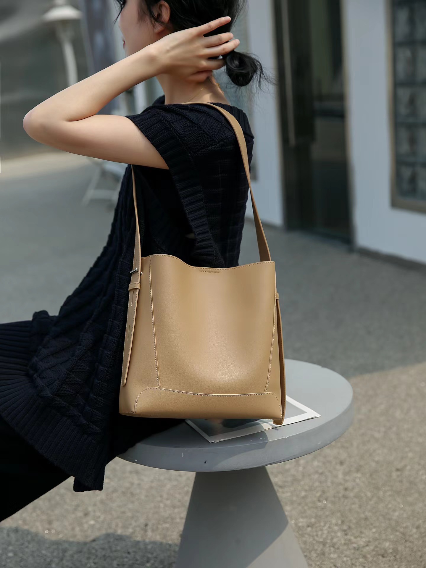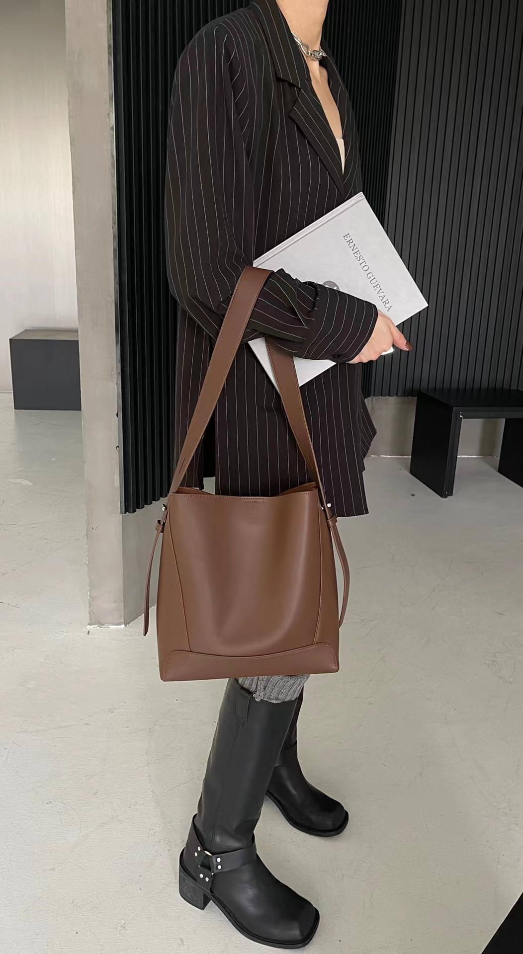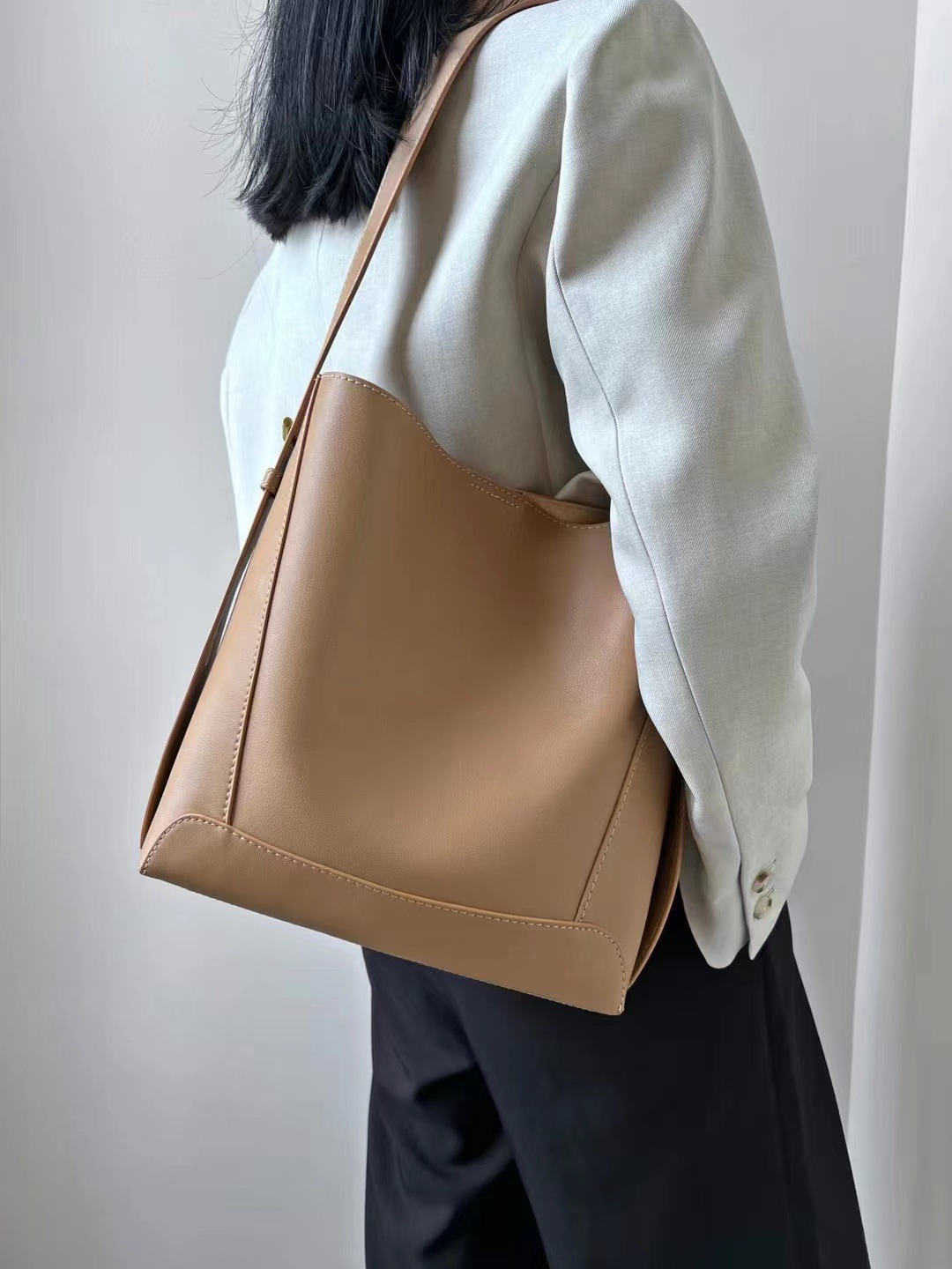여성용 대형 가방 2025 봄 여름 신작 여성용 가방 크로스 바디 백 다용도 가죽 숄더 대용량 통근 버킷 백