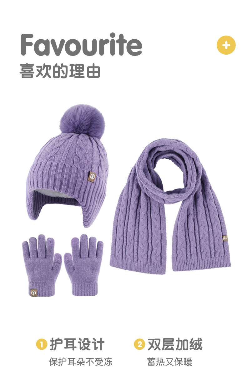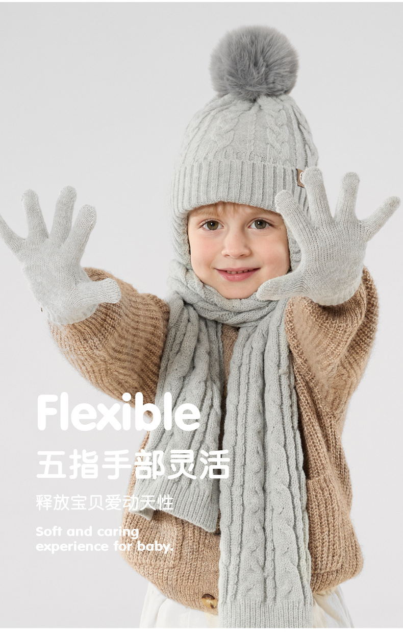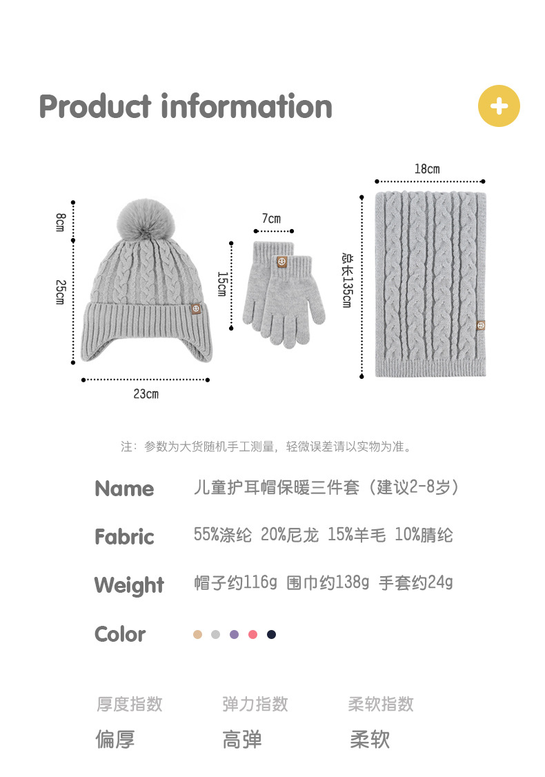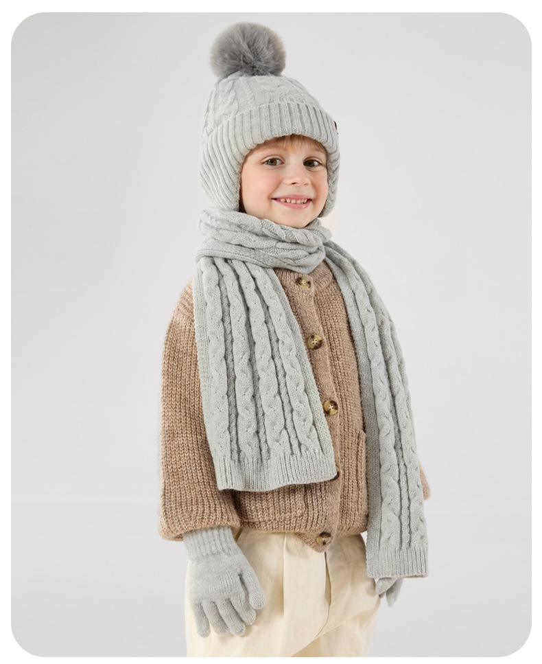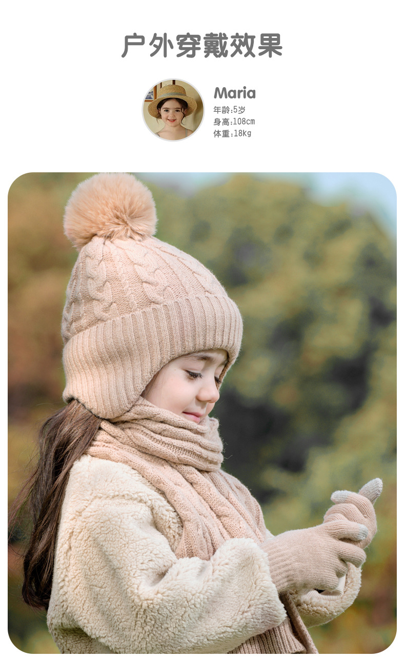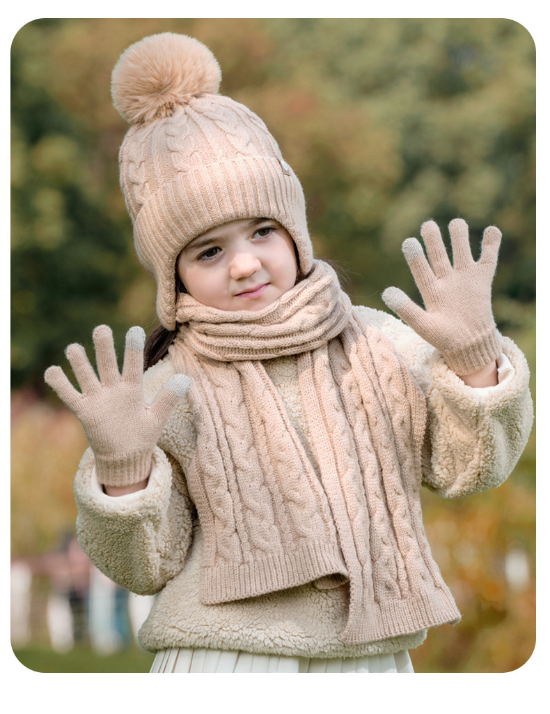 어린이 모자 스카프 장갑 3 피스 세트 따뜻한 방한 기모 니트 귀 보호 아기 모자 스카프 3 피스 세트