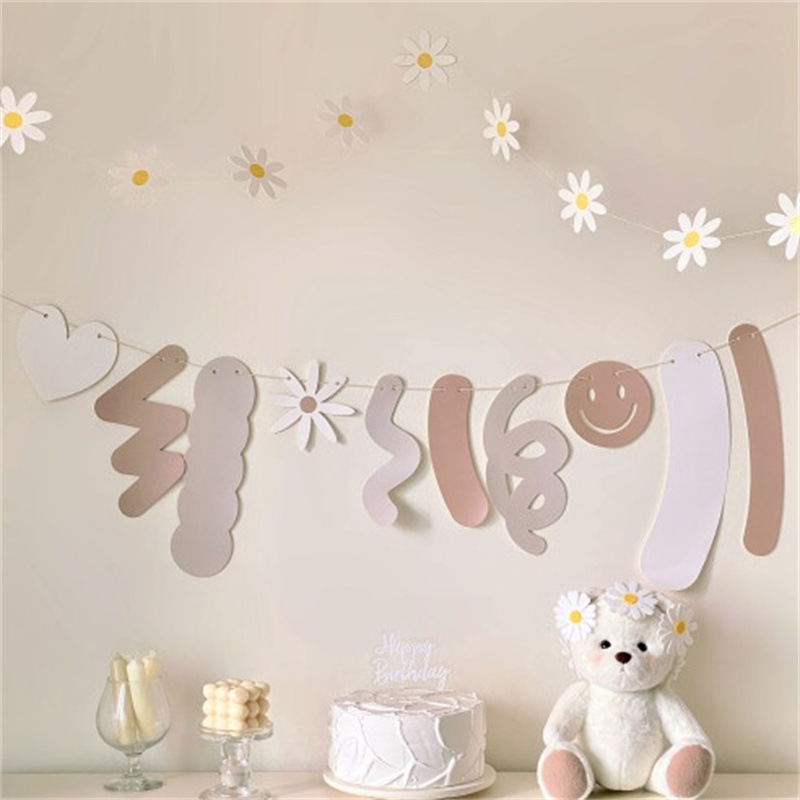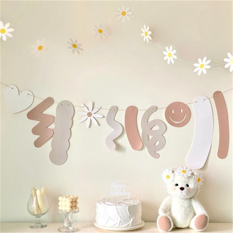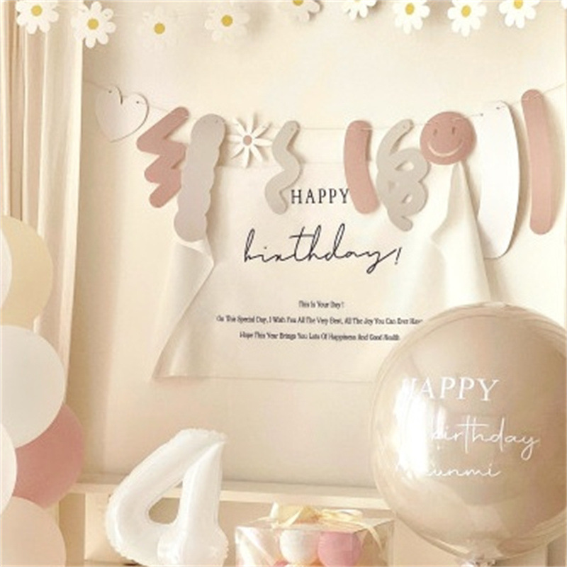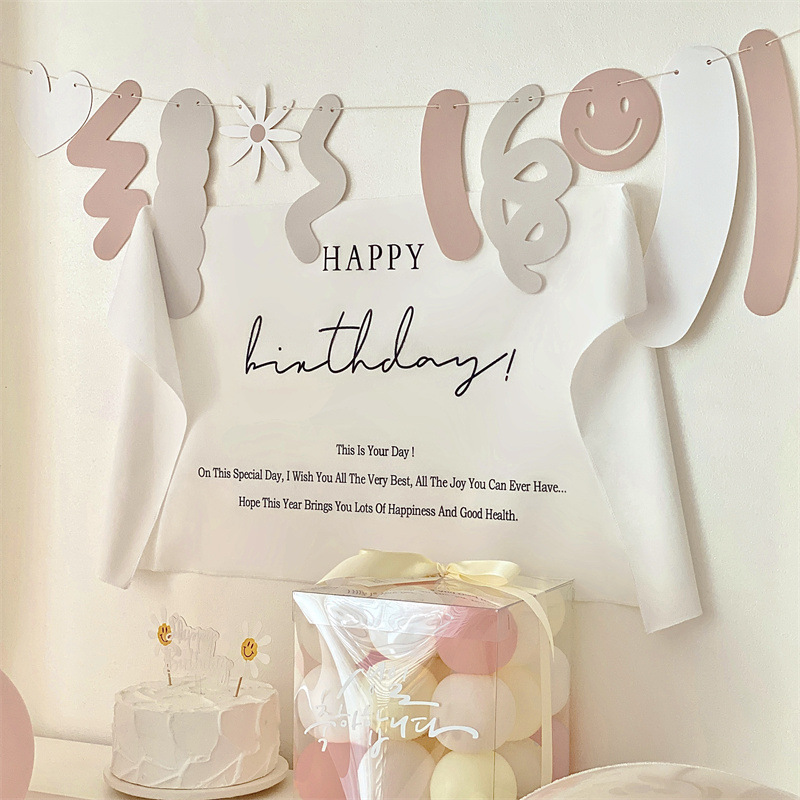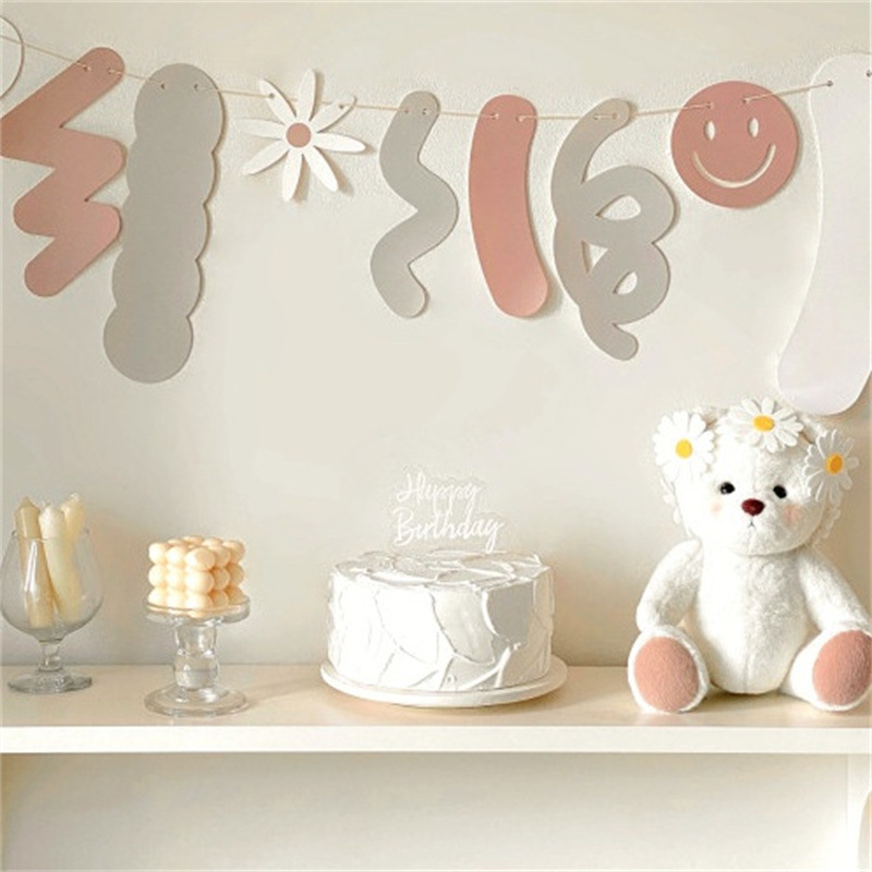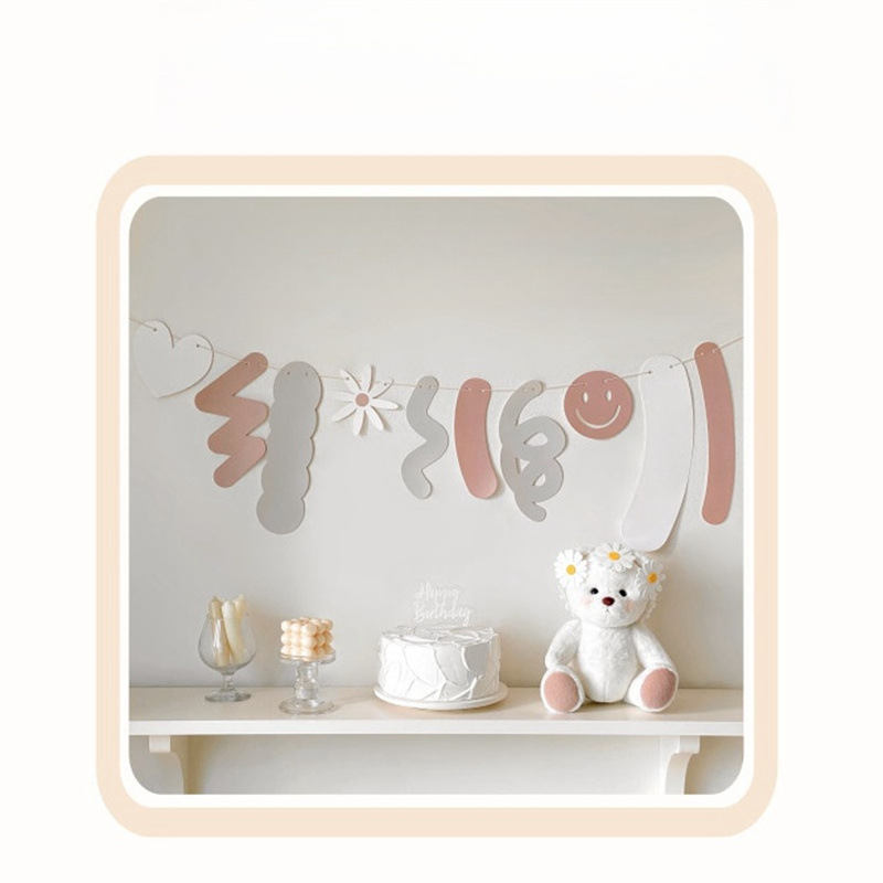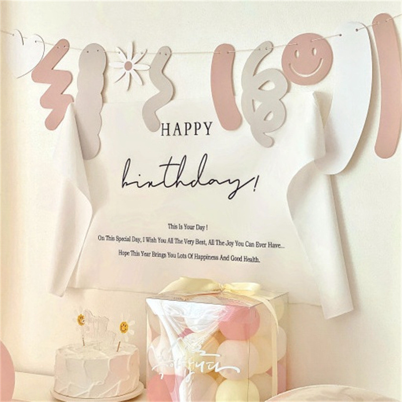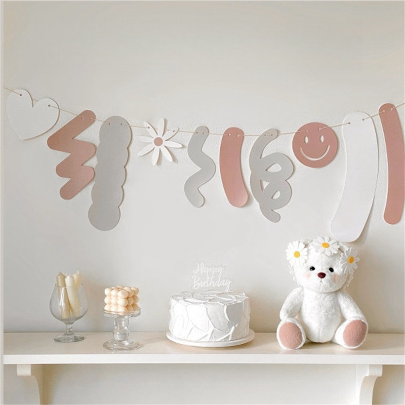 Ins 한국 같은 스타일 파우더 카페 롤 깃발 생일 파티 장식 모리 마일 라드 소녀 하트 소품 장식