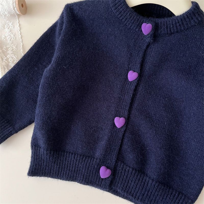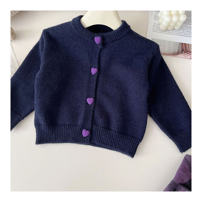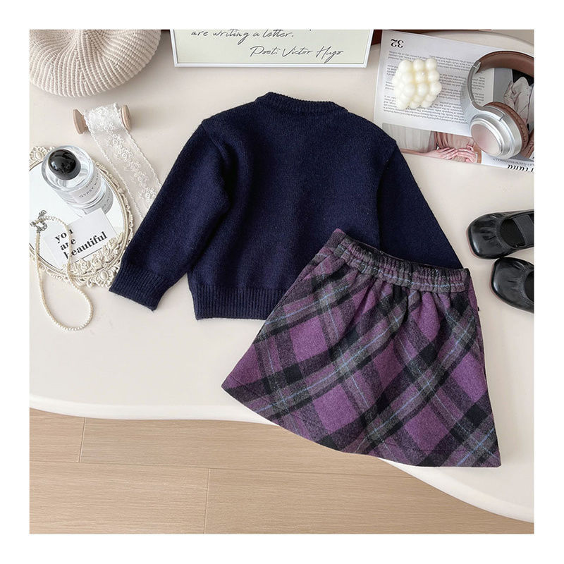 한국어 버전 2025 봄, 가을 의류 소녀 대학 스타일 러브 버튼 니트 카디건 어린 소녀 복고풍 격자 무늬 스커트