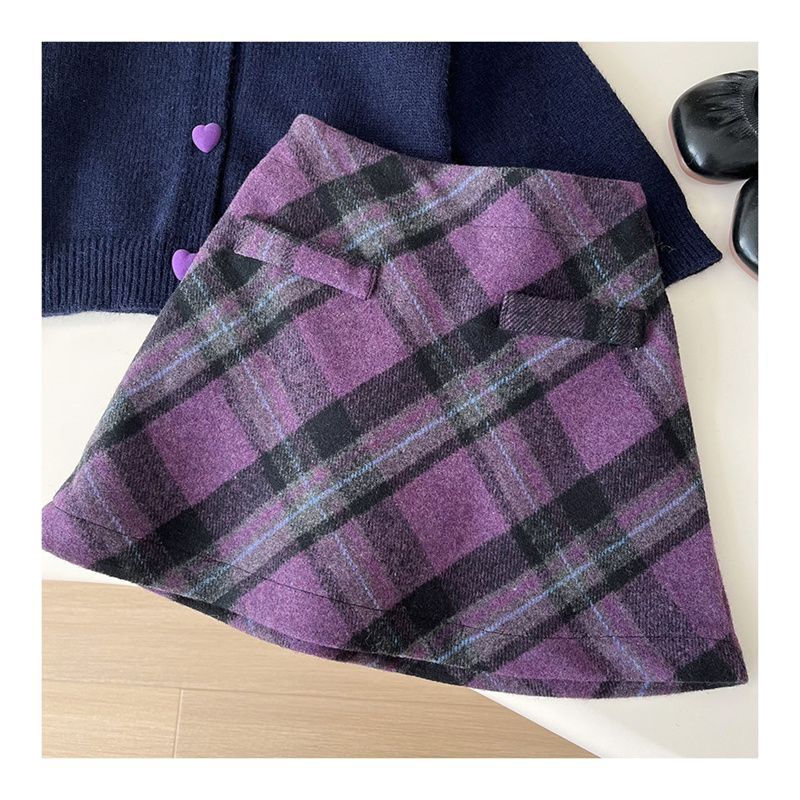 한국어 버전 2025 봄, 가을 의류 소녀 대학 스타일 러브 버튼 니트 카디건 어린 소녀 복고풍 격자 무늬 스커트스토어 가기