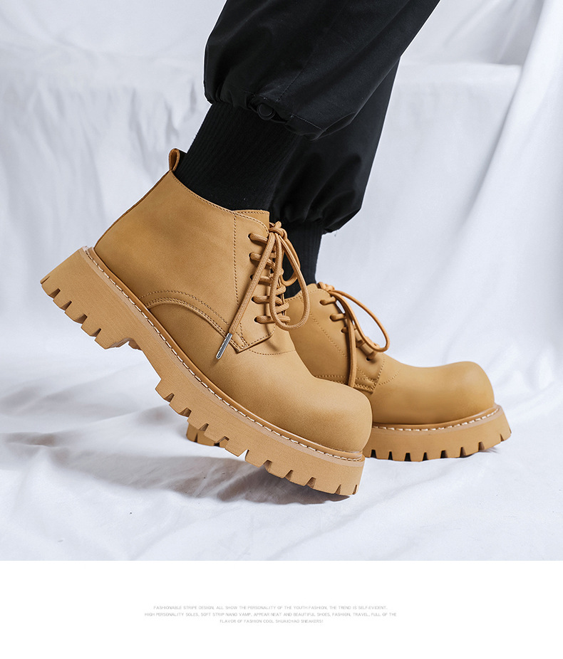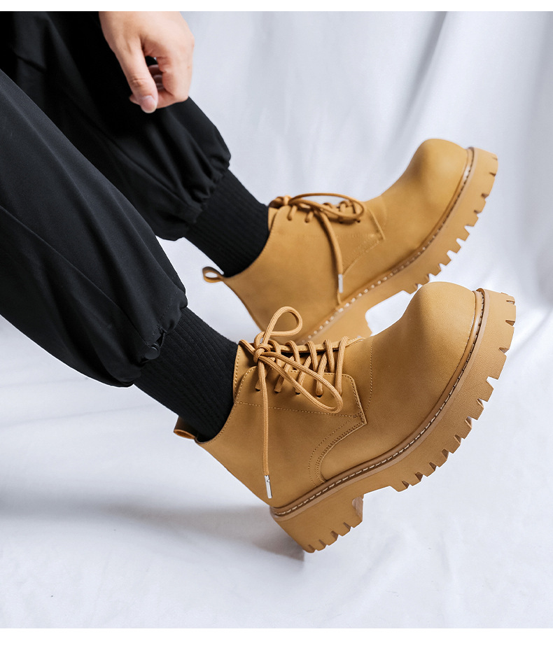 Big Toe Derby 신발 남성용 트렌디 한 영국 스타일 레트로 통근 라운드 발가락 2024 새로운 두꺼운 밑창 높은 마틴 부츠 발목 부츠스토어 가기