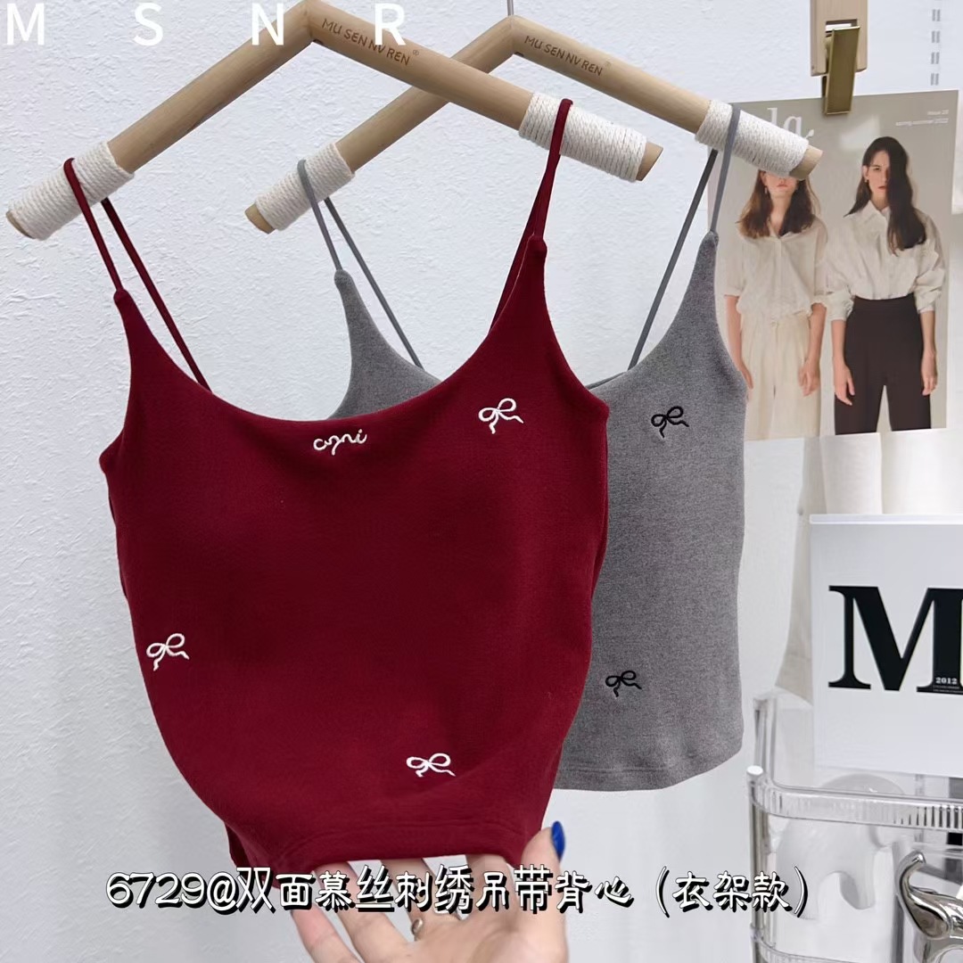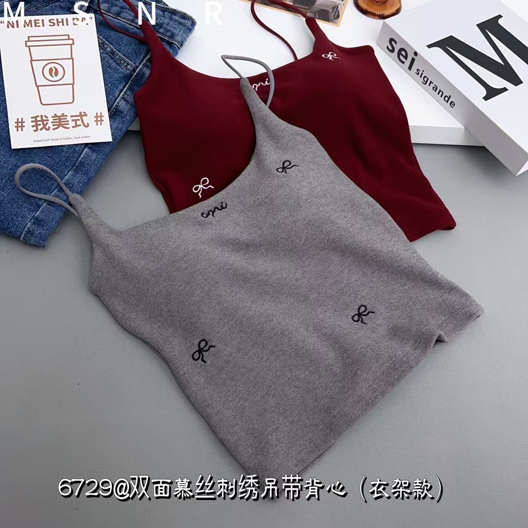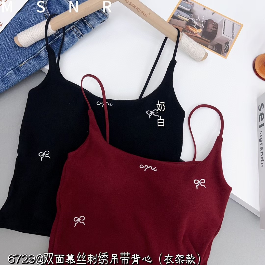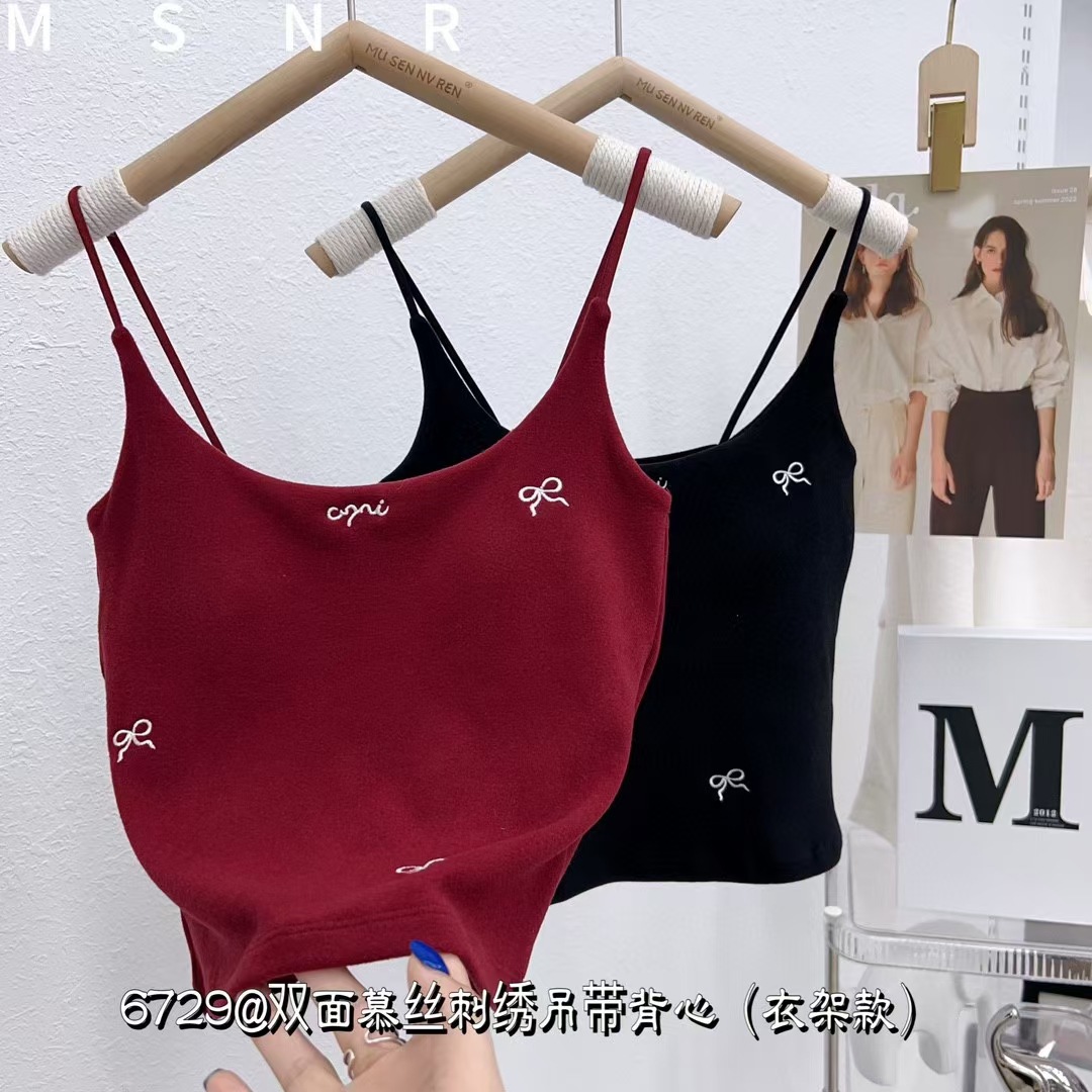 가슴 패드가 있는 여성용 한국식 새로운 가을 겨울 새 리본 자수 기모 두꺼운 따뜻한 캐미솔 탑스토어 가기