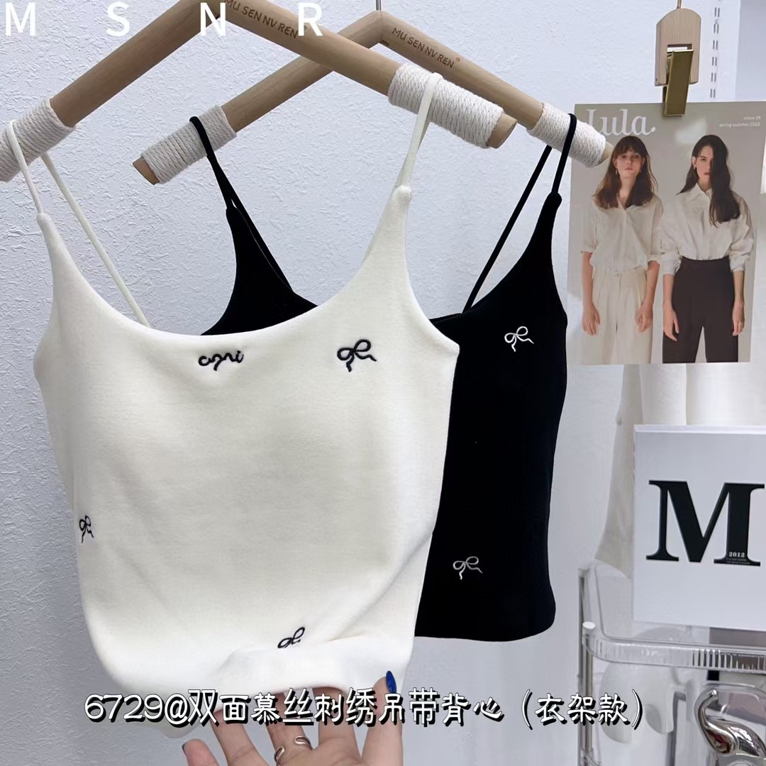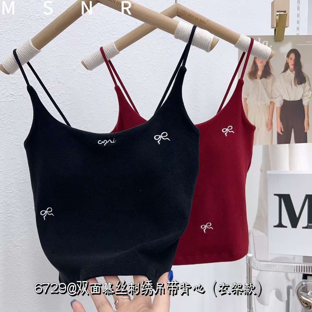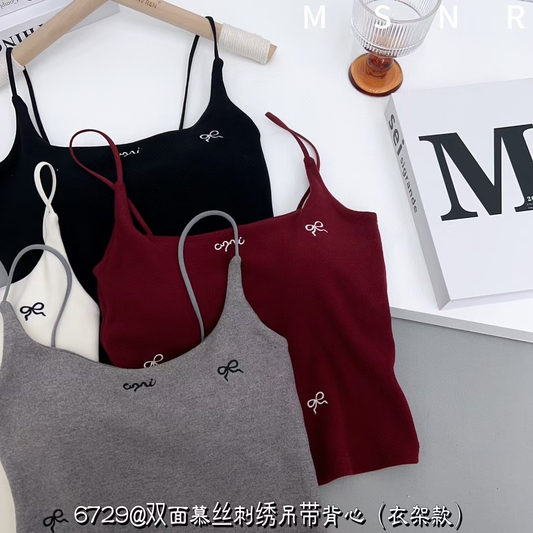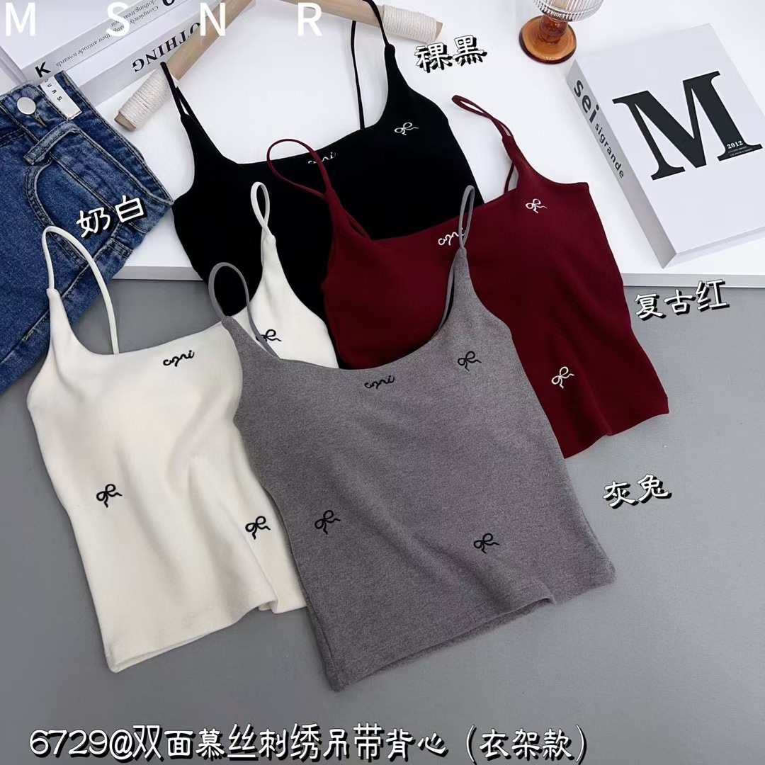 가슴 패드가 있는 여성용 한국식 새로운 가을 겨울 새 리본 자수 기모 두꺼운 따뜻한 캐미솔 탑스토어 가기
