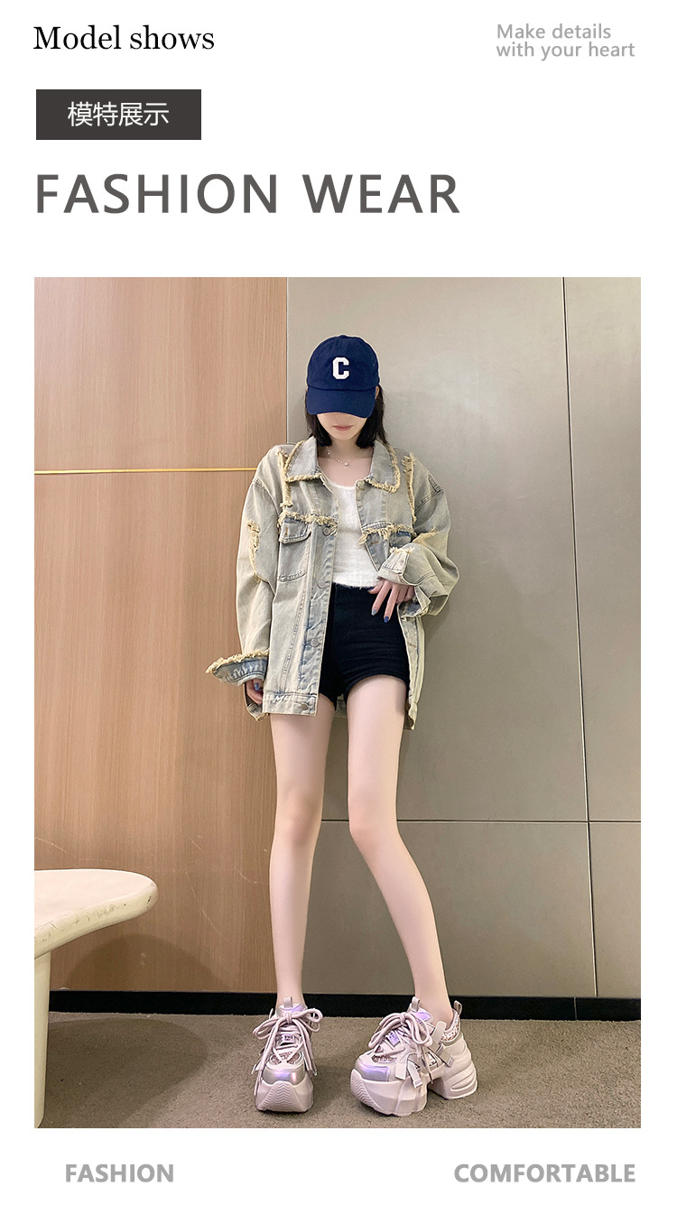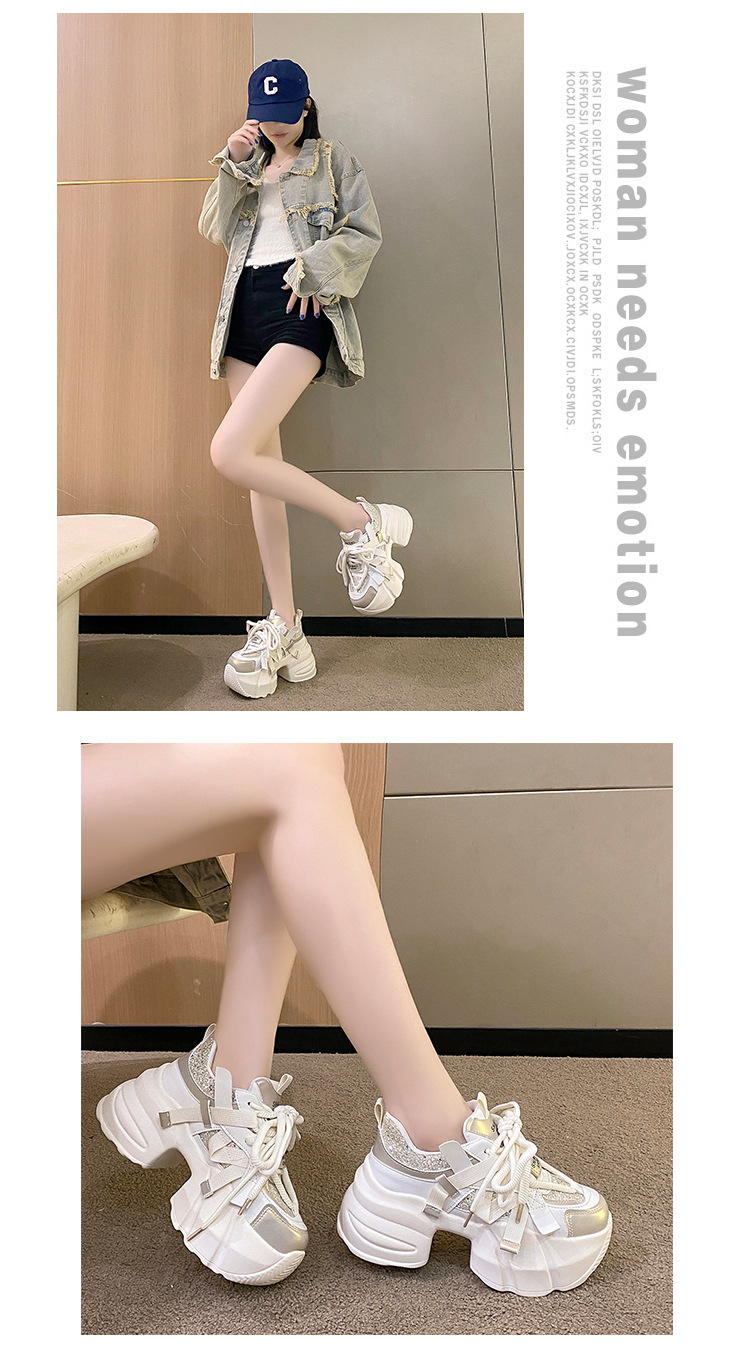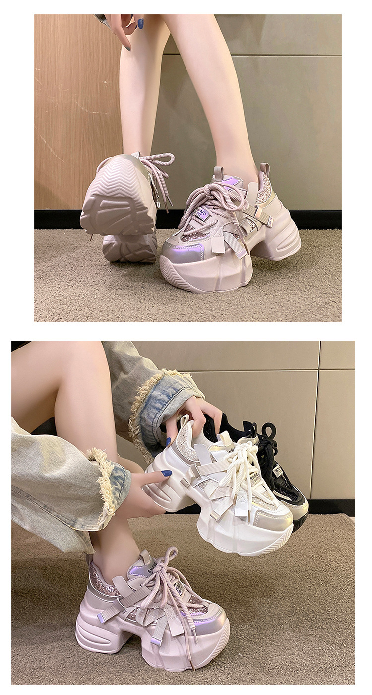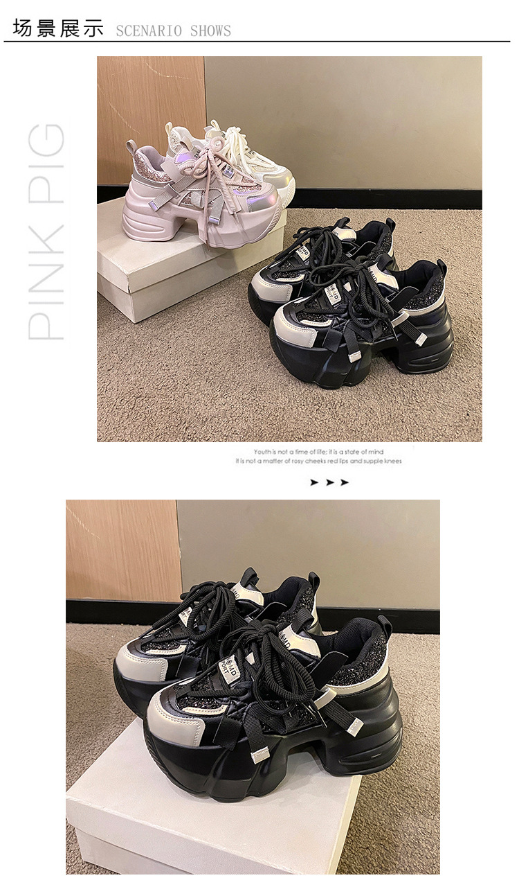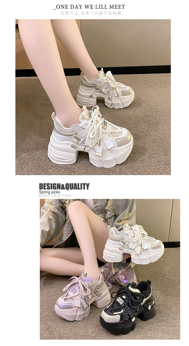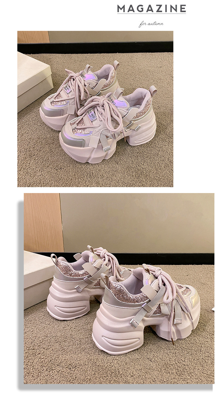 가을 2025 년 새로운 중공업 스팽글 컬러 매칭 달콤한 아빠 신발 머핀 두꺼운 바닥 고조 작은 스포츠 캐주얼 신발스토어 가기