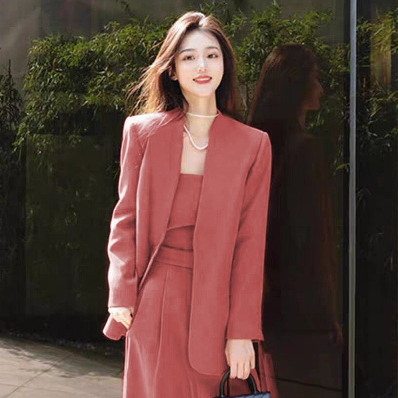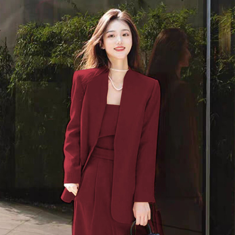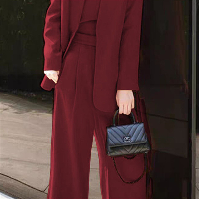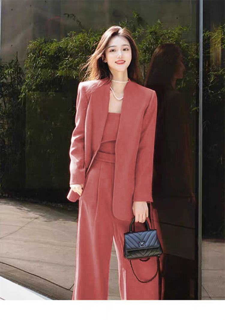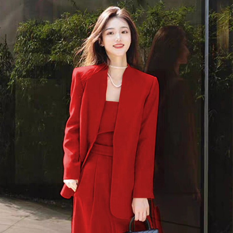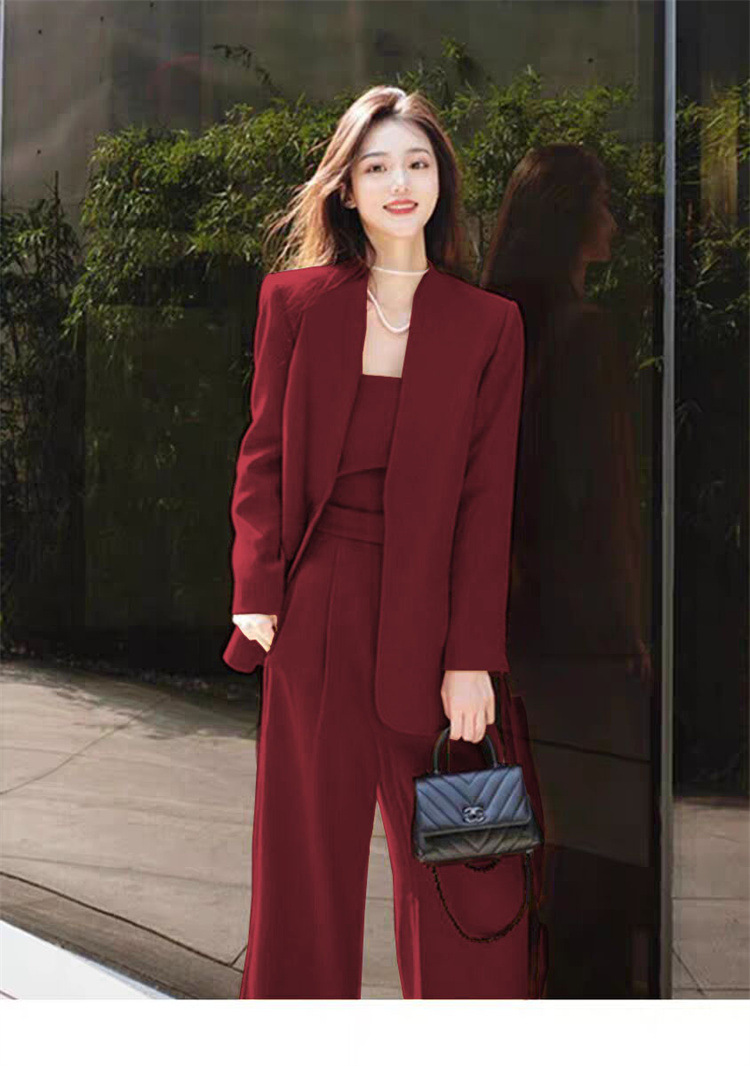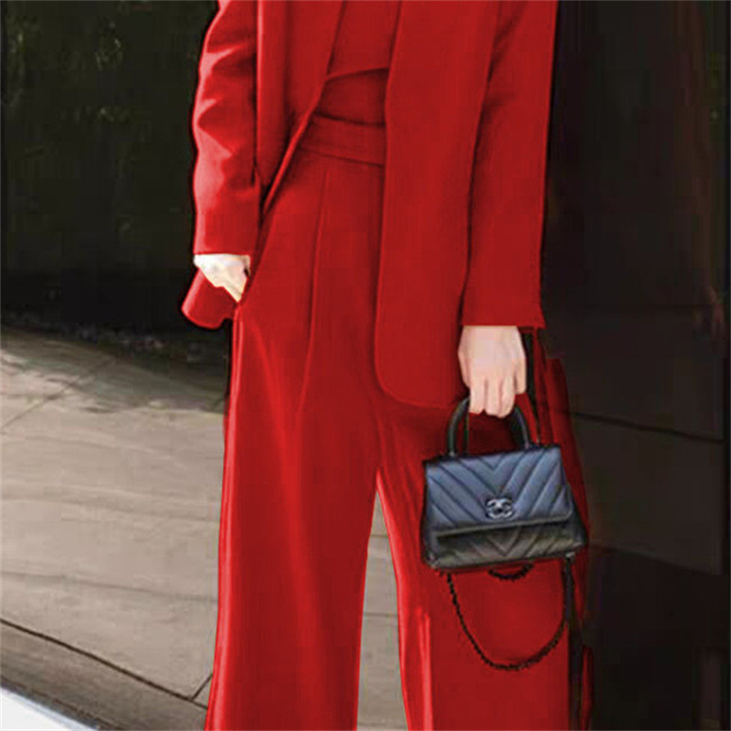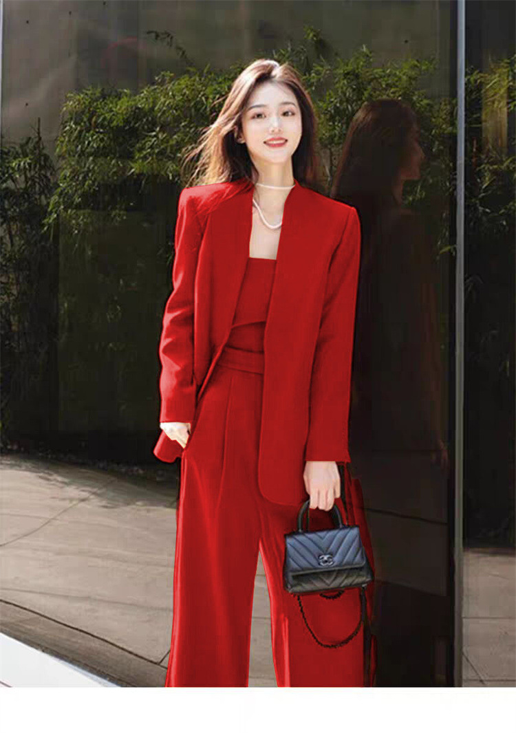 빨간 세트 바지 숙녀 기질 세트 2024 새로운 화이트 칼라 세트 디자인 세트 도매스토어 가기
