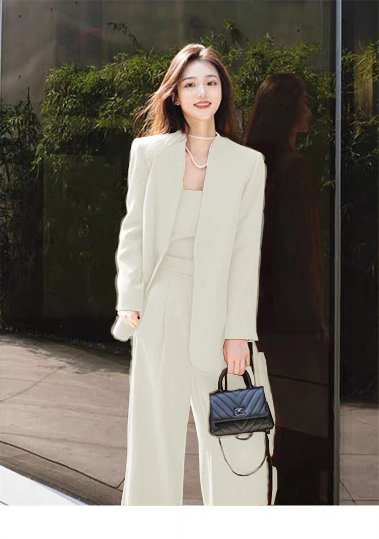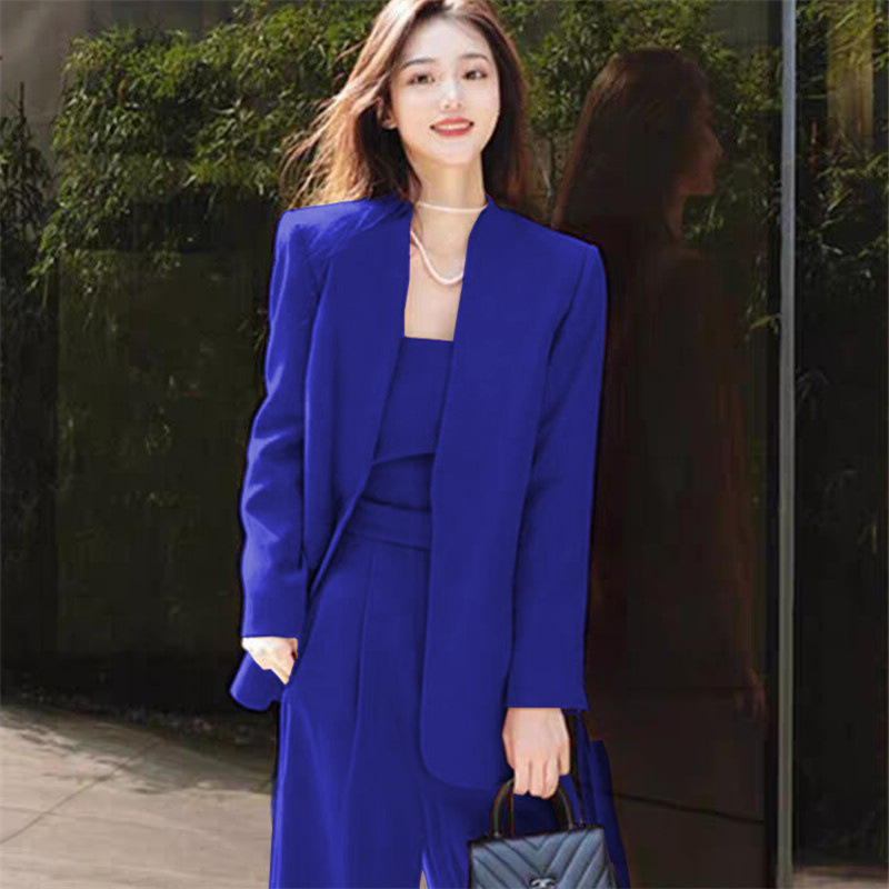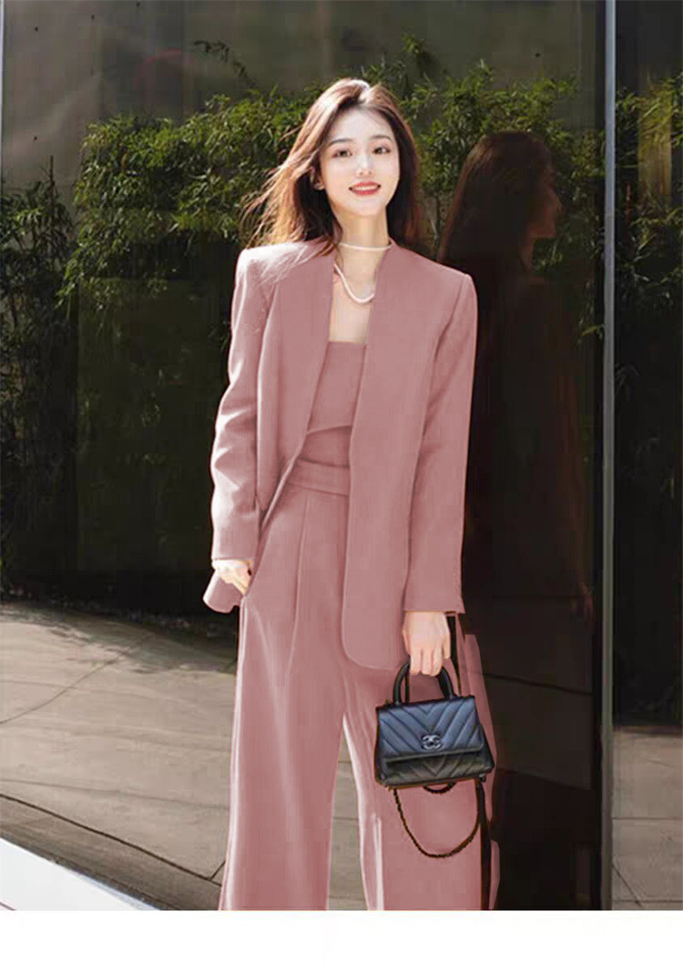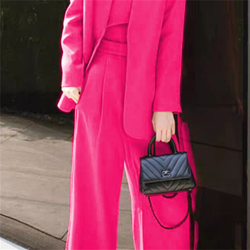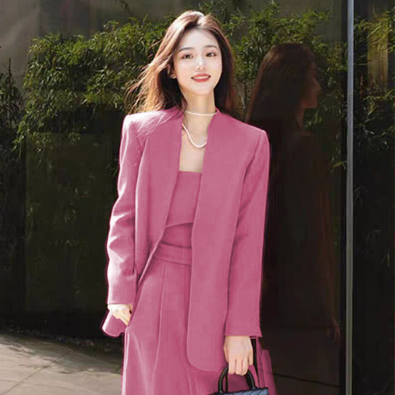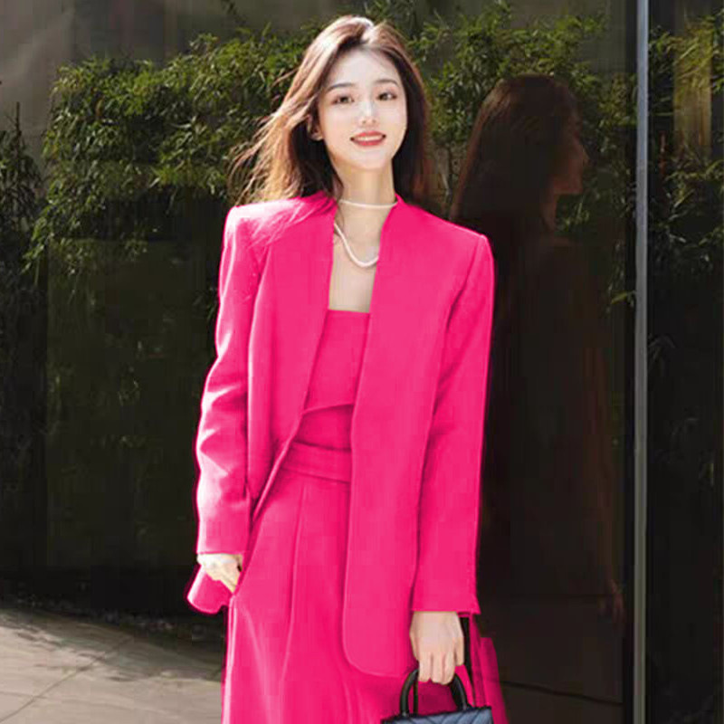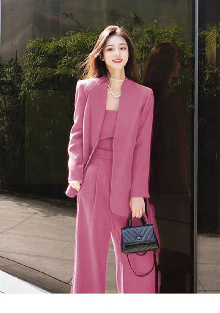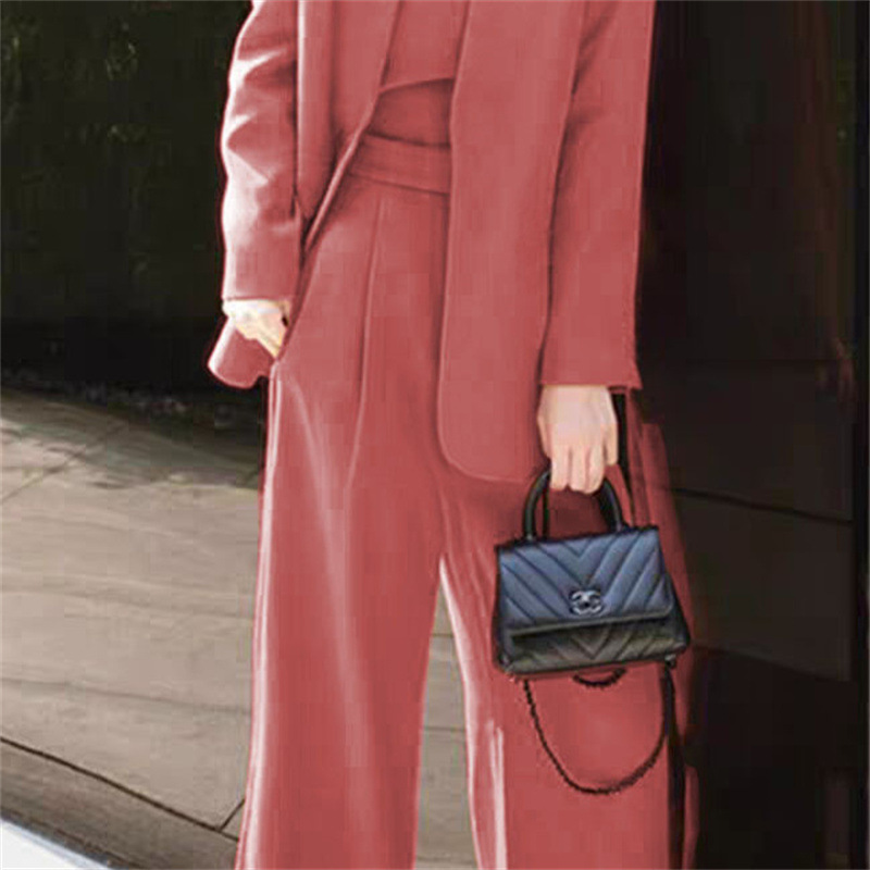 빨간 세트 바지 숙녀 기질 세트 2024 새로운 화이트 칼라 세트 디자인 세트 도매스토어 가기