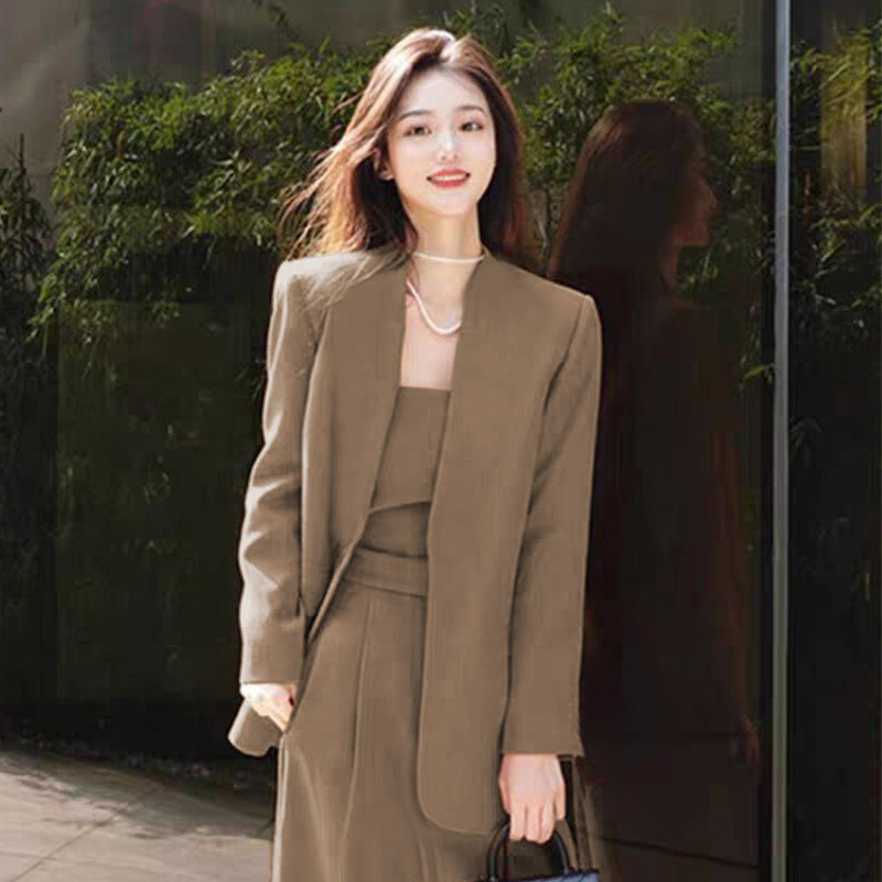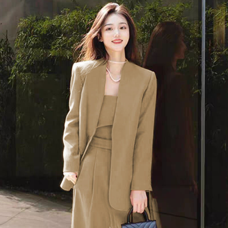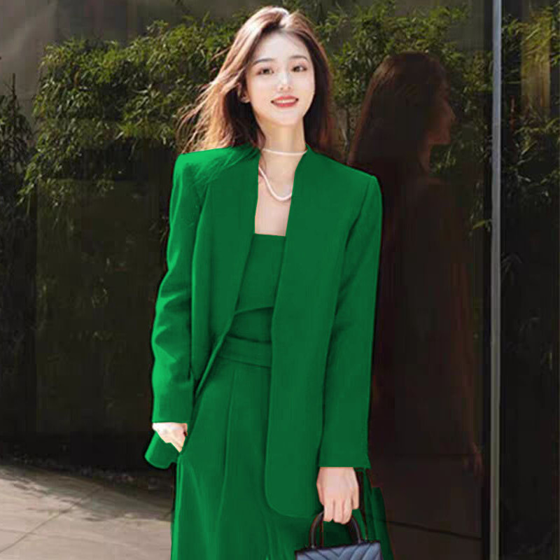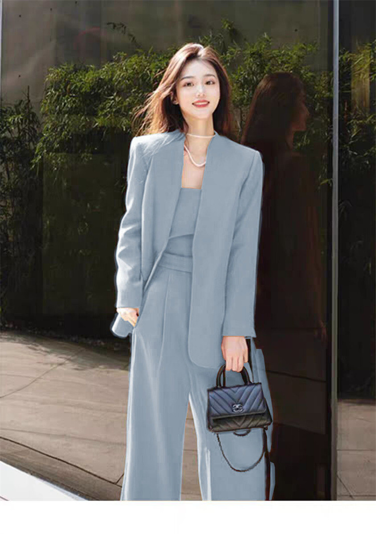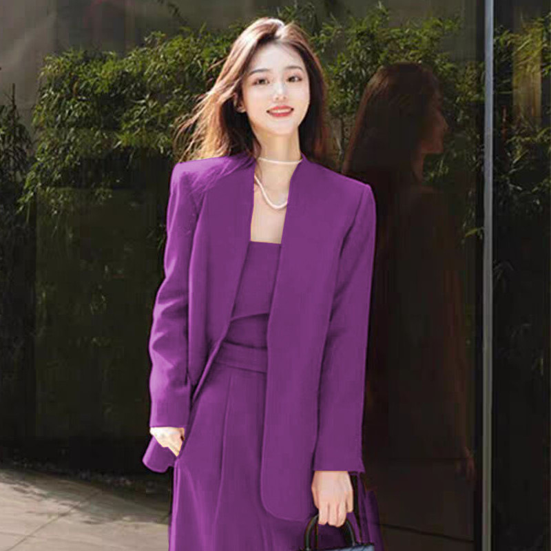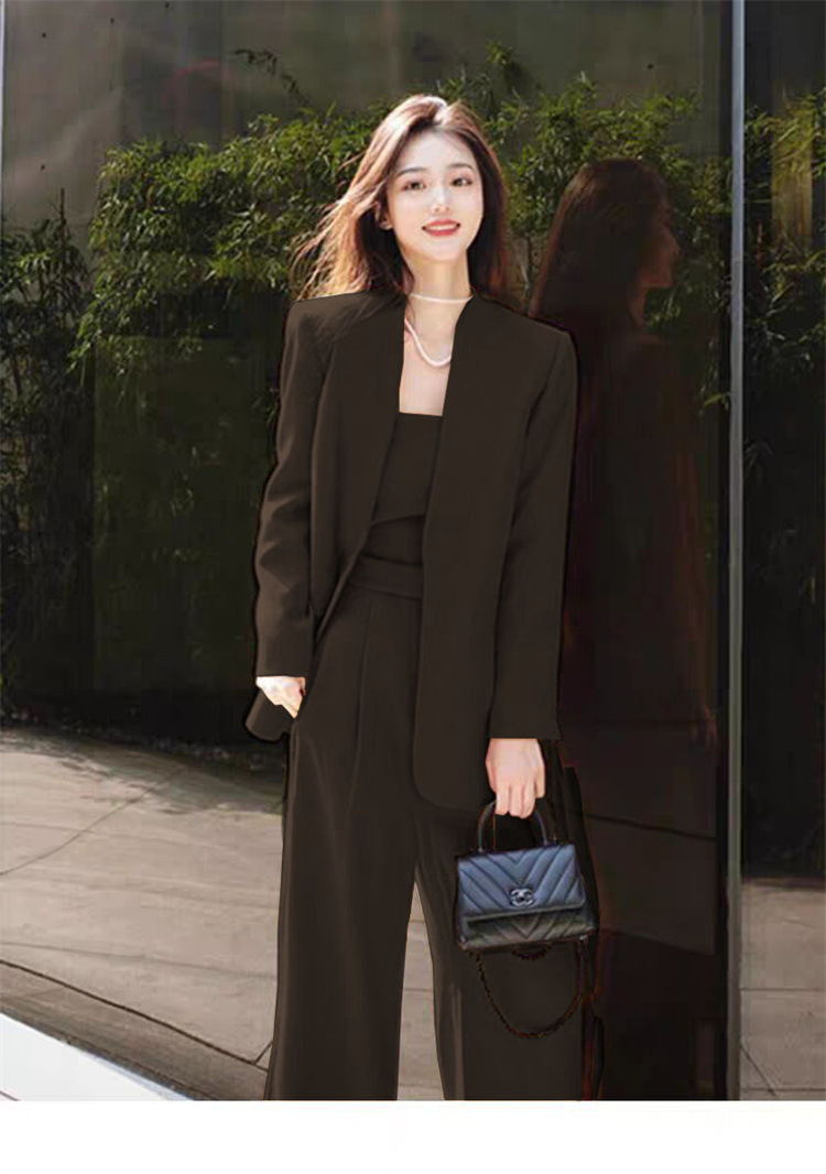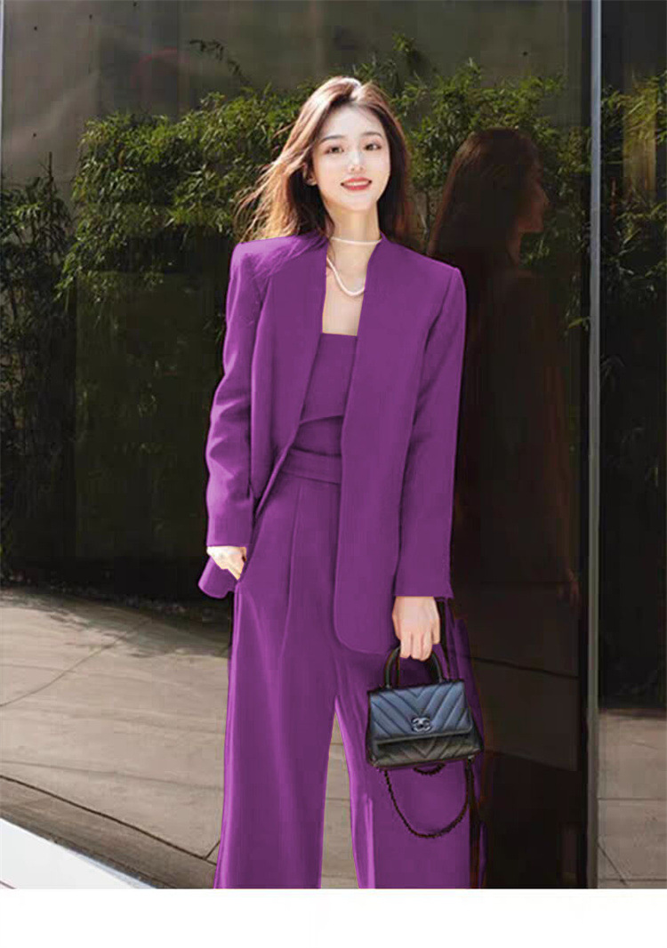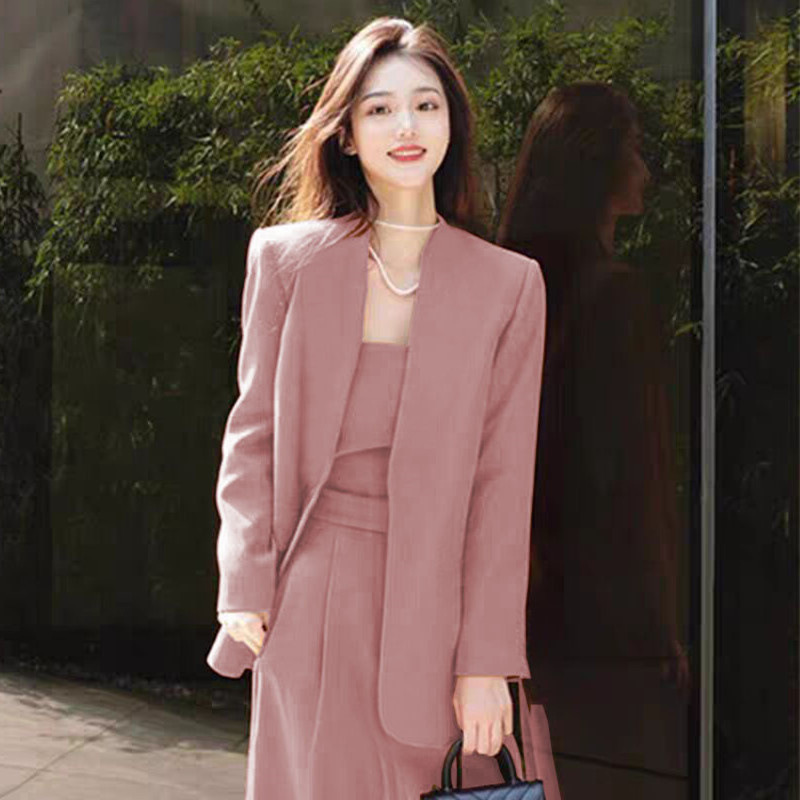 빨간 세트 바지 숙녀 기질 세트 2024 새로운 화이트 칼라 세트 디자인 세트 도매스토어 가기