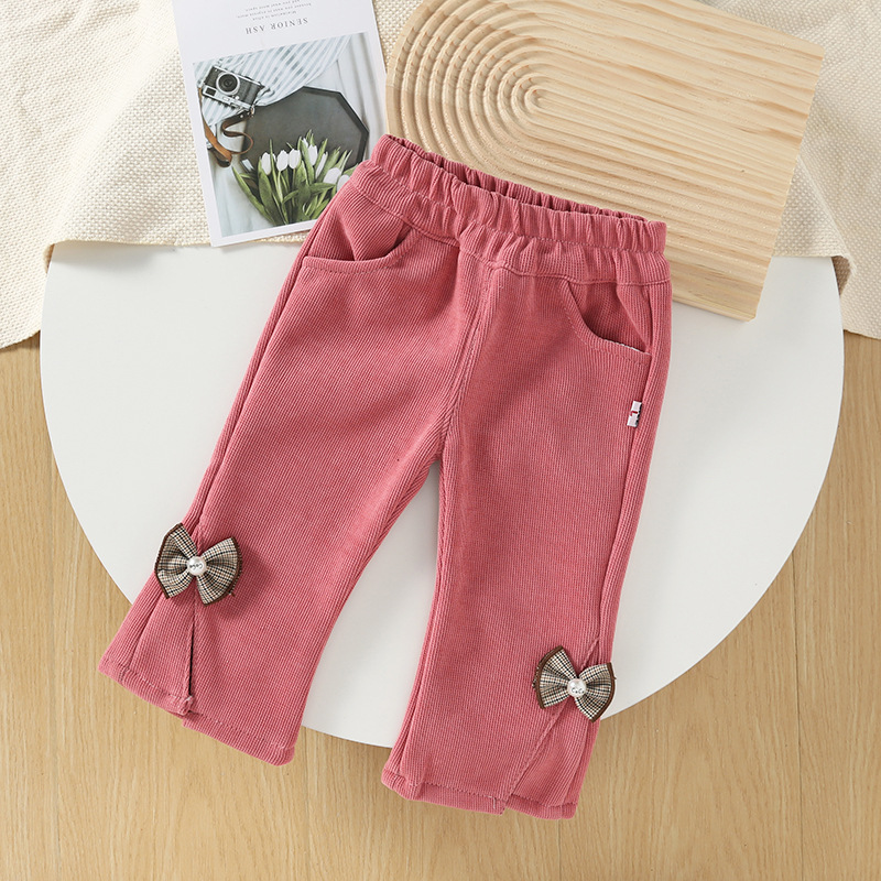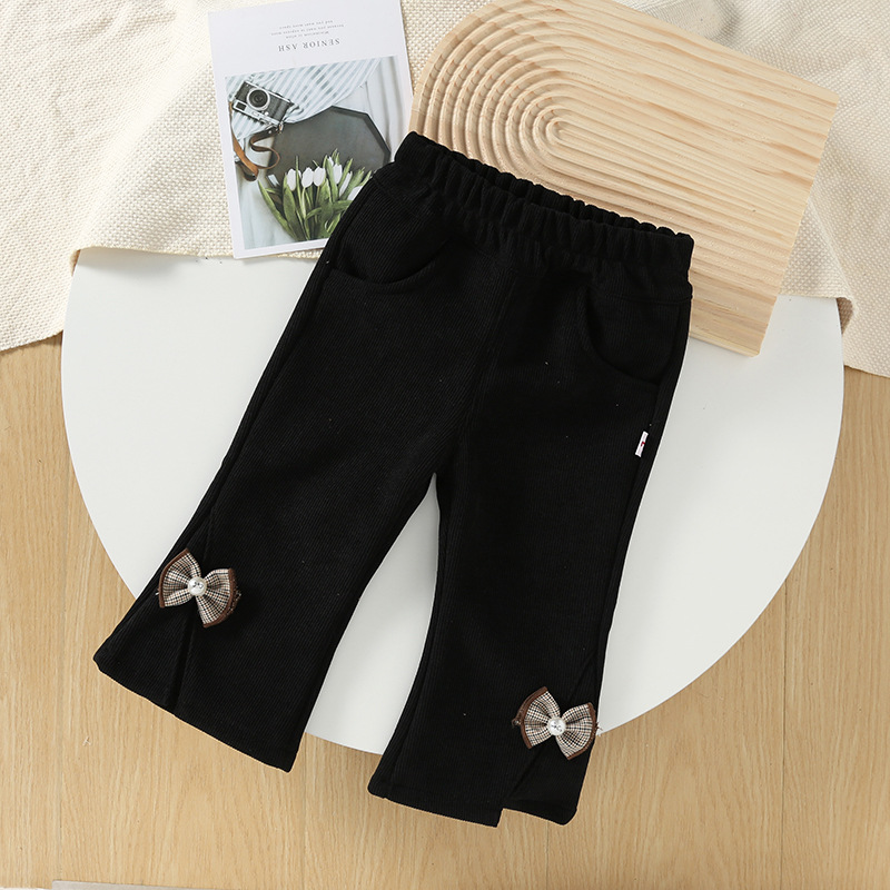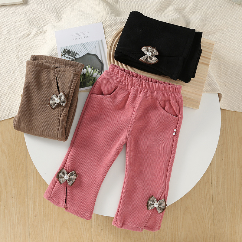 여자 캐주얼 바지 가을과 겨울 옷 기모 원피스 벨벳 바지 봄과 가을 어린이 마이크로 플레어 바지