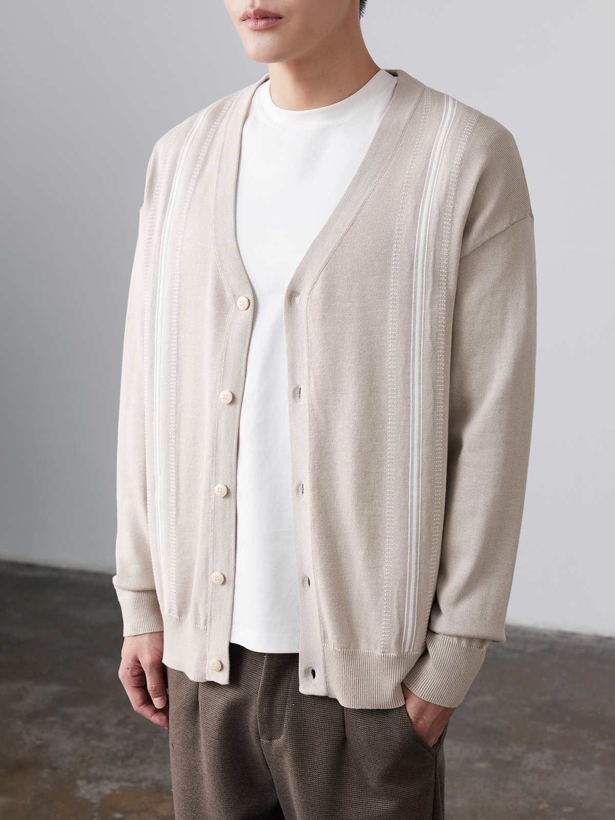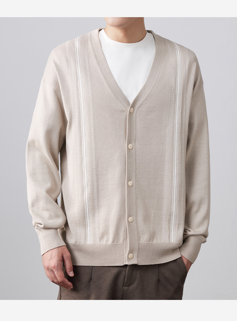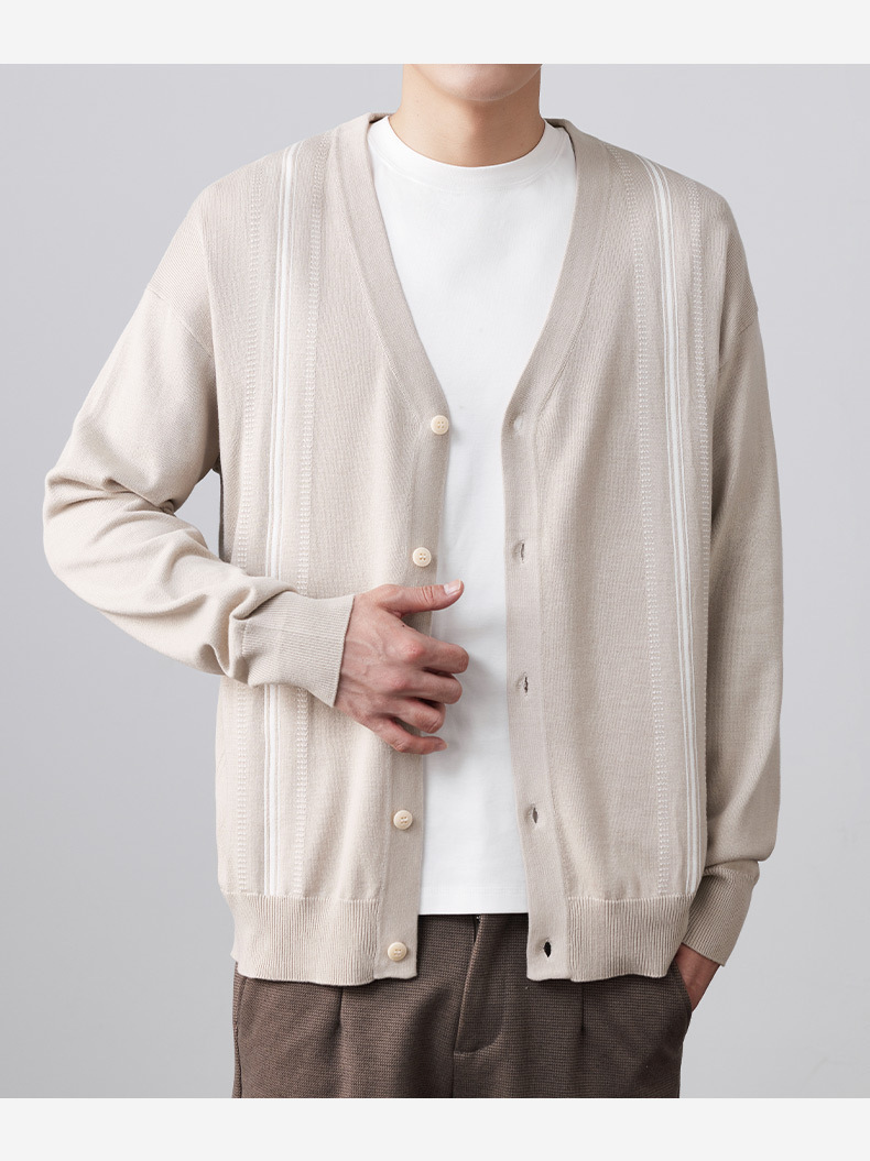 남자 명암 스트라이프 V 넥 카디건 백 스타일 2024 봄과 가을 새로운 유행 한국 스타일 유행 캐주얼 얇은 재킷스토어 가기