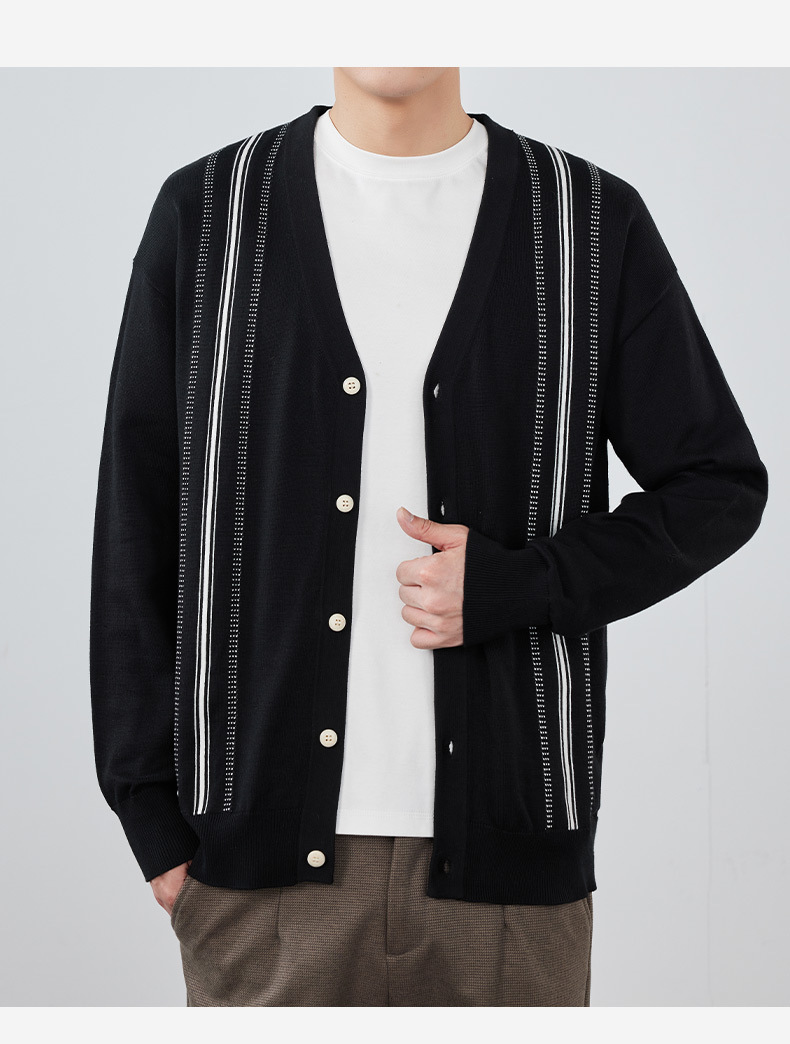 남자 명암 스트라이프 V 넥 카디건 백 스타일 2024 봄과 가을 새로운 유행 한국 스타일 유행 캐주얼 얇은 재킷