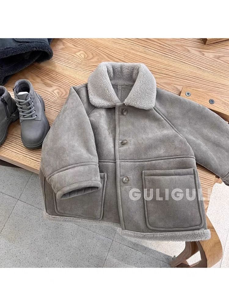 아동복 남성용 아동복 2024 겨울용 코트 쿨한 잘 생긴 유행 두꺼운 플러시 원피스 잘 생긴 어린이 바이커 옷 트렌디스토어 가기