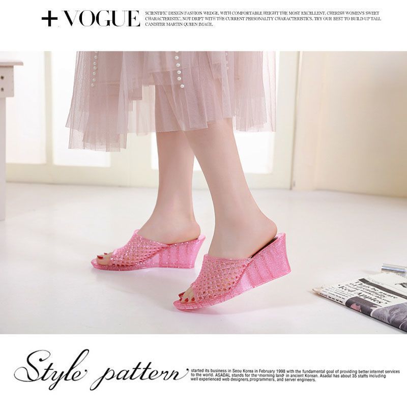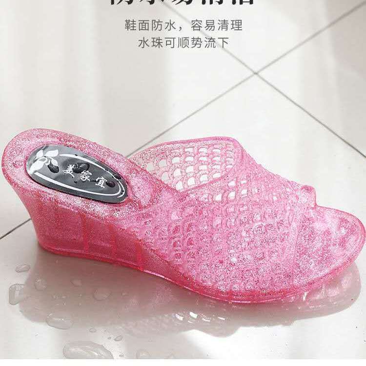 "스몰 사이즈" 여름 새로운 하이힐 마더 샌들 및 슬리퍼 크리스탈 홈 실내 및 실외 웨어 목욕 산사태 방지 Jiatai