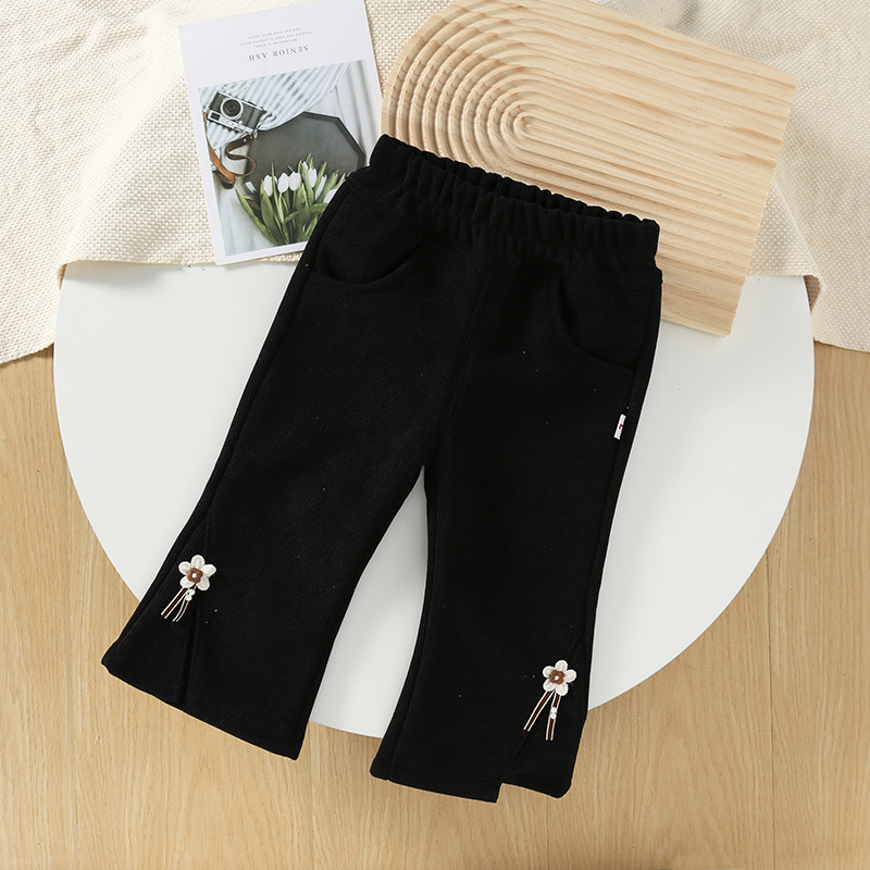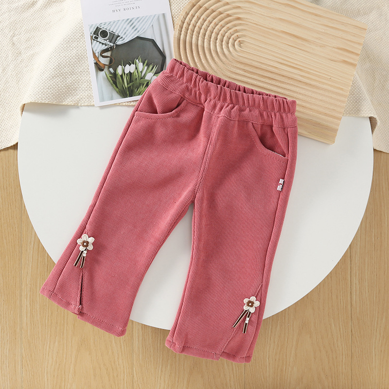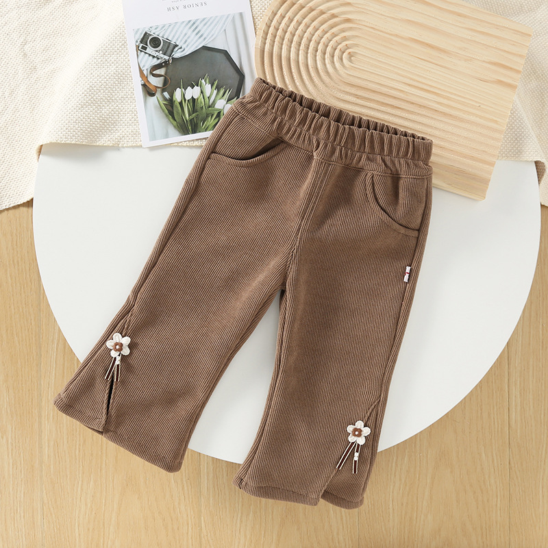 여자 얇은 벨벳 바지 겨울 새로운 어린이 원피스 벨벳 레깅스 따뜻한 서양식 아우터 착용 아기의 플레어 바지스토어 가기