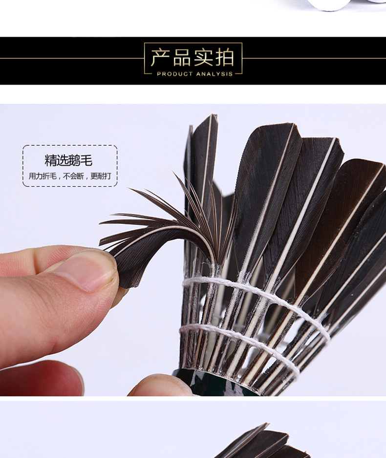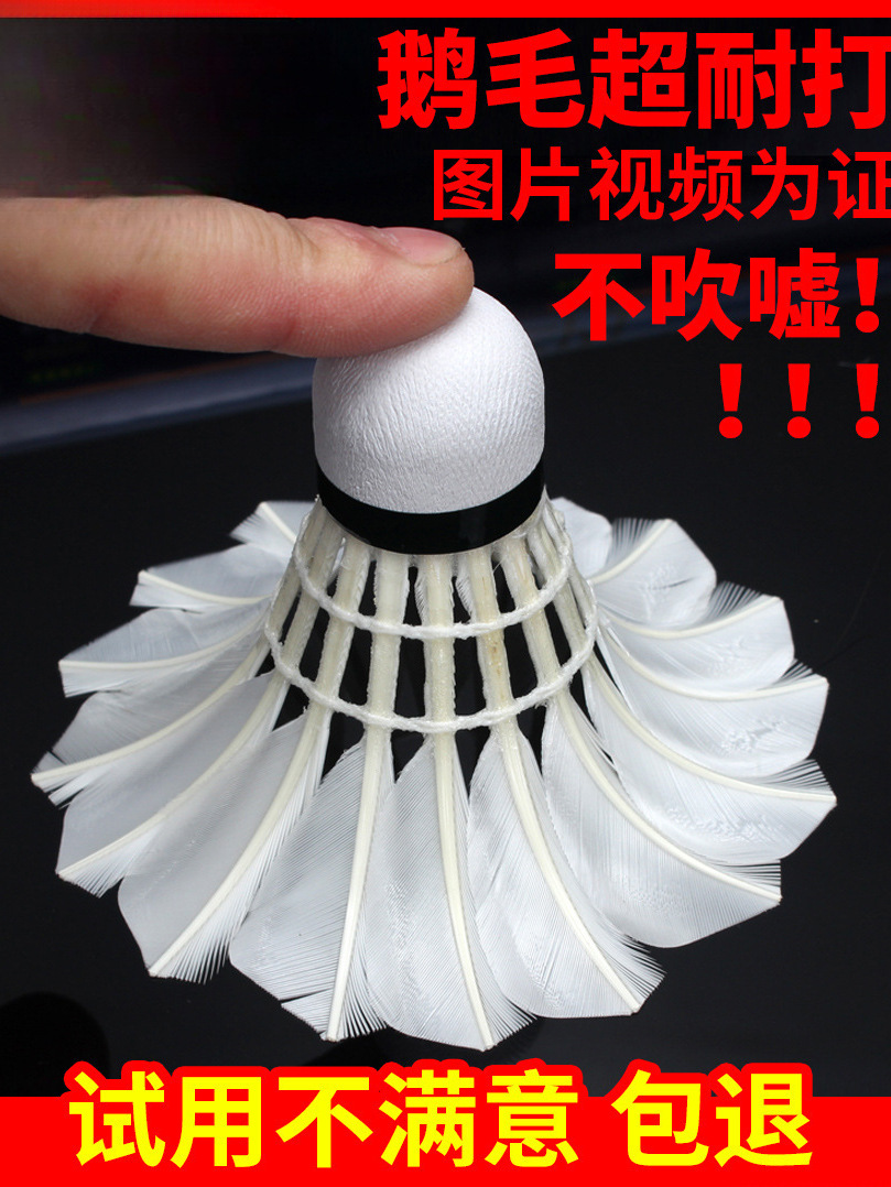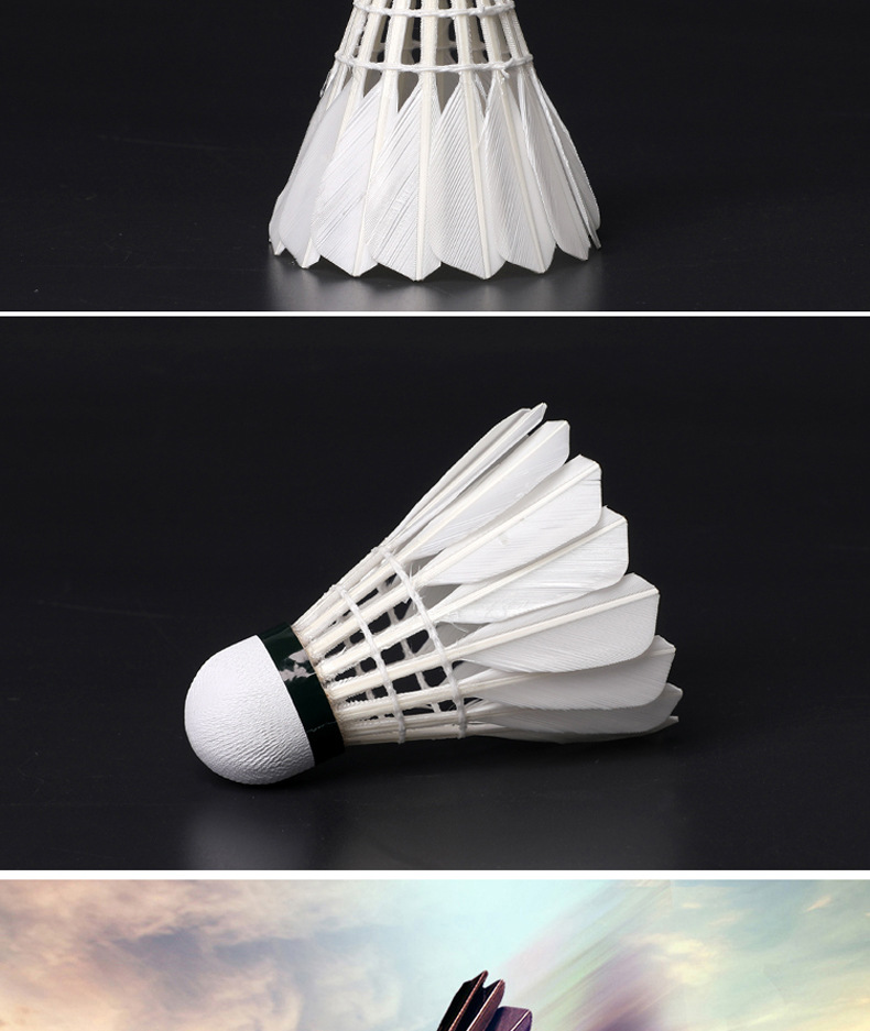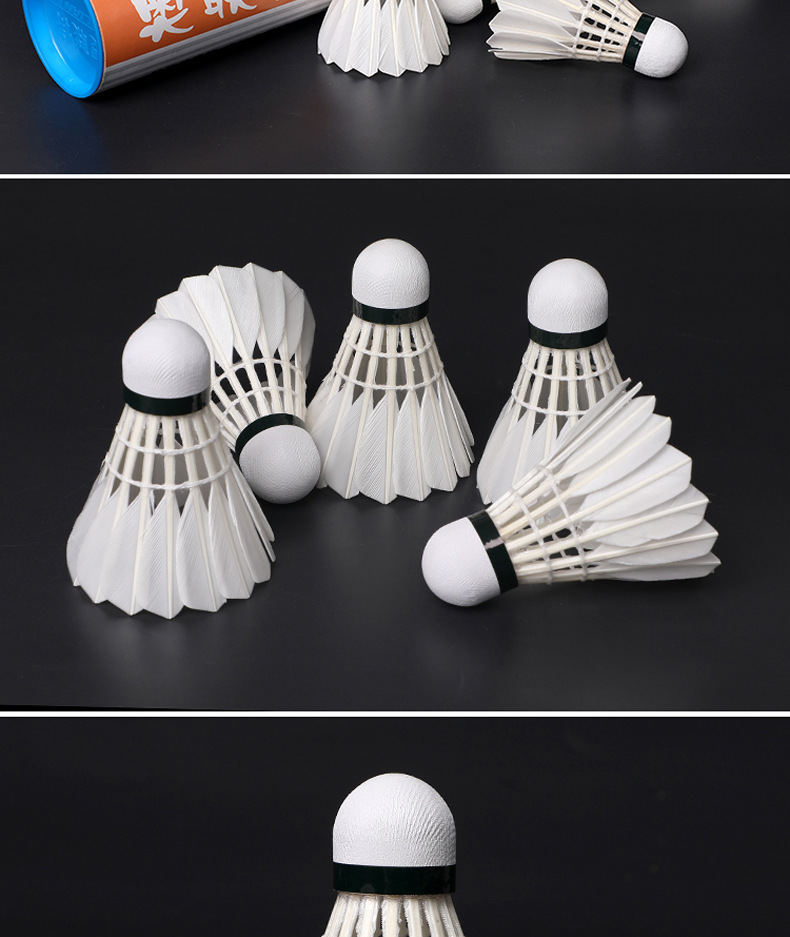 새로운 12 개의 배드민턴 거위 모피 공은 안정적이고 실내 및 실외 훈련을하는 데 저항력이 있으며 경쟁 공은 깨지기 쉽지 않습니다.스토어 가기