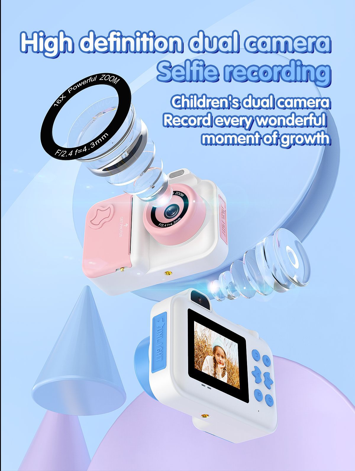 새로운 S1 어린이 스마트 프린트 카메라 2.4 인치 화면 플래시 전면 및 후면 카메라 셀카