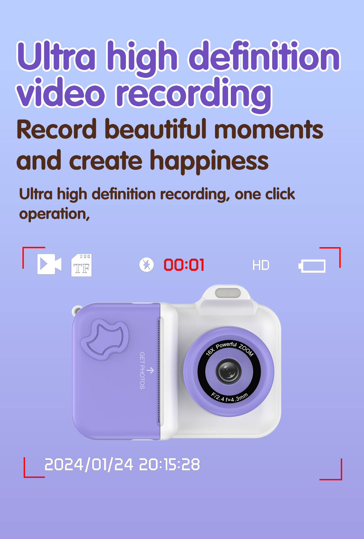 • 보라색 + 인쇄 용지 5롤 + 스티커 + 컬러 펜 + 32G 메모리 카드