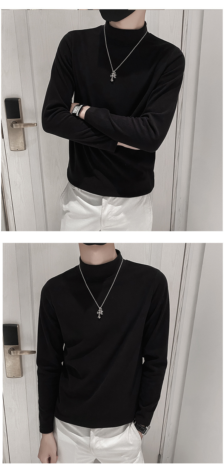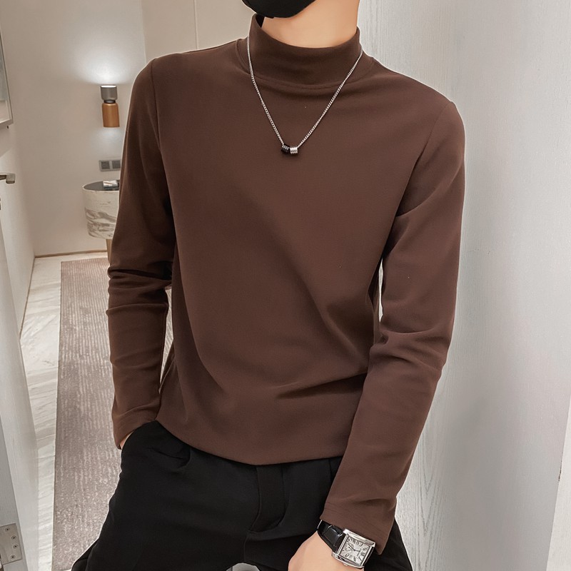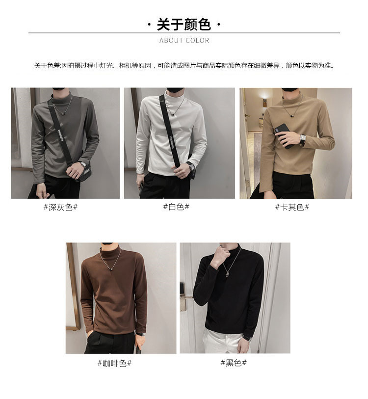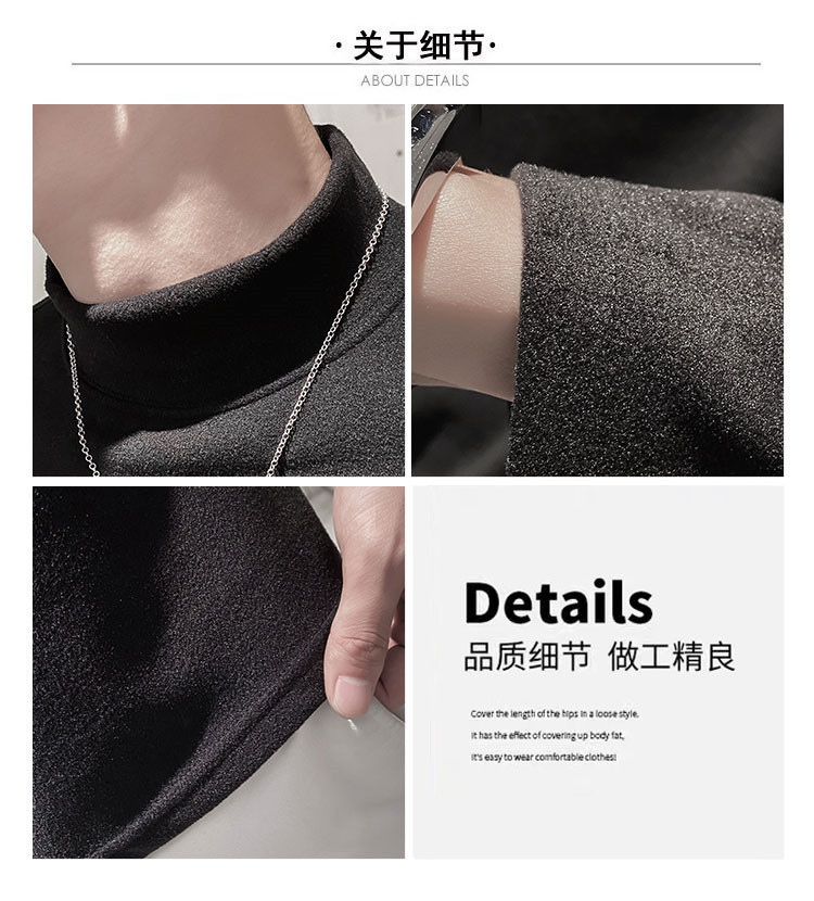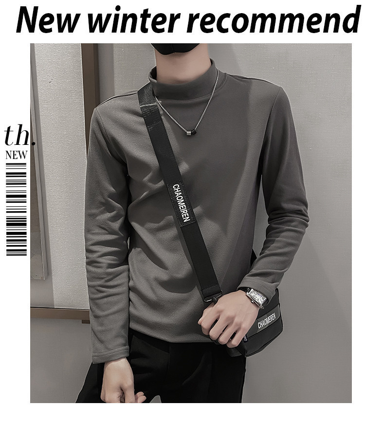 2024 남자 반 높이 칼라베이스 셔츠 남자 양털 내부 기모 긴팔 티셔츠 남자 옷 양면 남자 크로스-보더스토어 가기