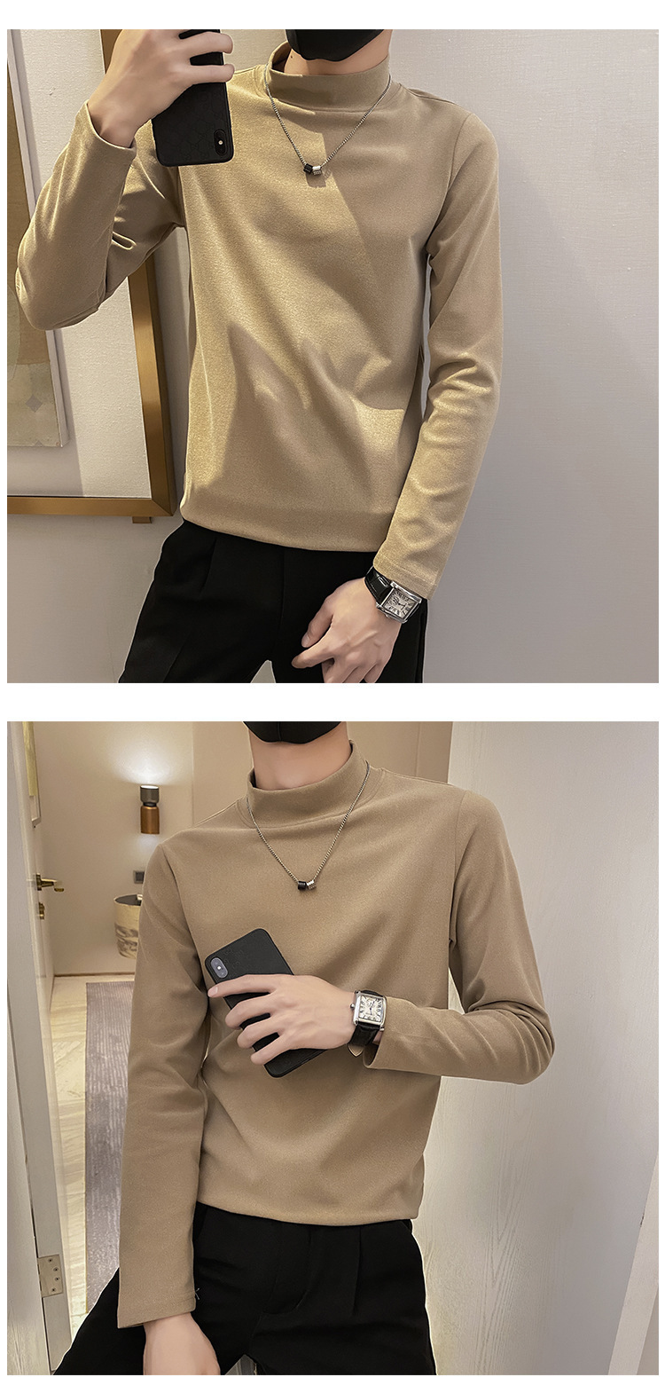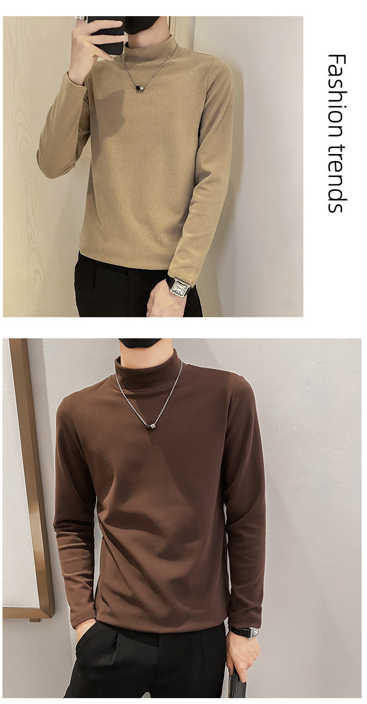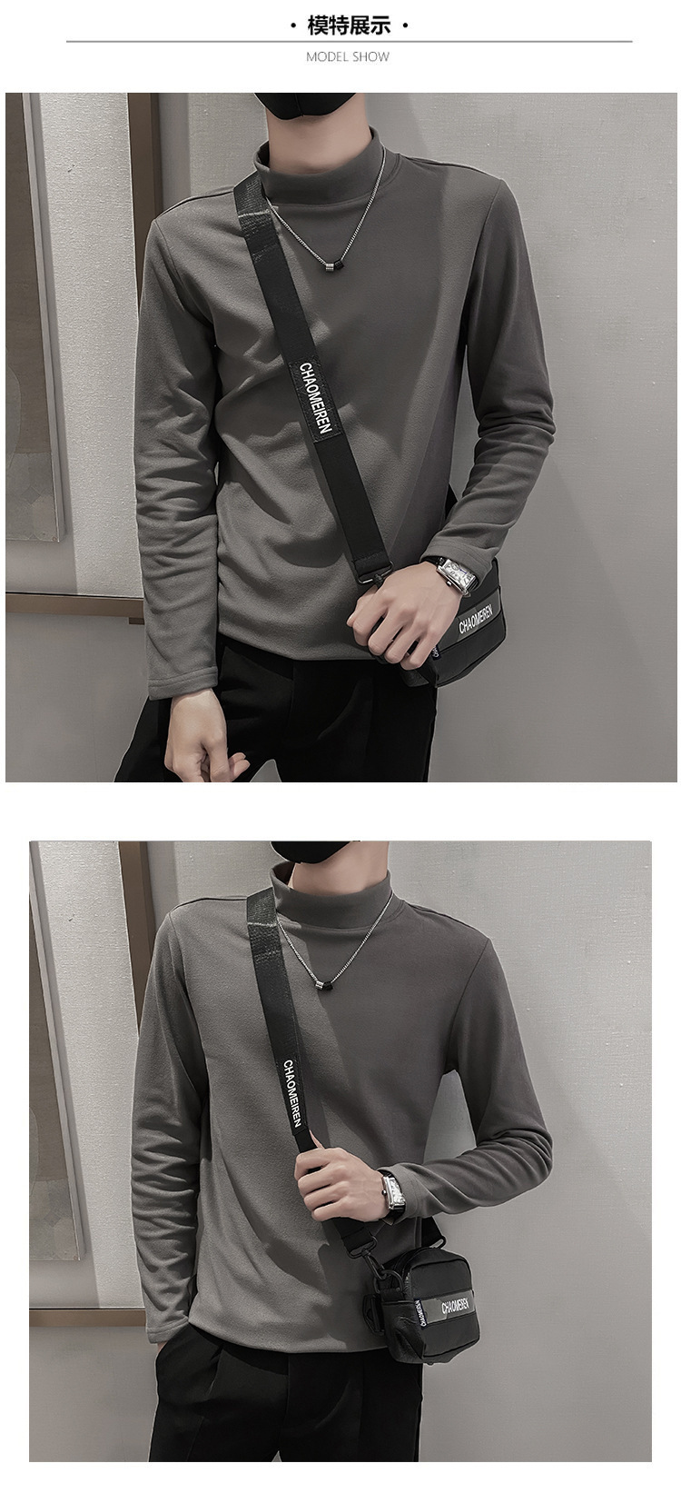 2024 남자 반 높이 칼라베이스 셔츠 남자 양털 내부 기모 긴팔 티셔츠 남자 옷 양면 남자 크로스-보더