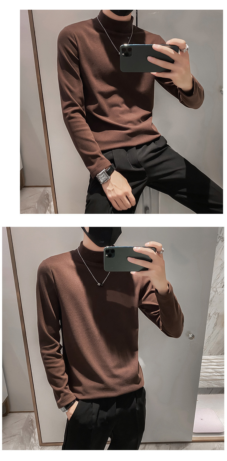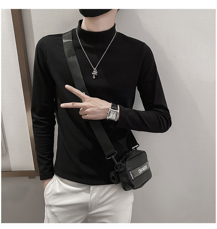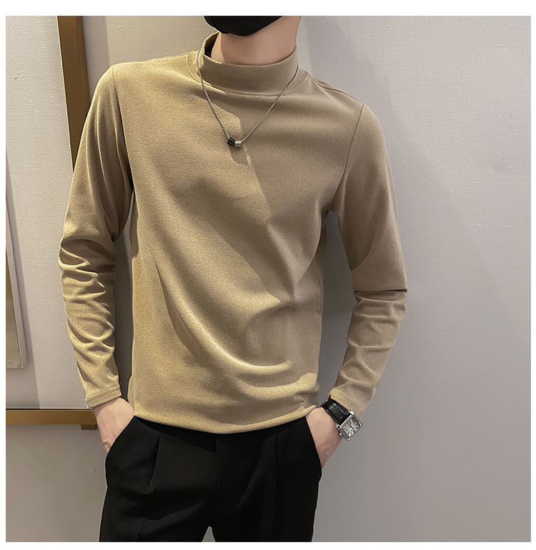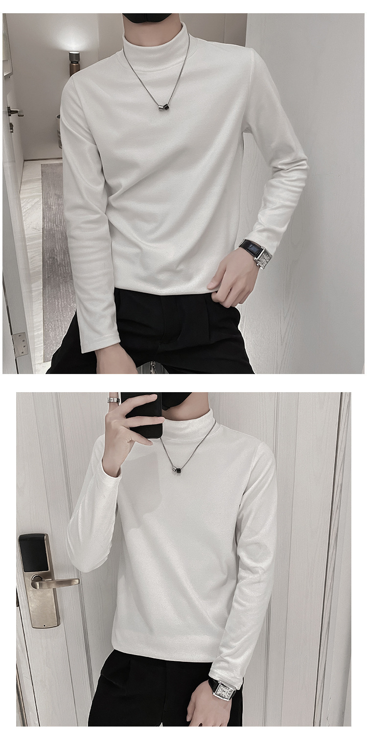 2024 남자 반 높이 칼라베이스 셔츠 남자 양털 내부 기모 긴팔 티셔츠 남자 옷 양면 남자 크로스-보더