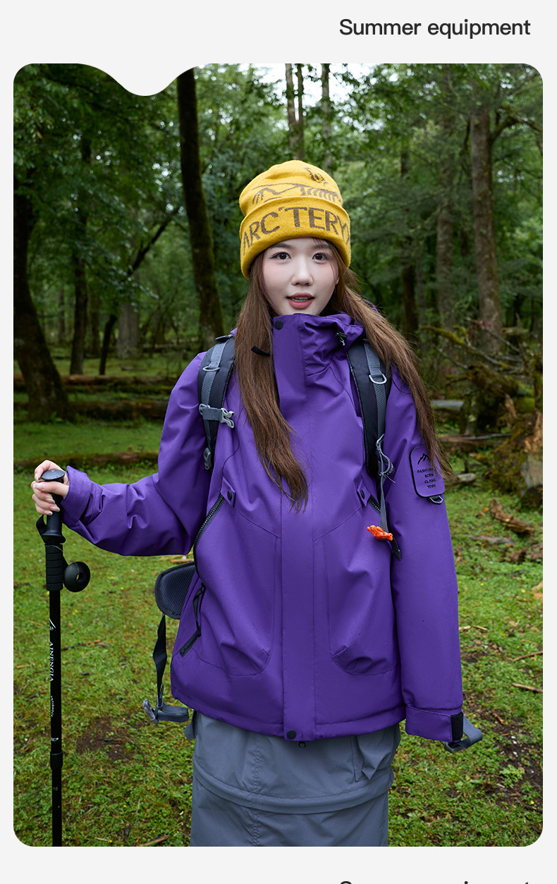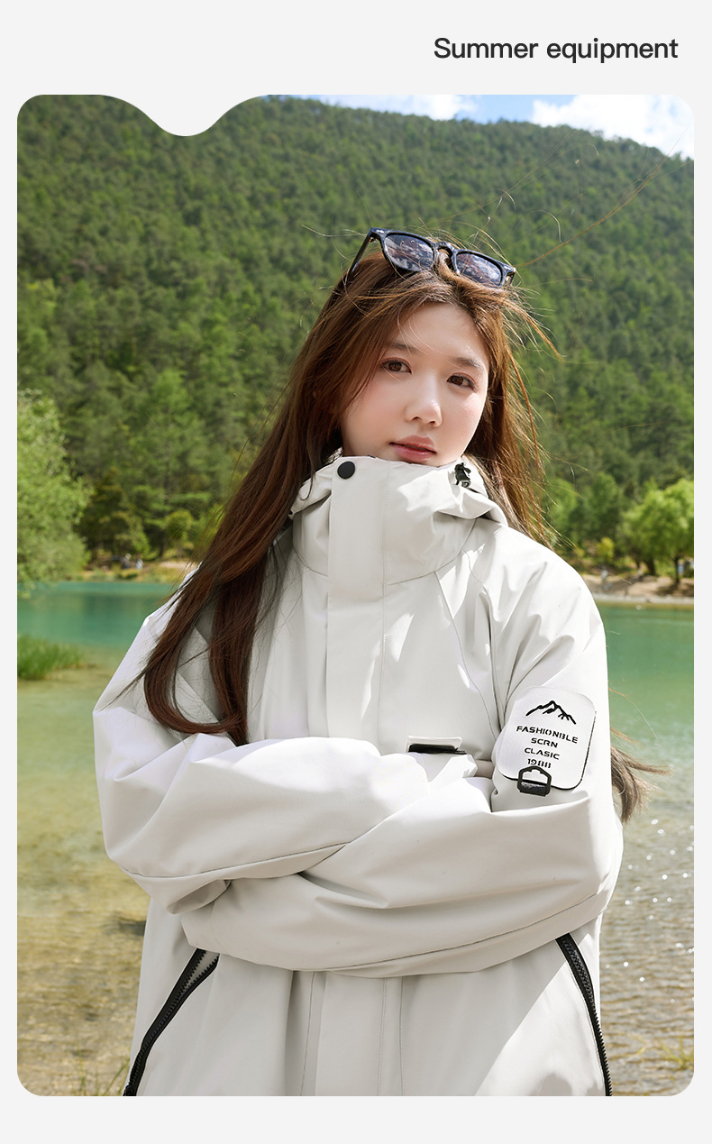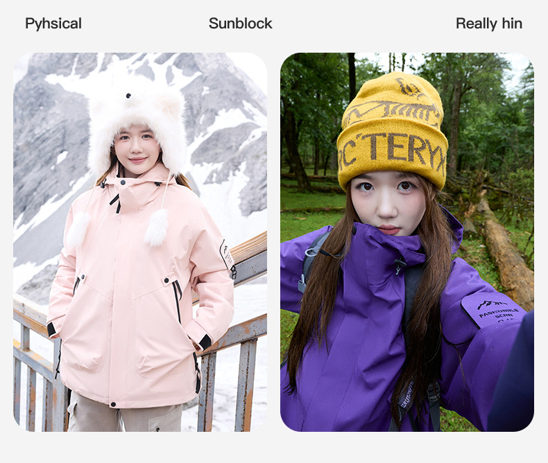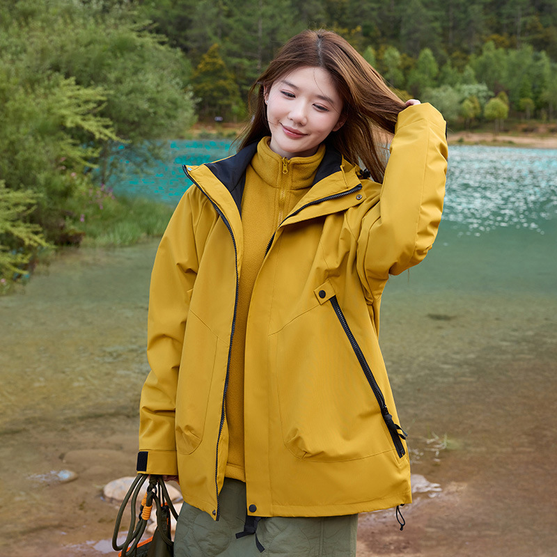 여성용 아웃도어 재킷 3-in-1 남녀공용 탈부착 가능 방풍 방수 플러스 벨벳 커플용 스키 등산복스토어 가기
