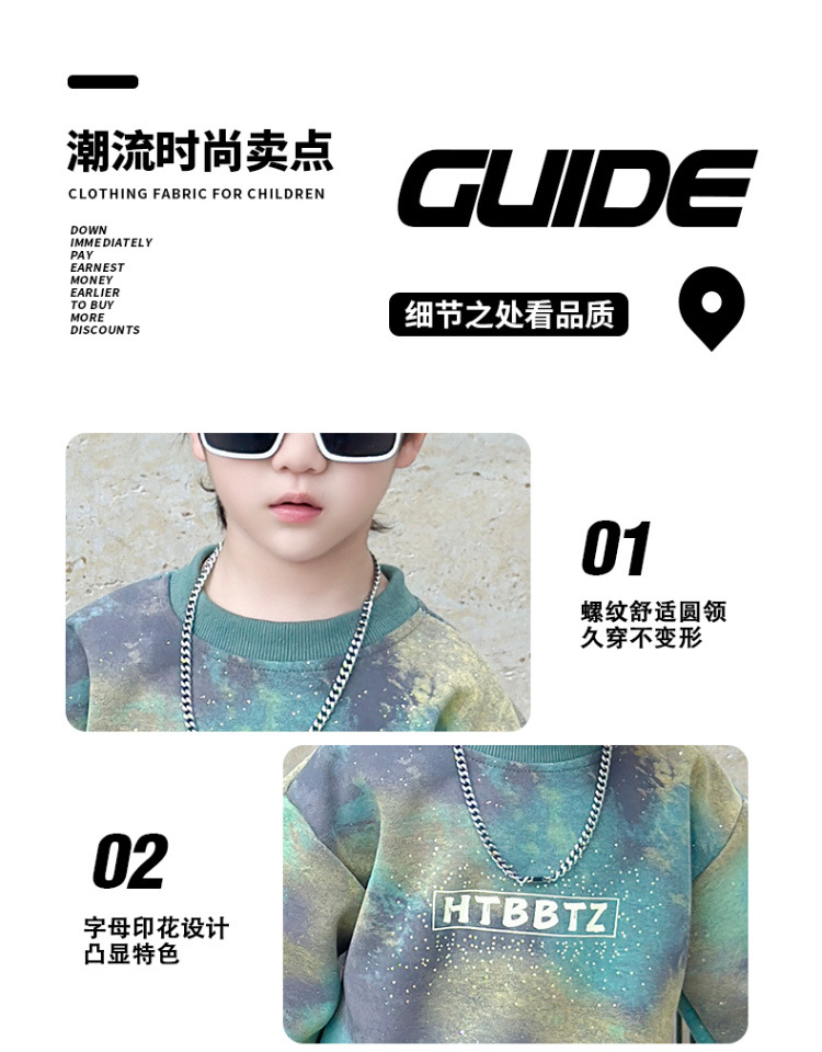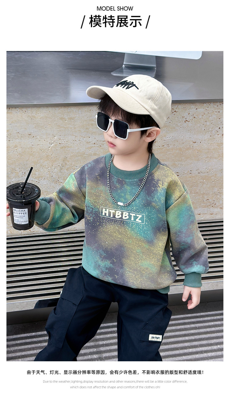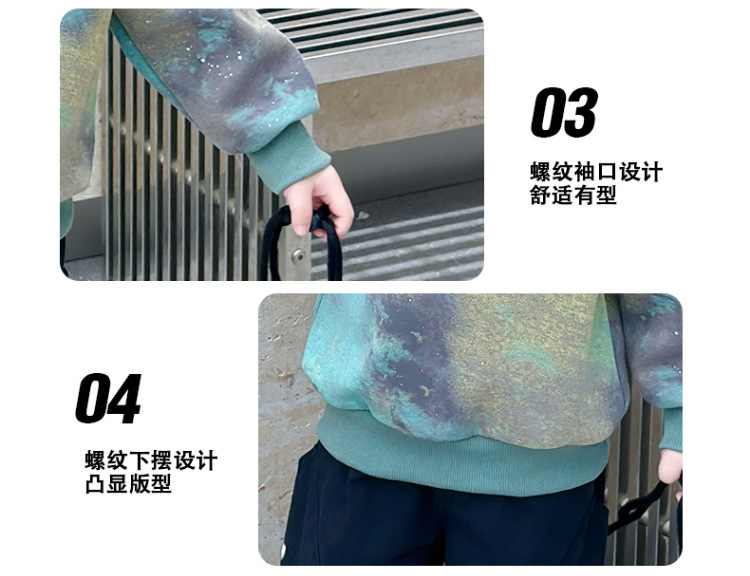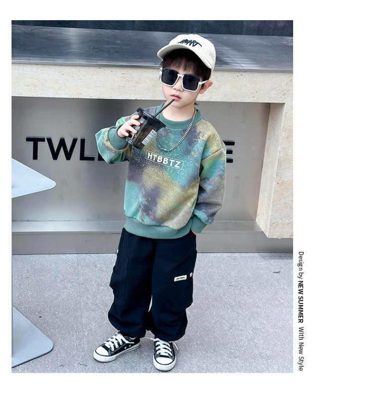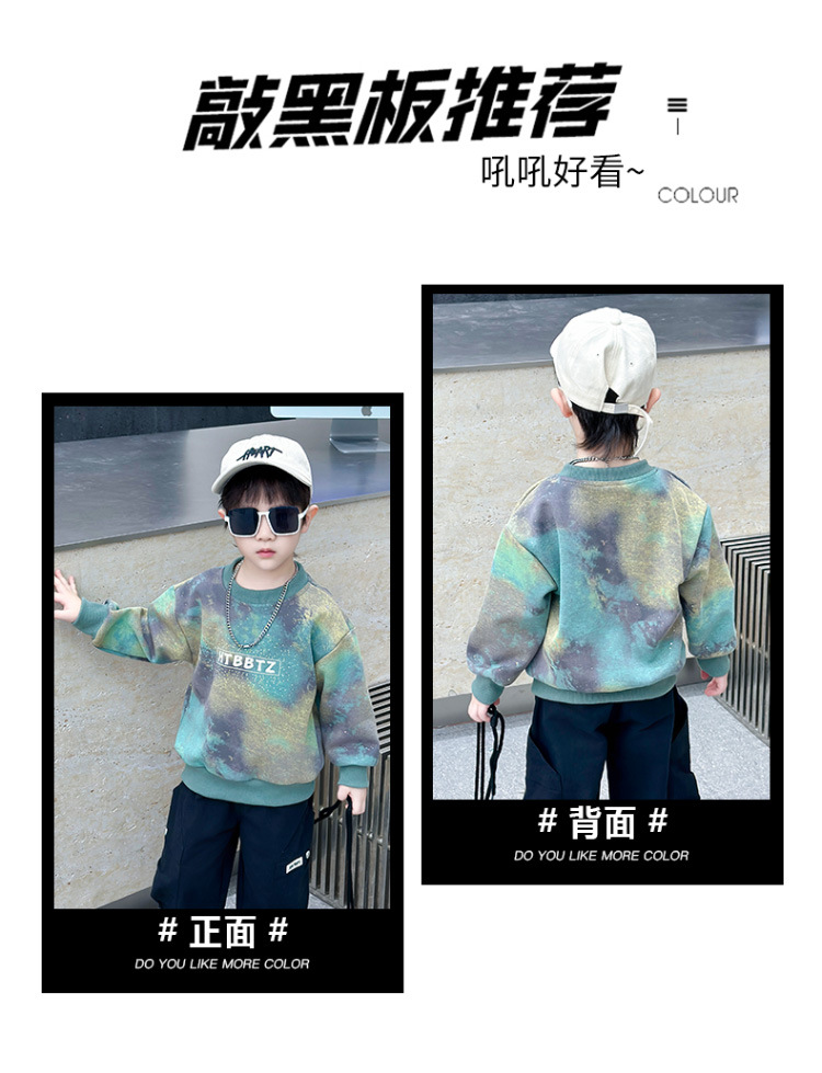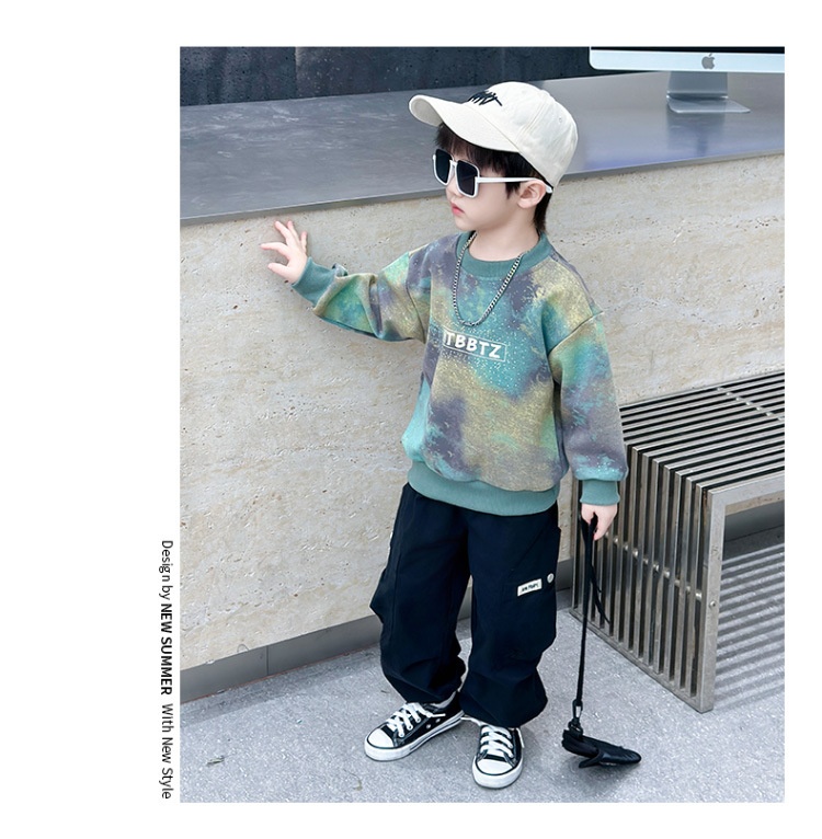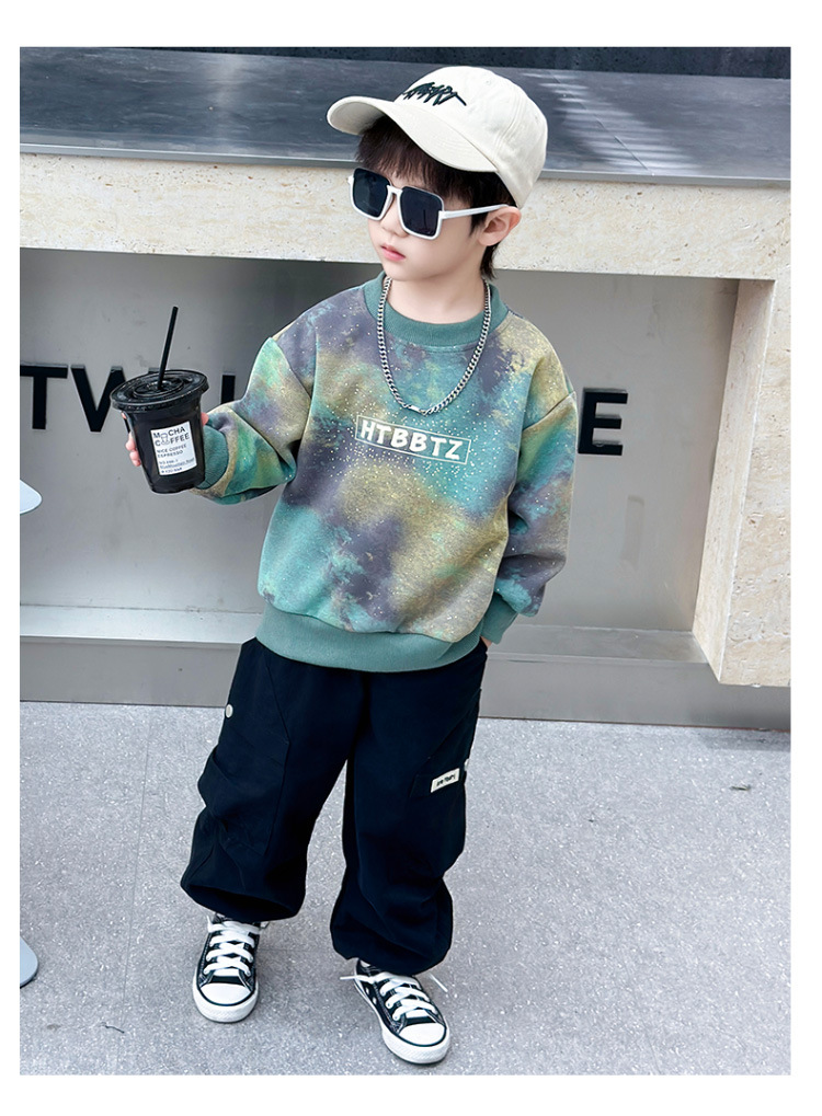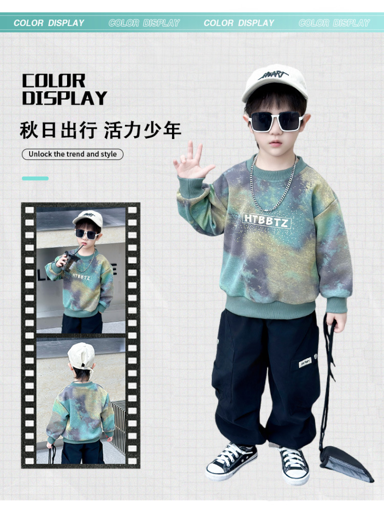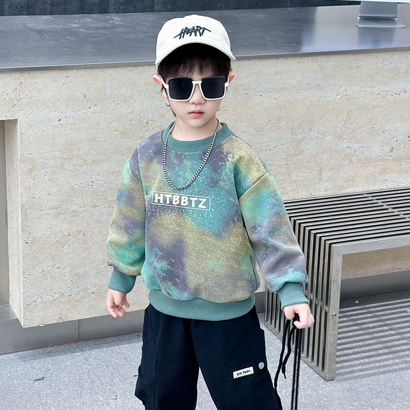 소년의 새로운 가을 땀 봄과 가을 어린이 서양식 옷 남성 가을 느슨한 넥타이-염료 풀오버 탑스토어 가기