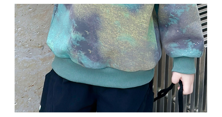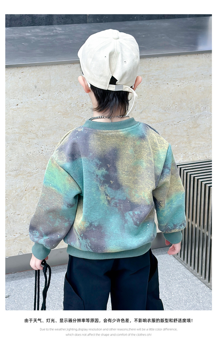 소년의 새로운 가을 땀 봄과 가을 어린이 서양식 옷 남성 가을 느슨한 넥타이-염료 풀오버 탑