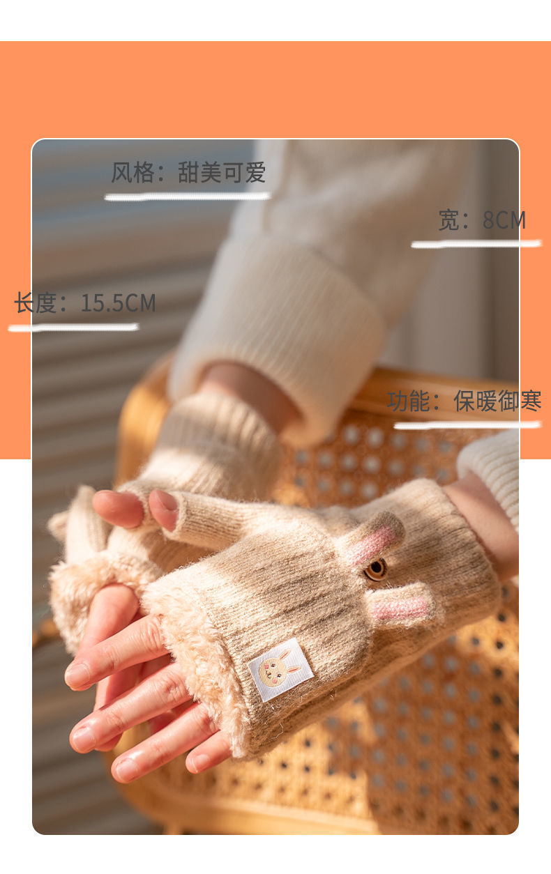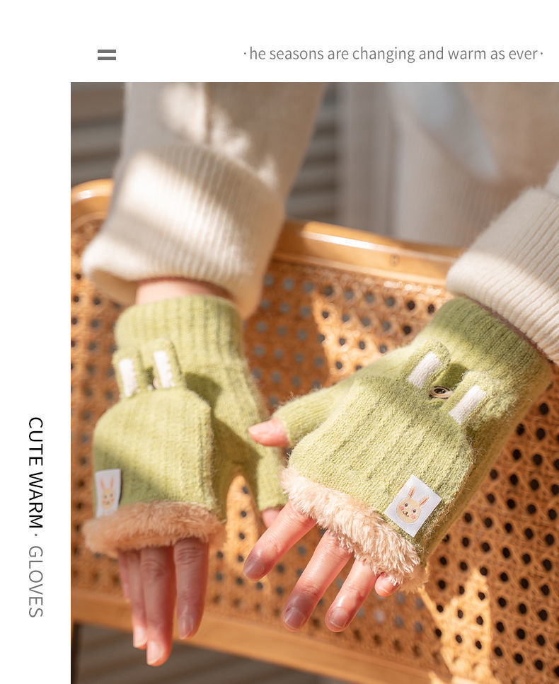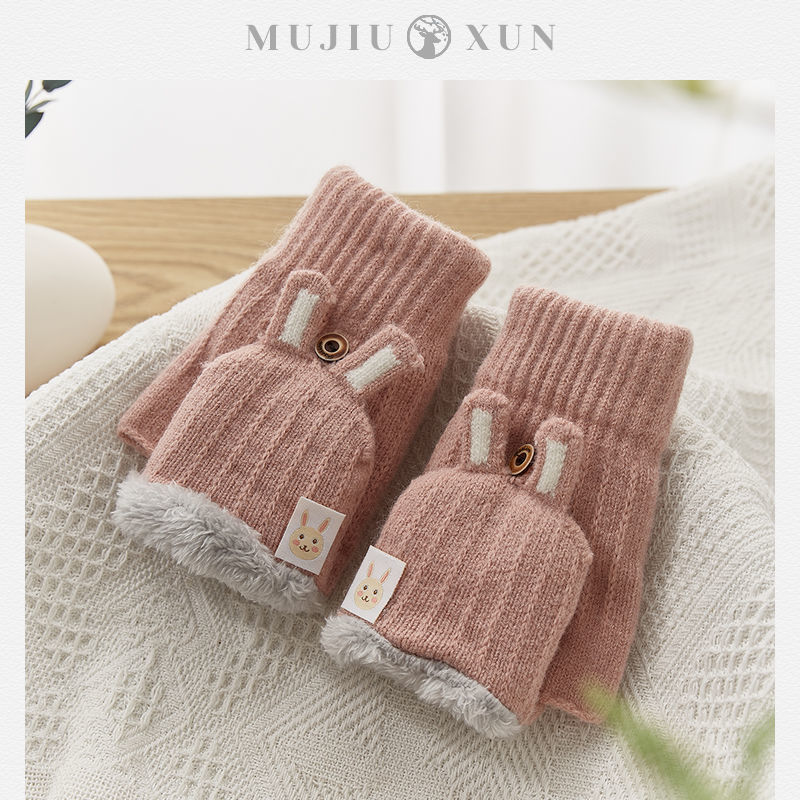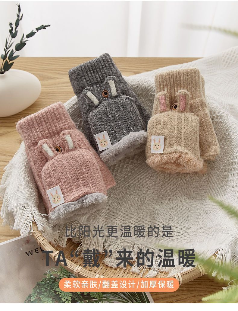장갑 여성의 겨울 따뜻한 감기 방지 기모 두꺼운 귀여운 토끼 귀 타기 안티 양모 플립 온 장갑