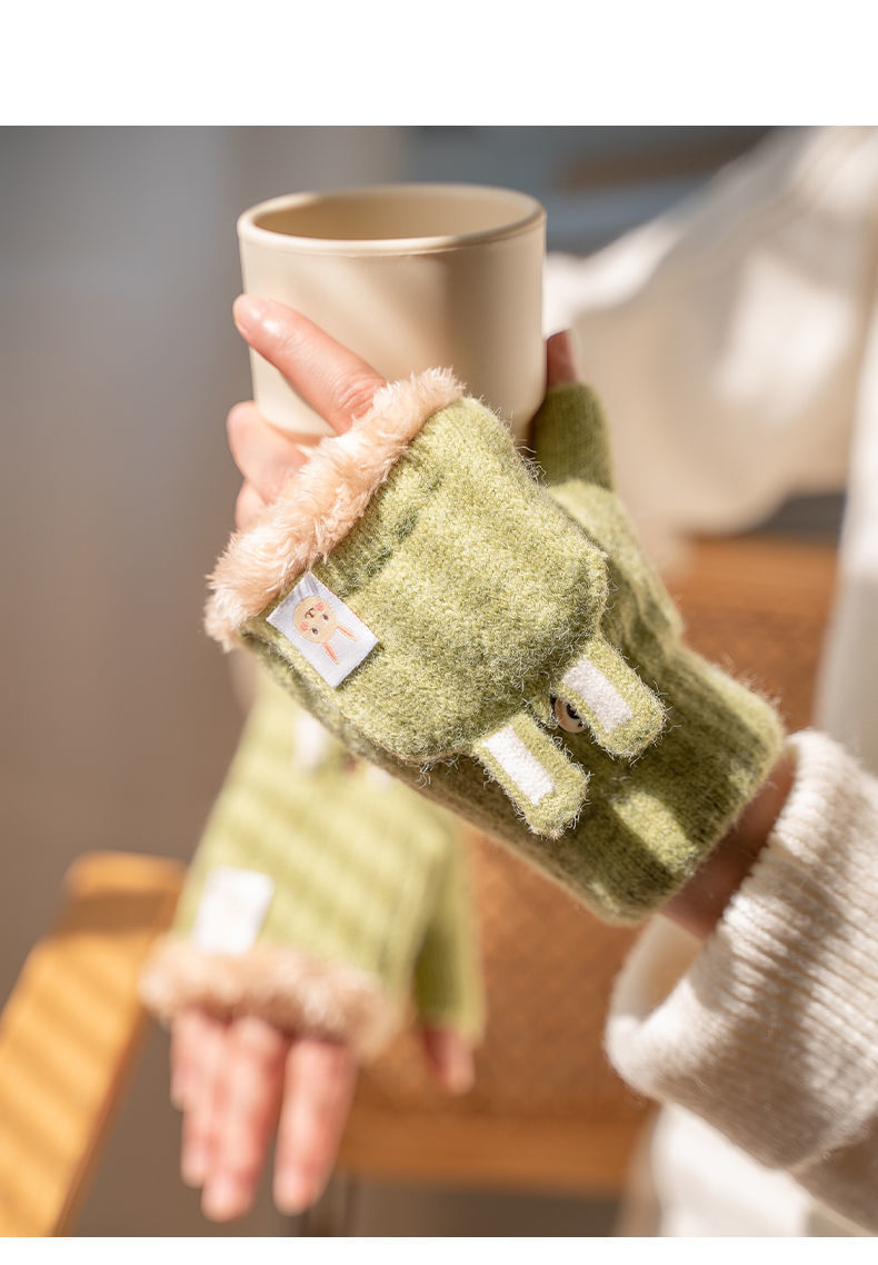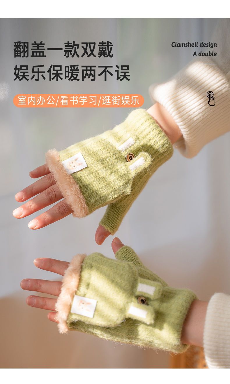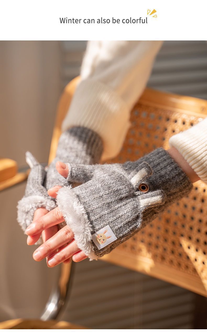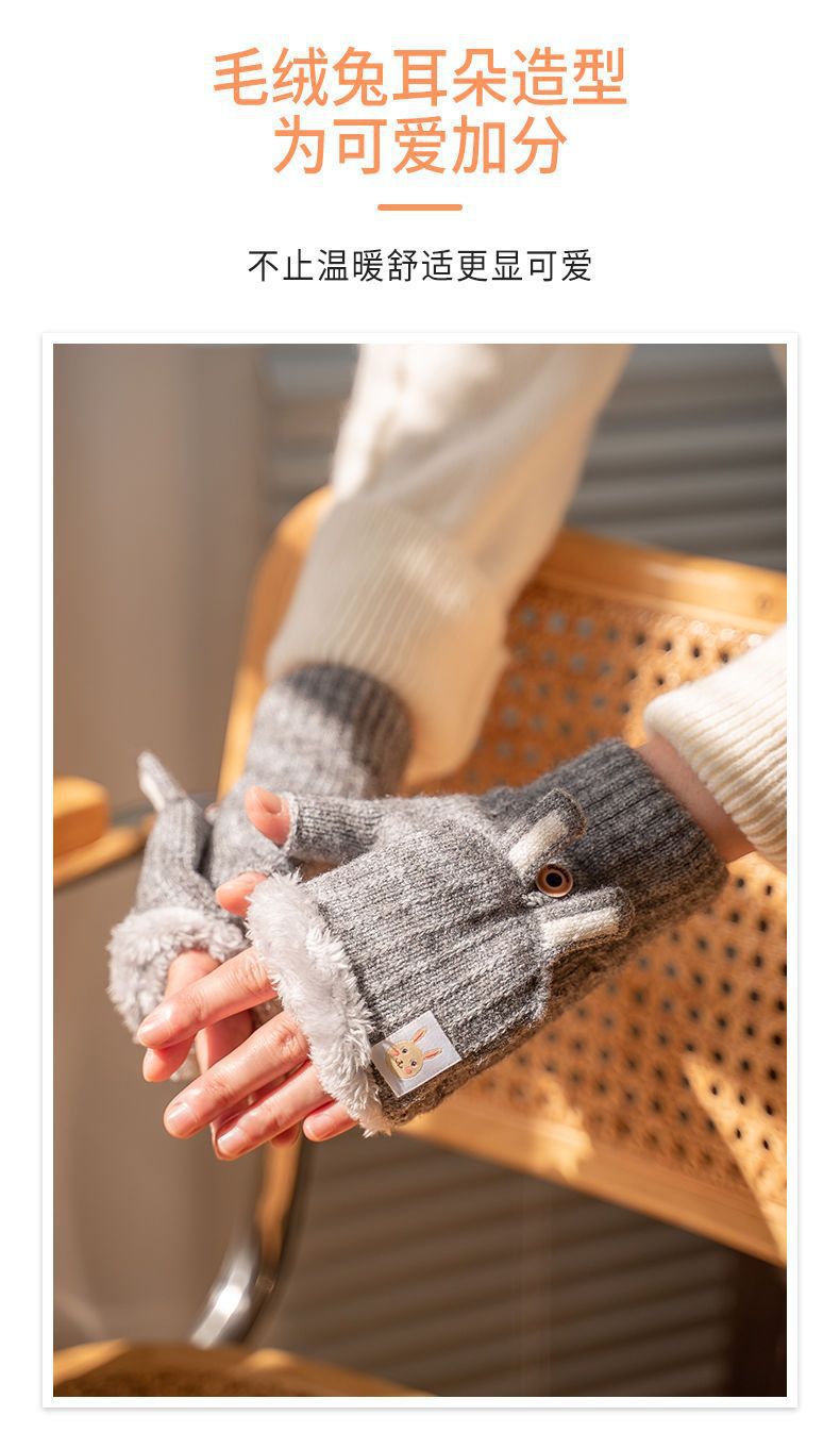 장갑 여성의 겨울 따뜻한 감기 방지 기모 두꺼운 귀여운 토끼 귀 타기 안티 양모 플립 온 장갑