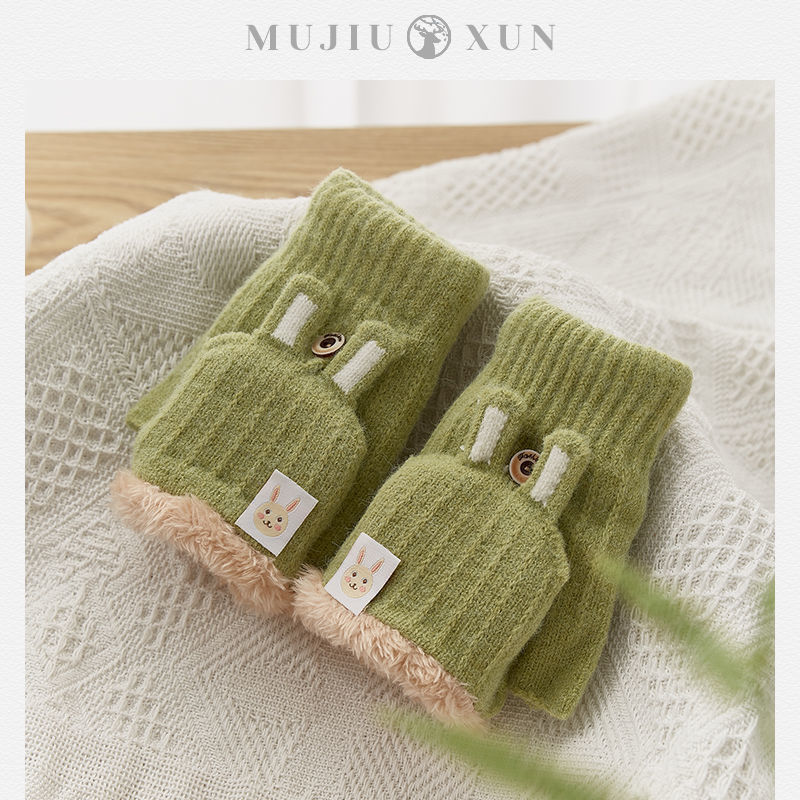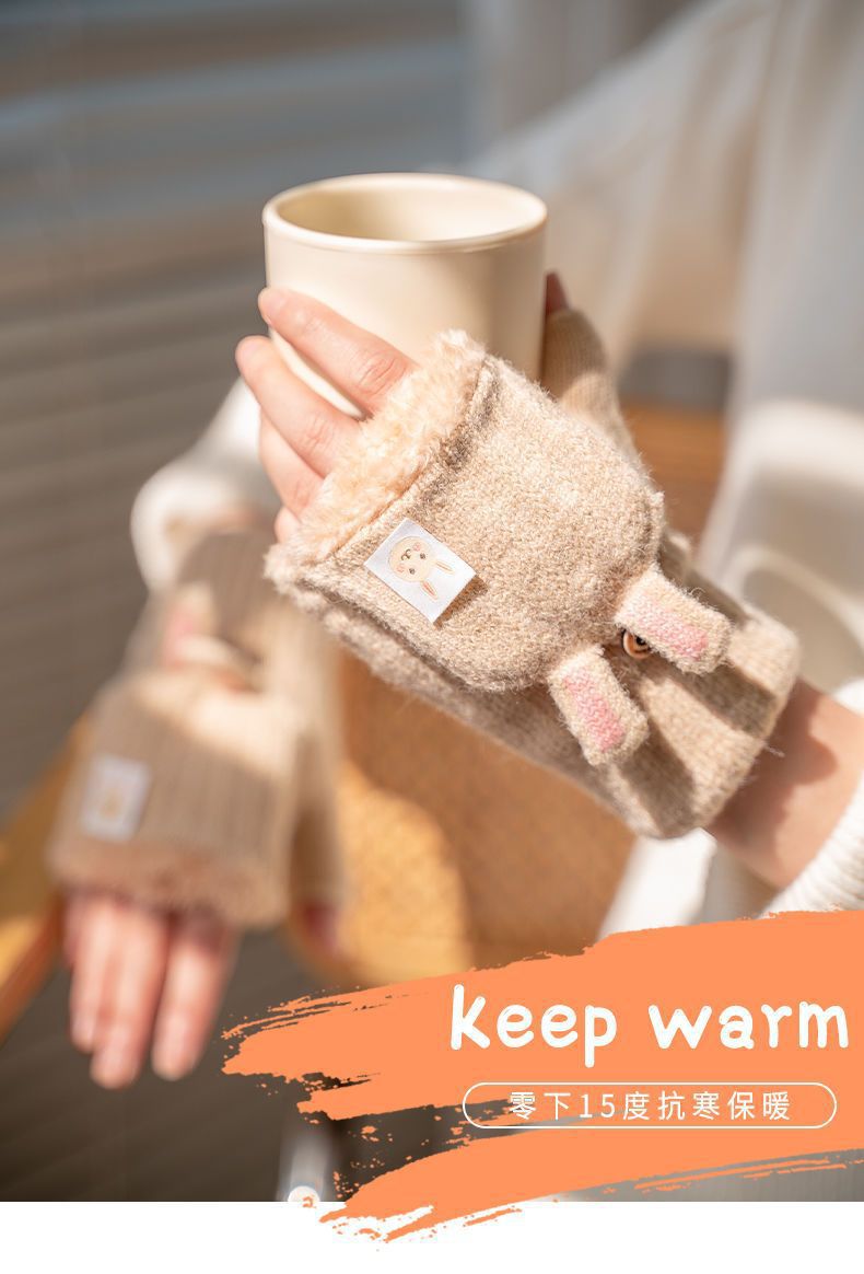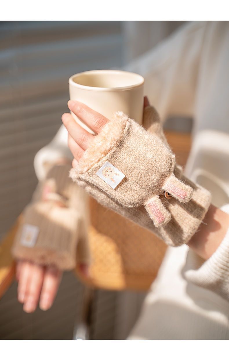 장갑 여성의 겨울 따뜻한 감기 방지 기모 두꺼운 귀여운 토끼 귀 타기 안티 양모 플립 온 장갑스토어 가기