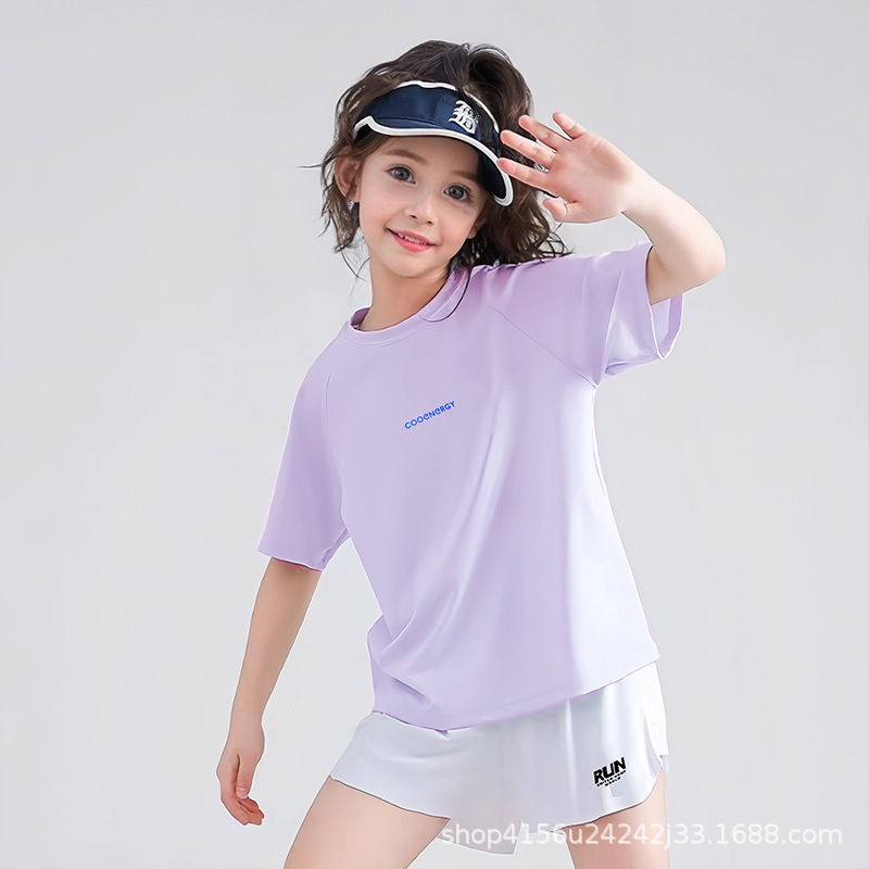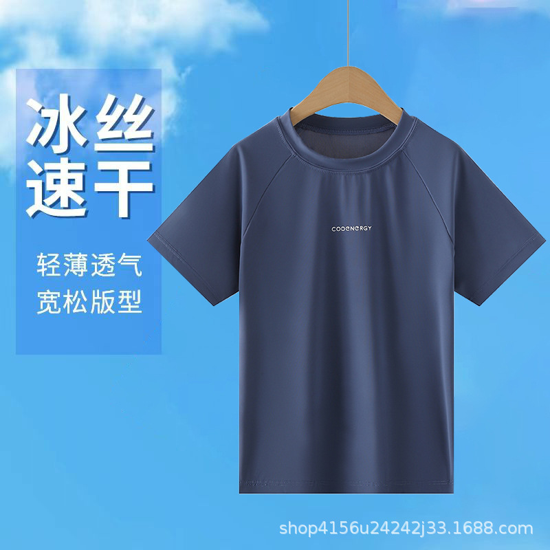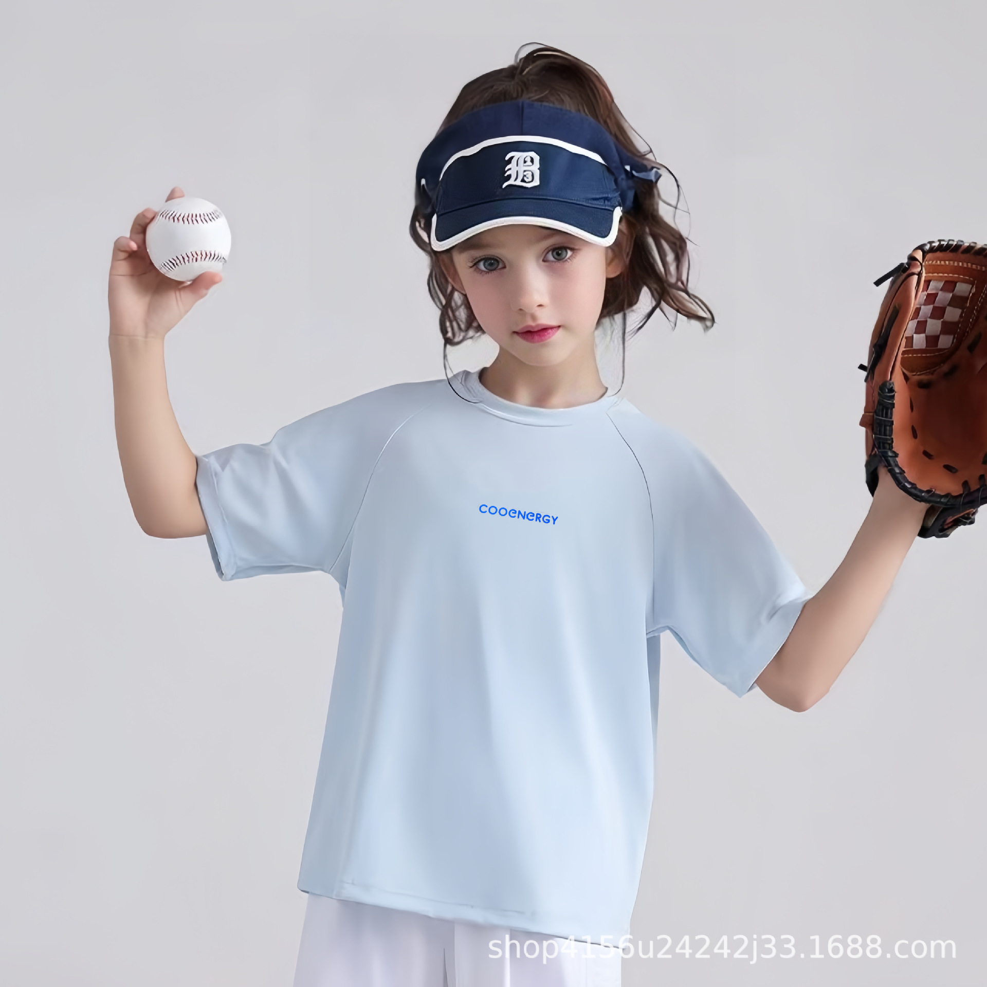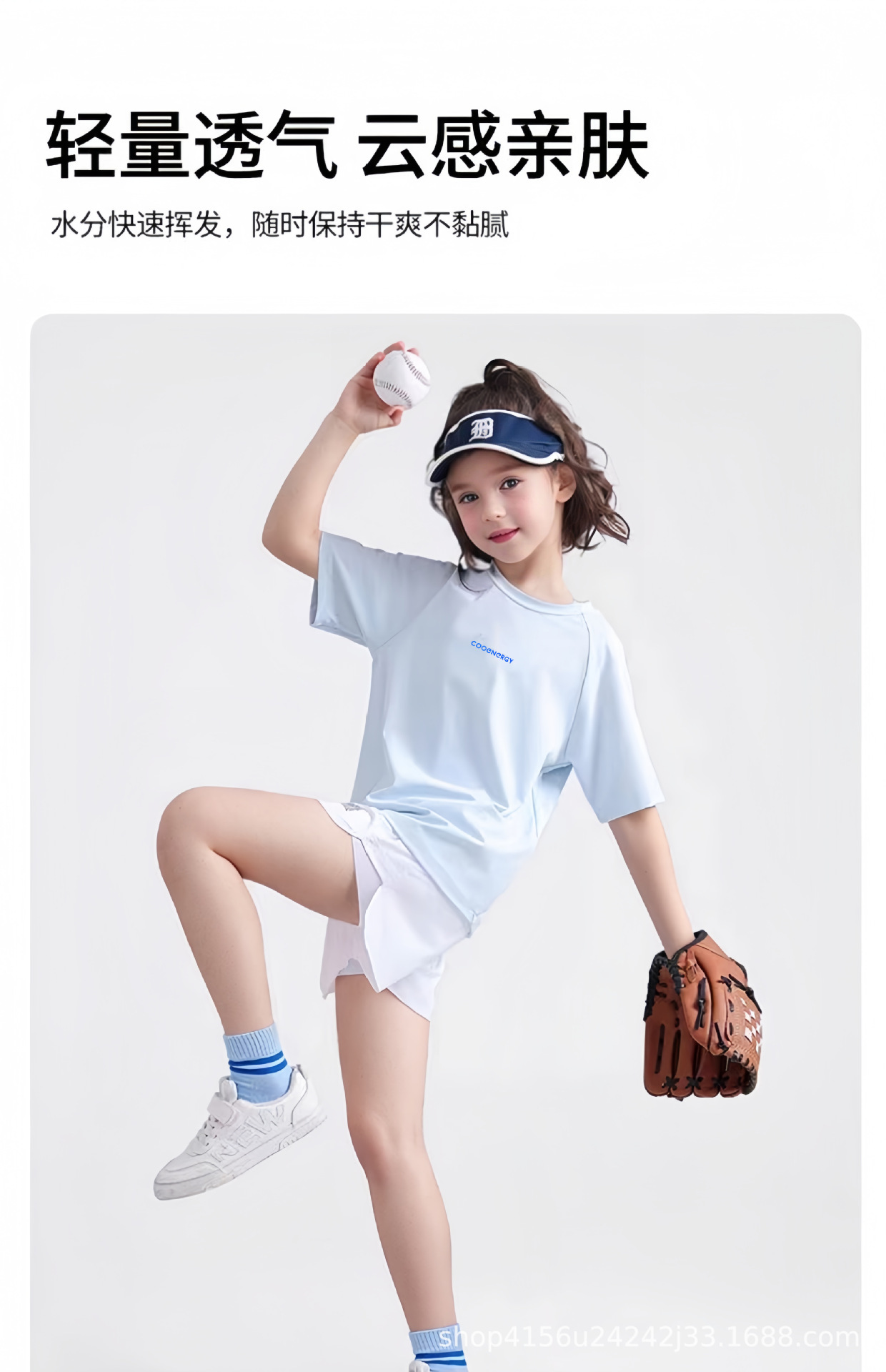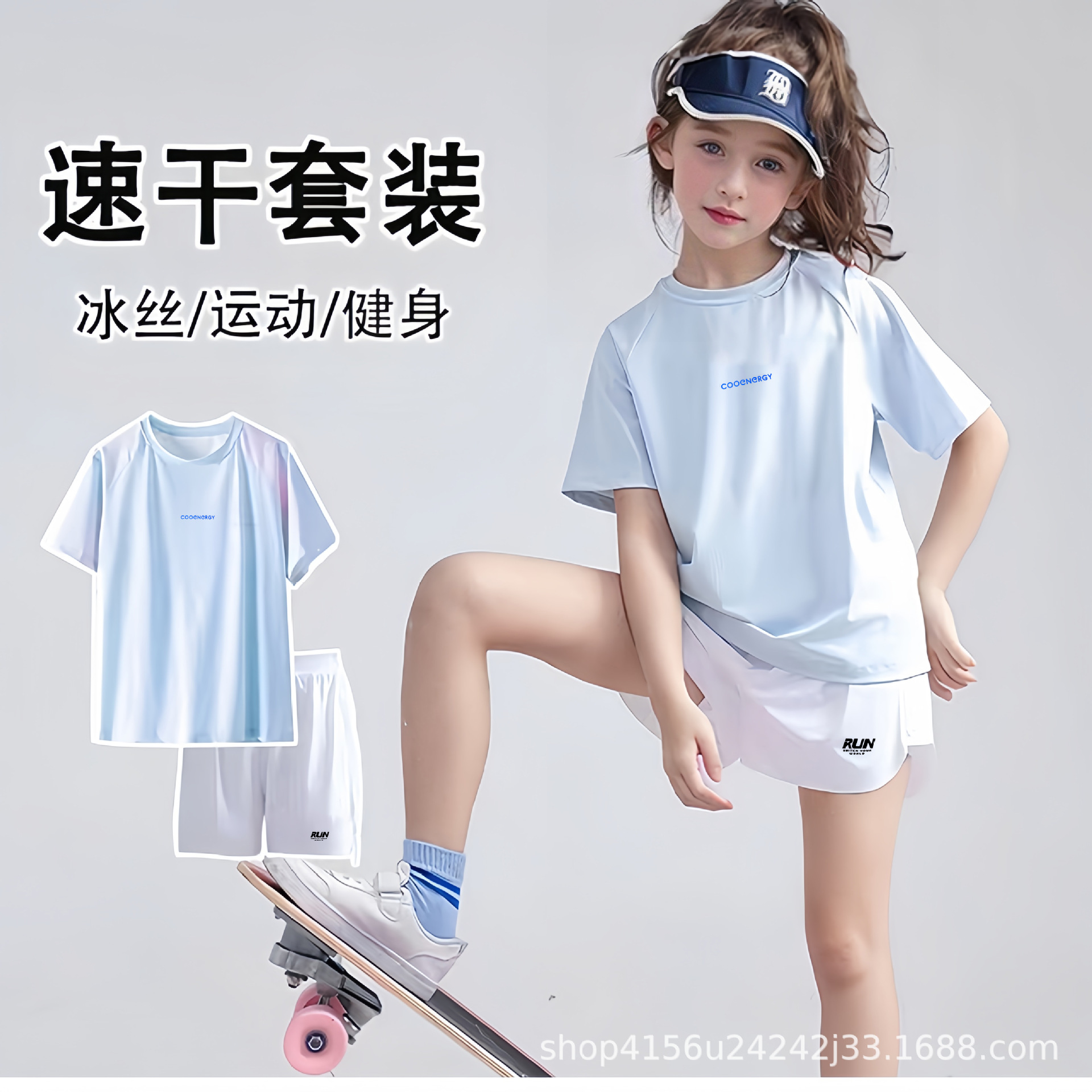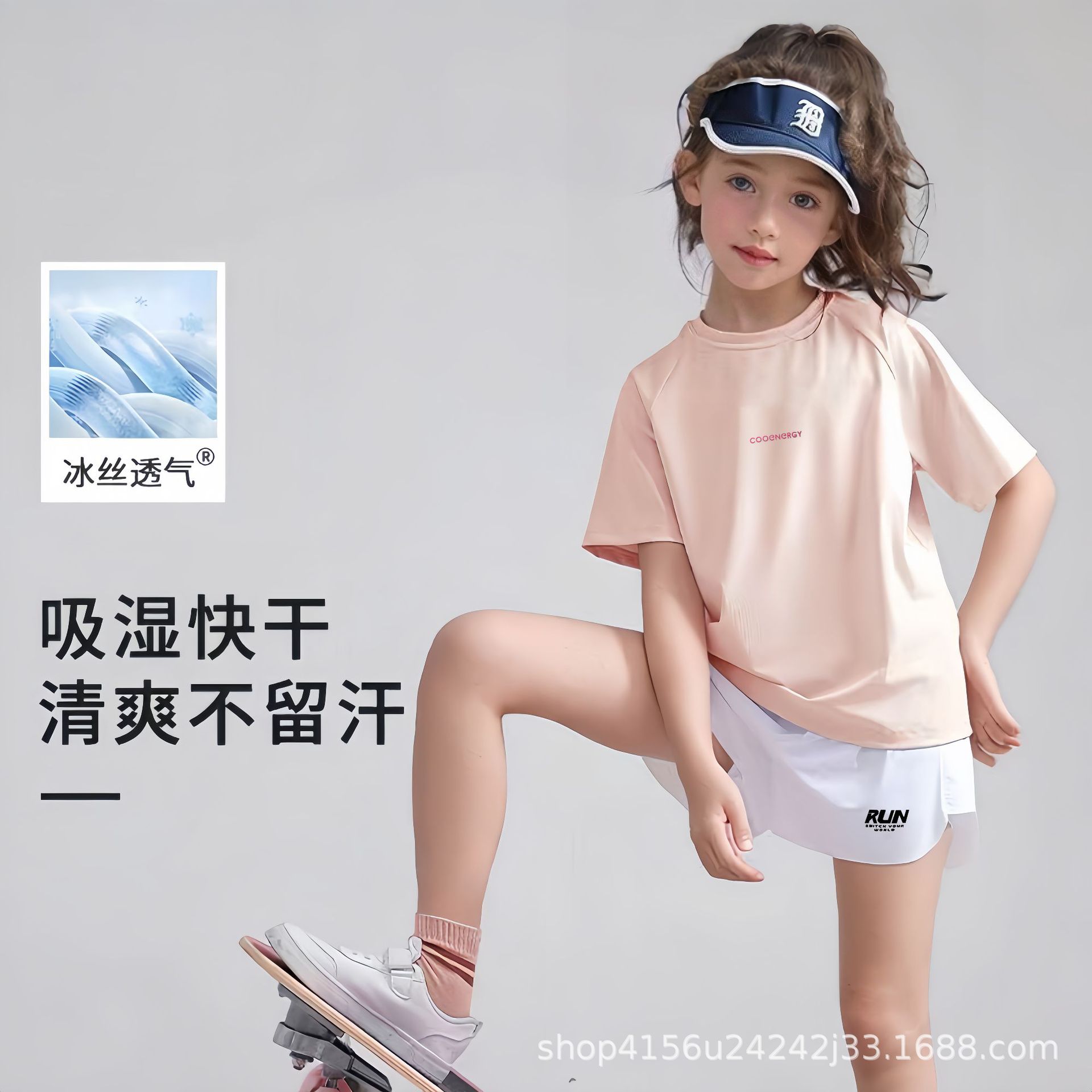 소년 소녀 빠른 건조 옷 2025 여름 여름 옷 새로운 어린이 스포츠 탑 러닝 반팔 티셔츠 아이스 실크 쿨스토어 가기