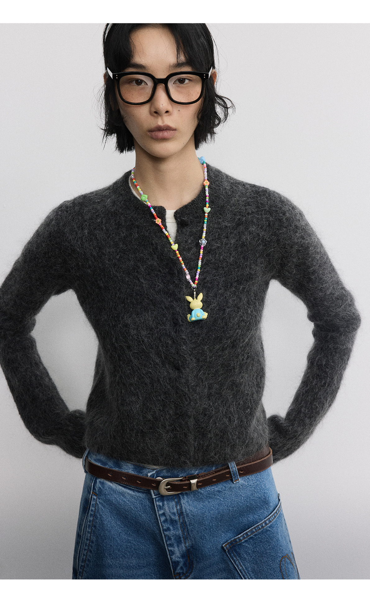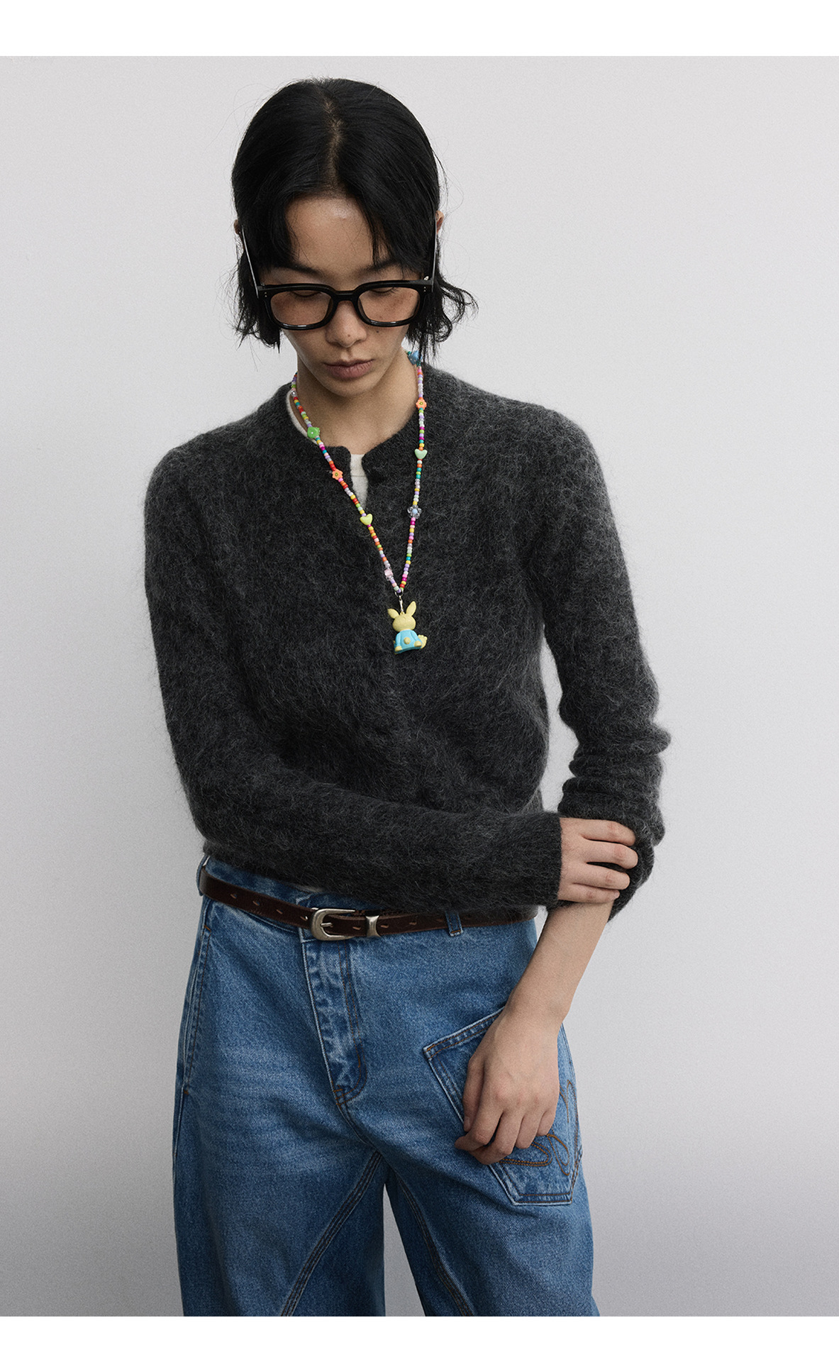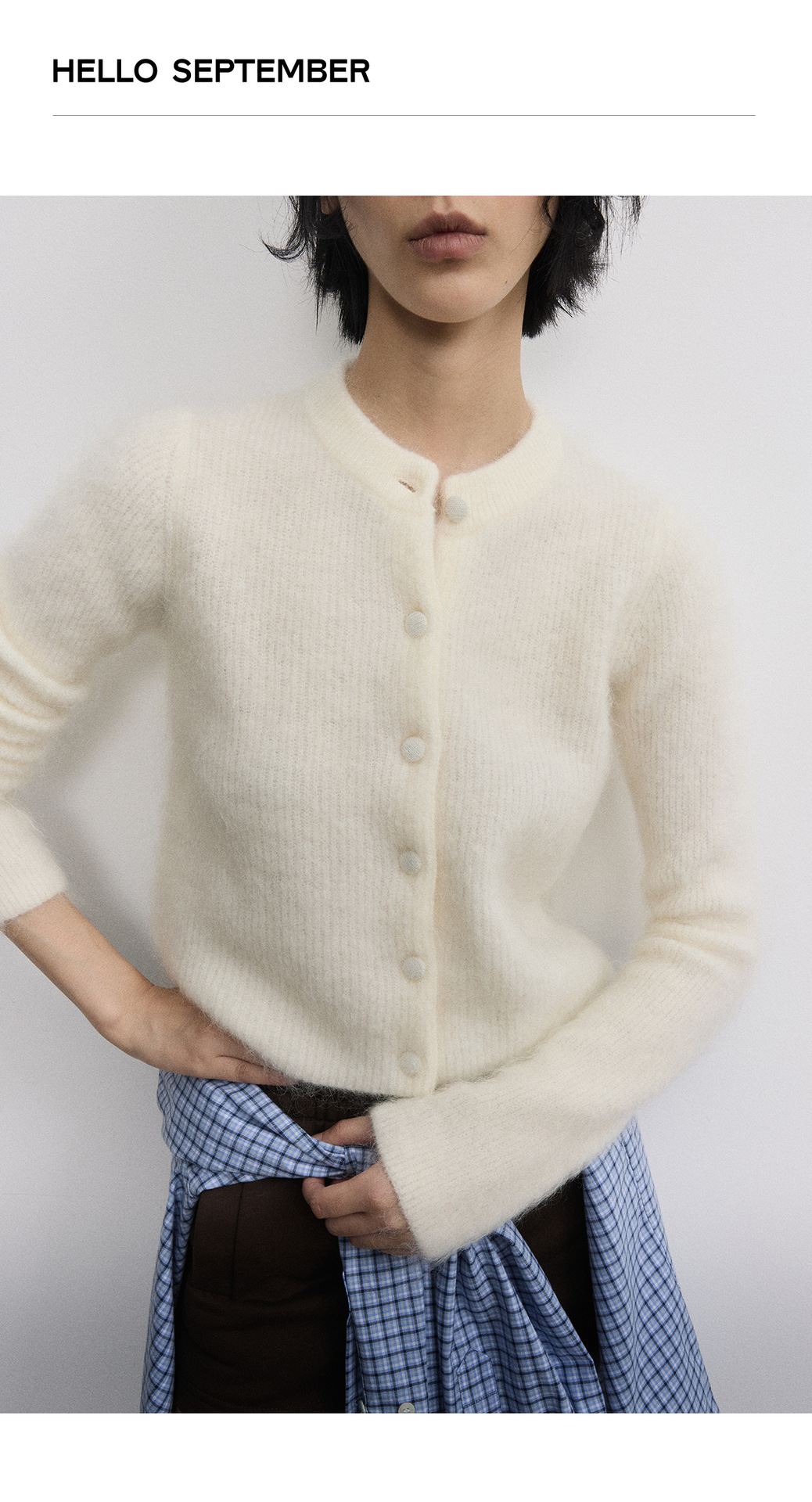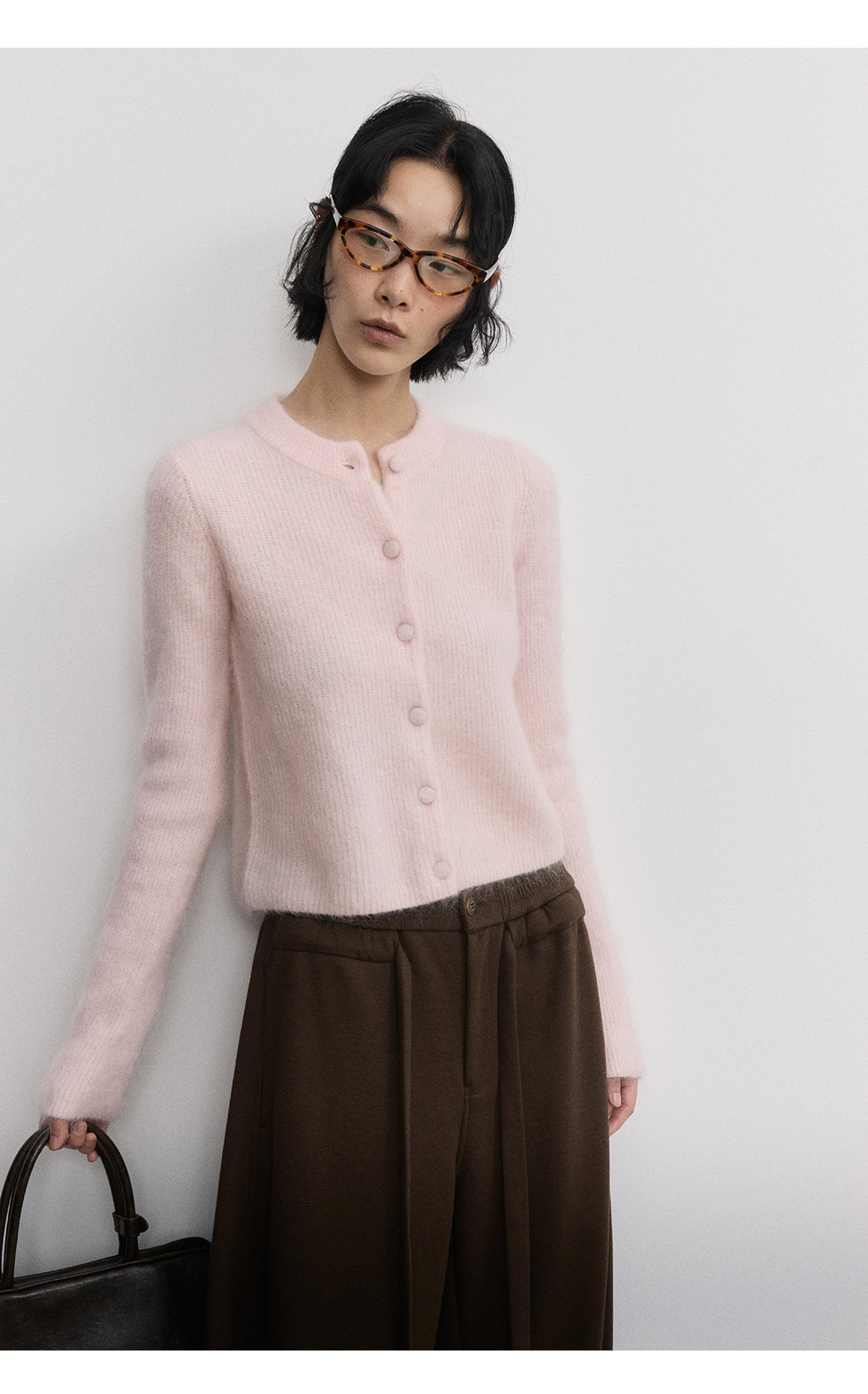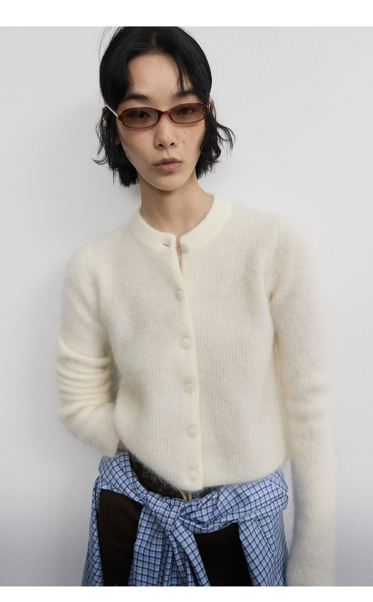 [타임키노우] 신상 솔리드 컬러 코튼 울 노블 모헤어 싱글 브레스티드 가디건 슬림 긴팔 스웨터 V7542