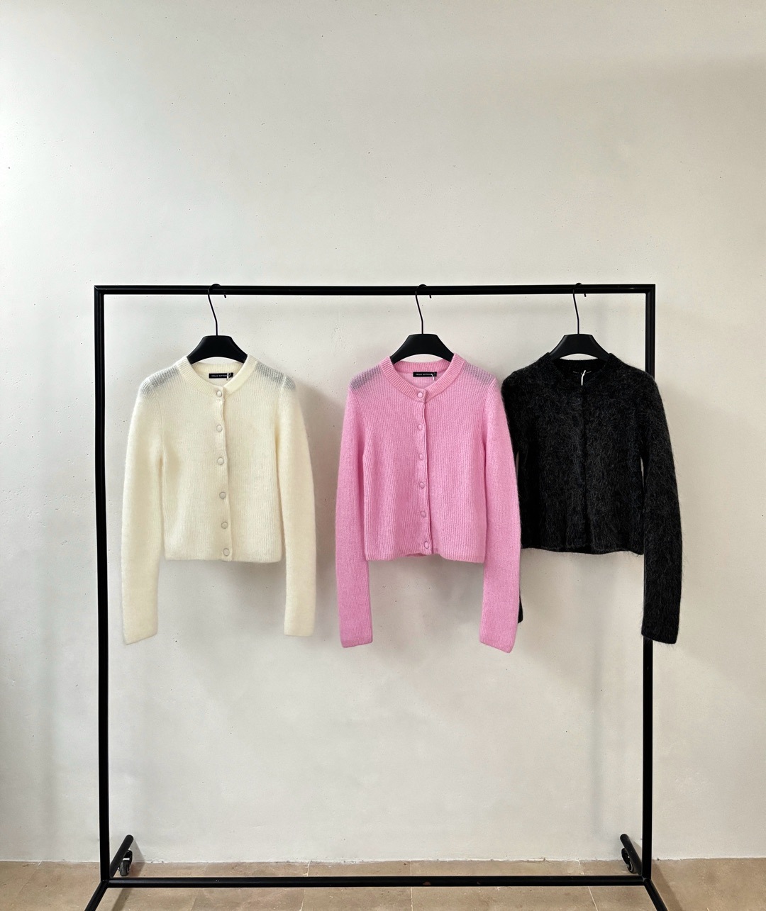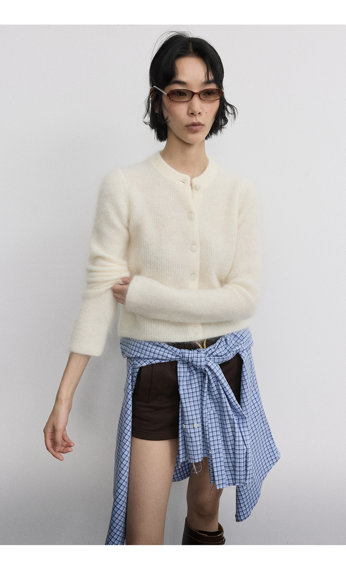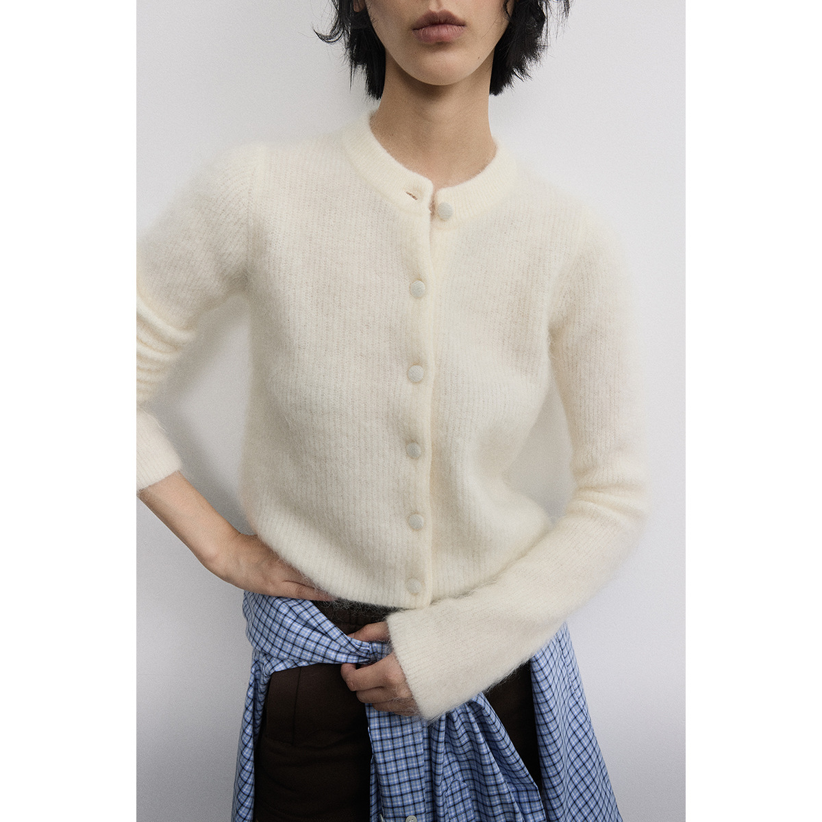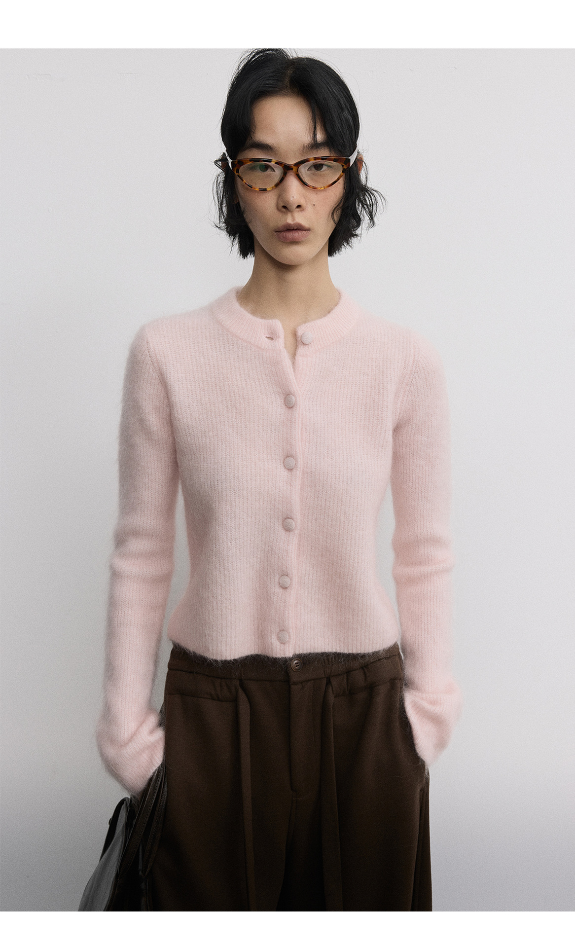 [타임키노우] 신상 솔리드 컬러 코튼 울 노블 모헤어 싱글 브레스티드 가디건 슬림 긴팔 스웨터 V7542