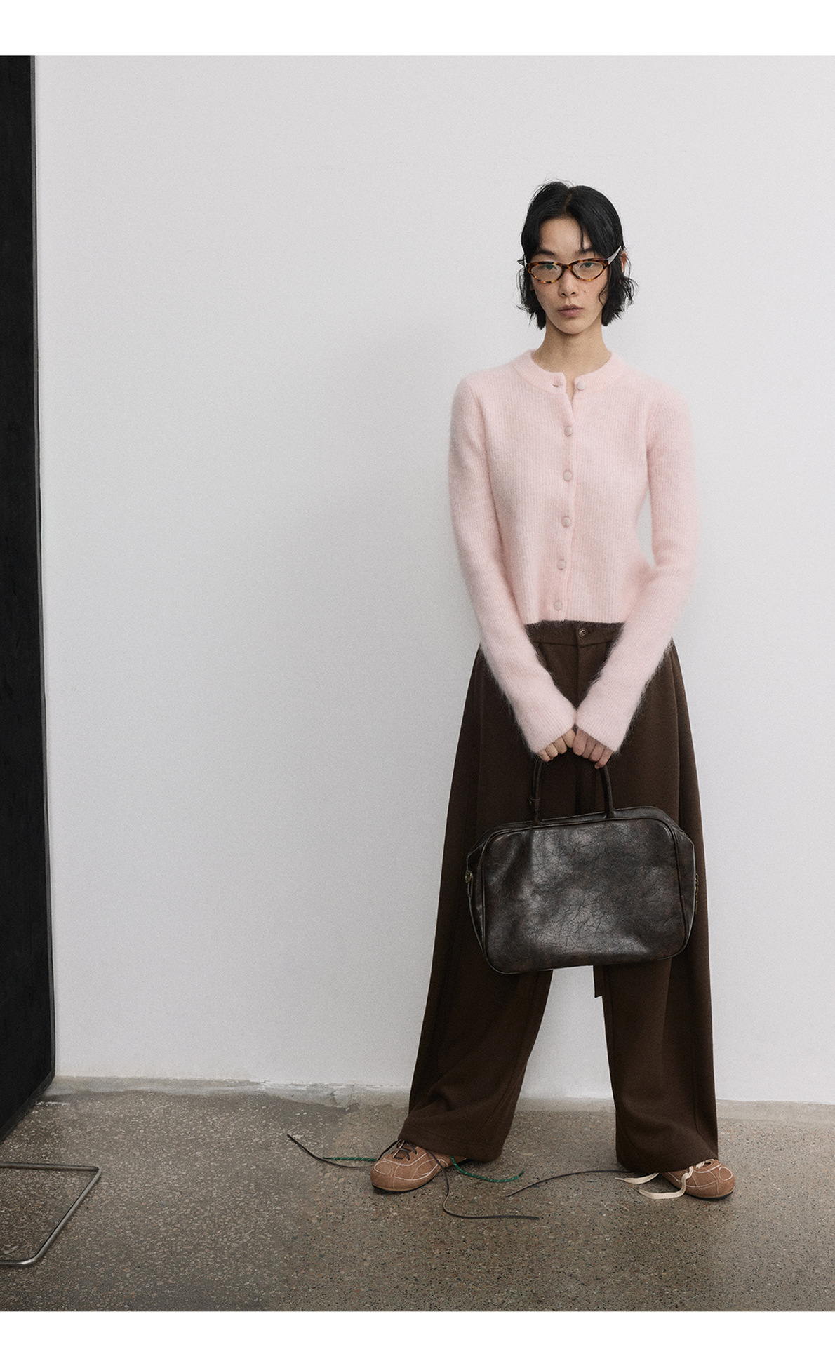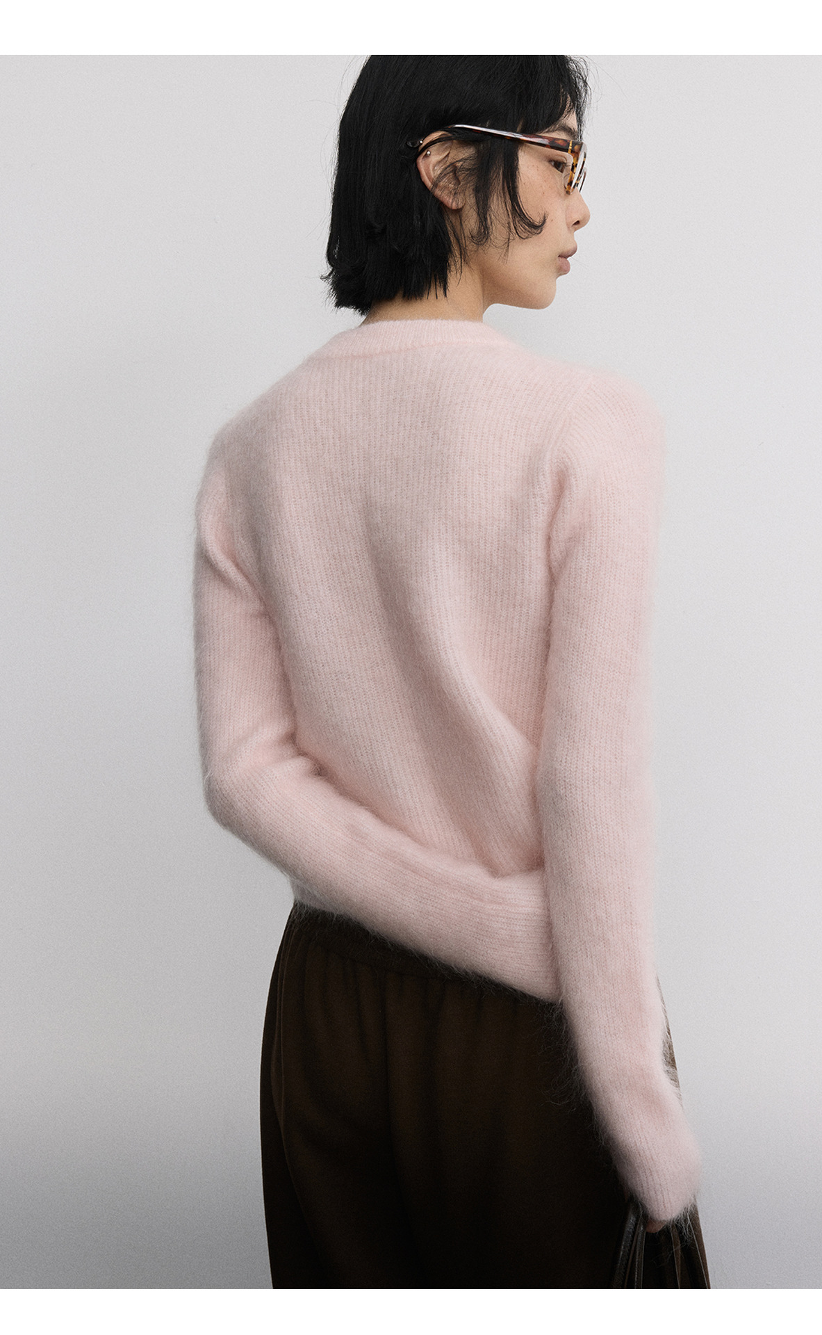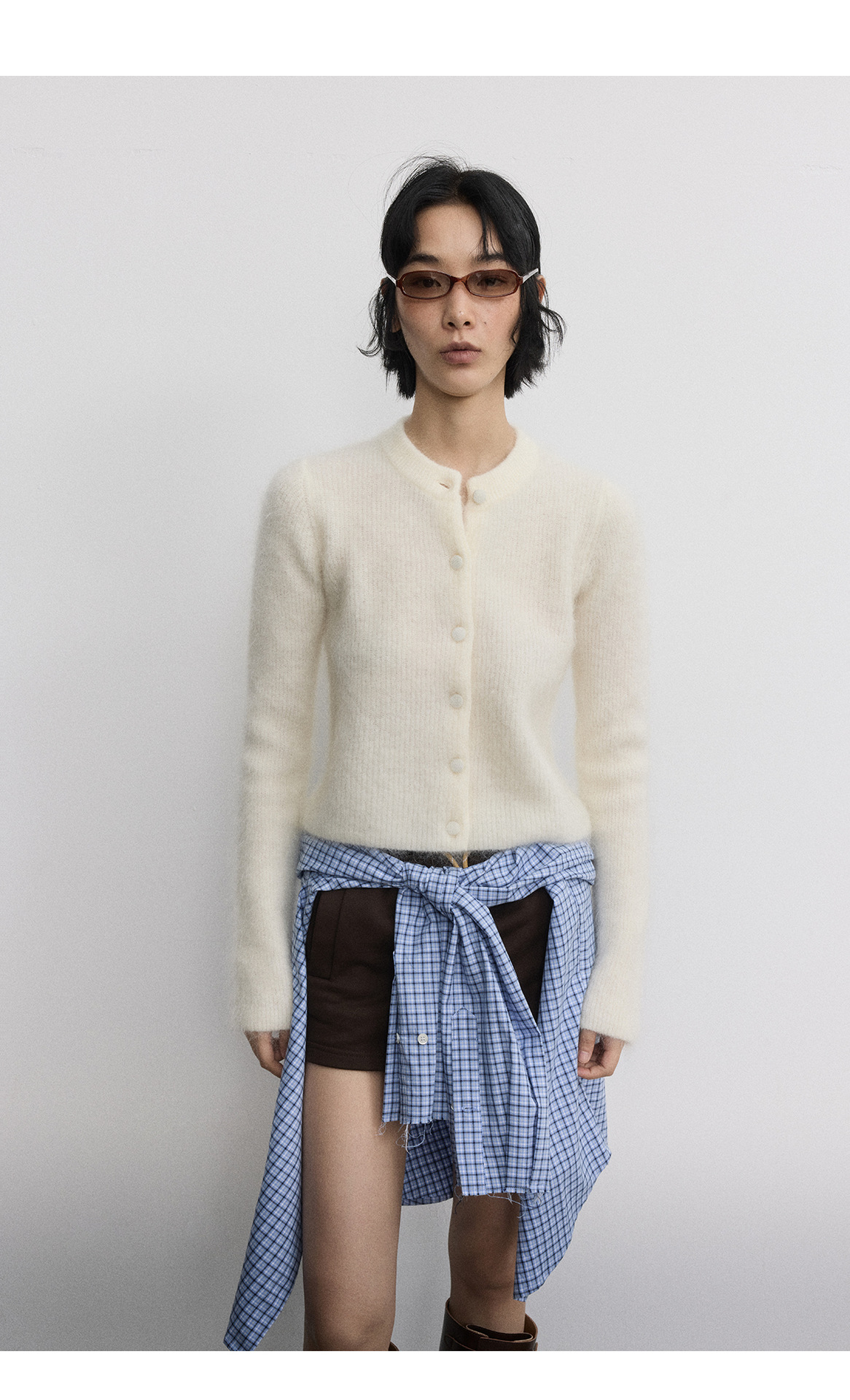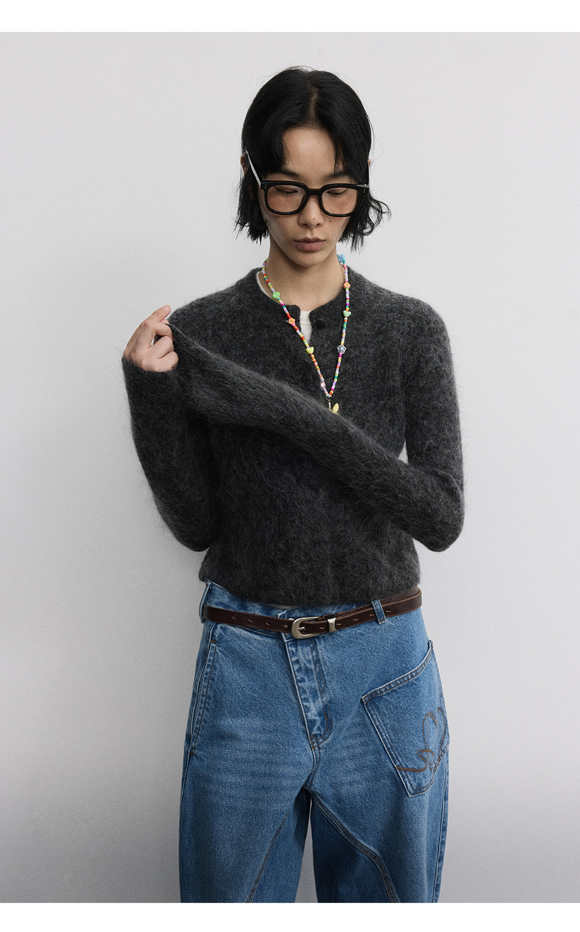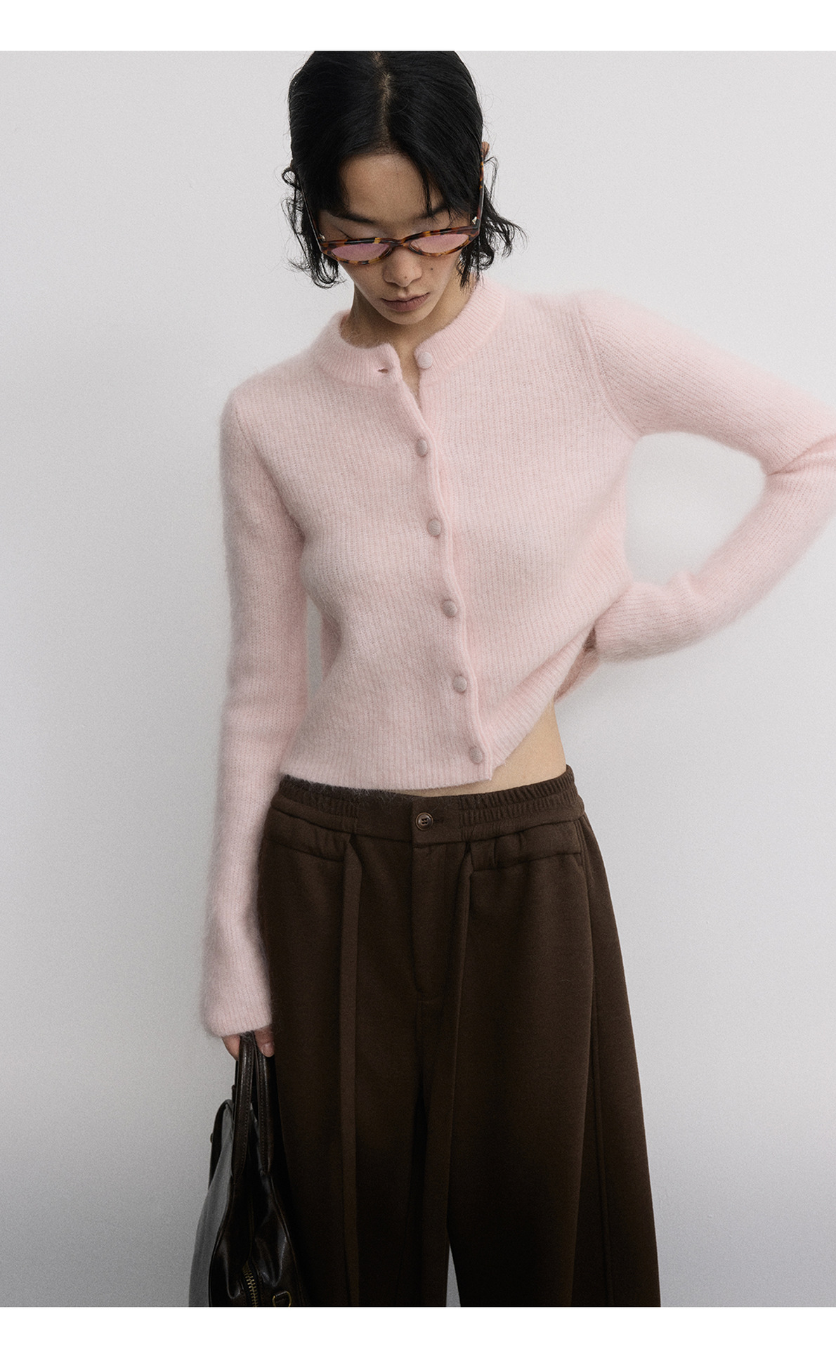 [타임키노우] 신상 솔리드 컬러 코튼 울 노블 모헤어 싱글 브레스티드 가디건 슬림 긴팔 스웨터 V7542
