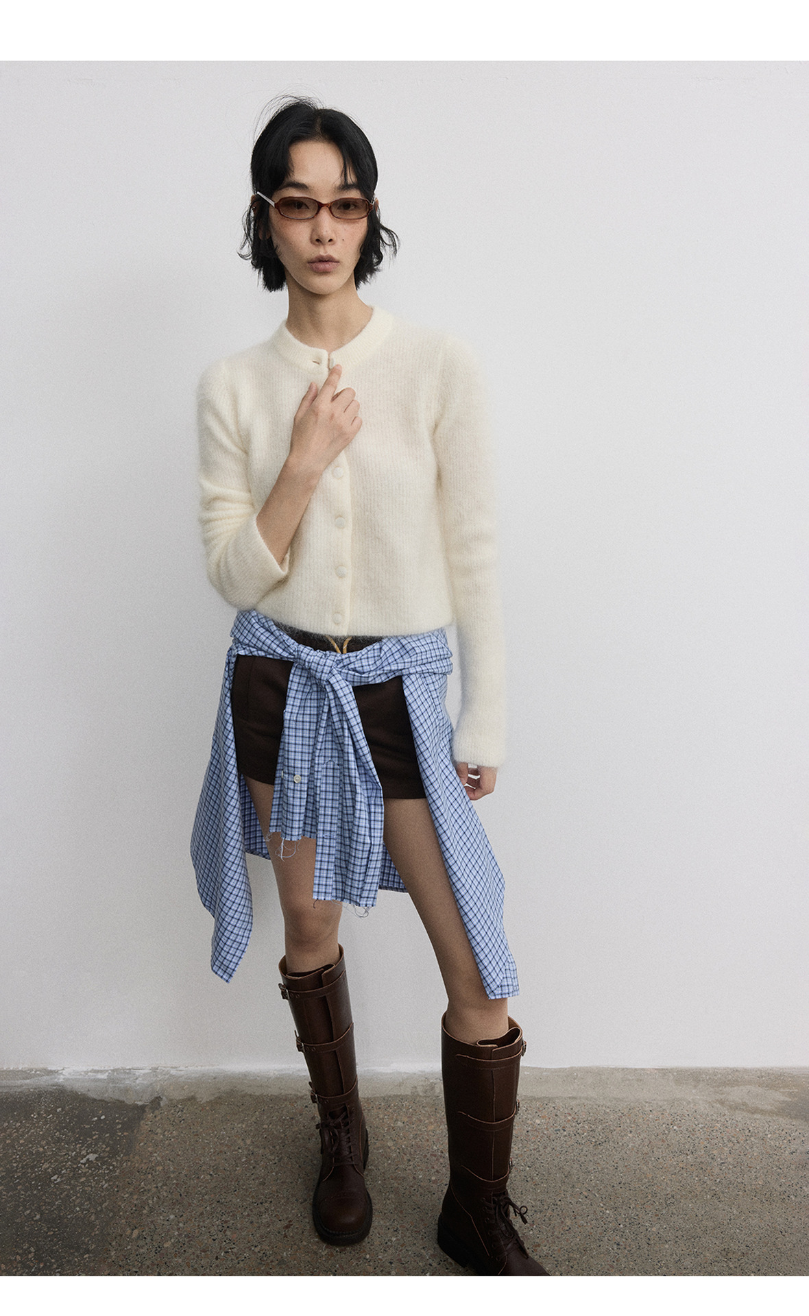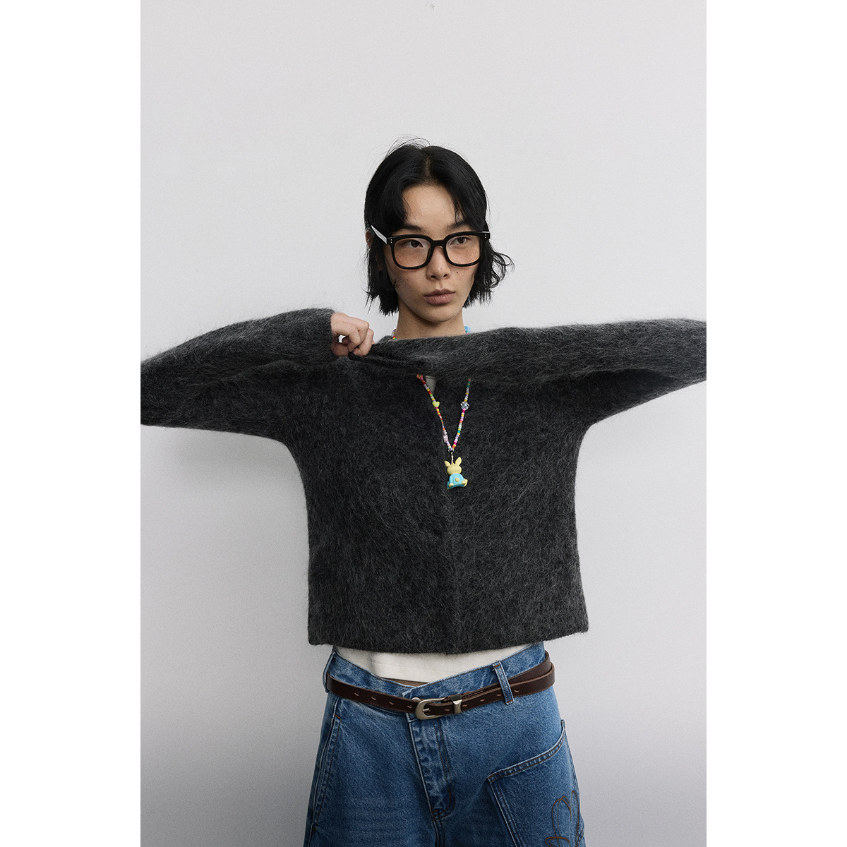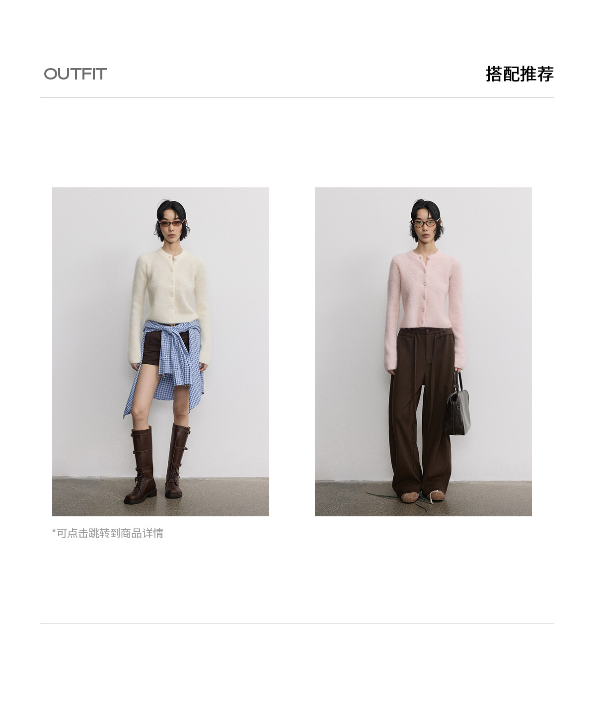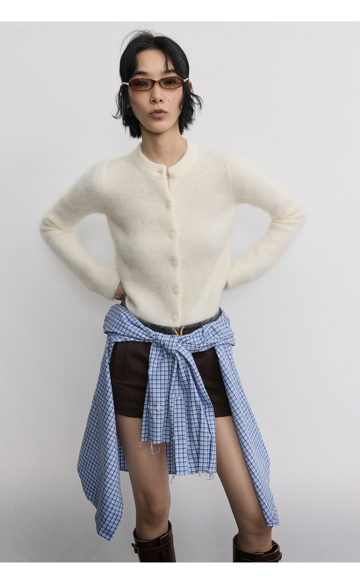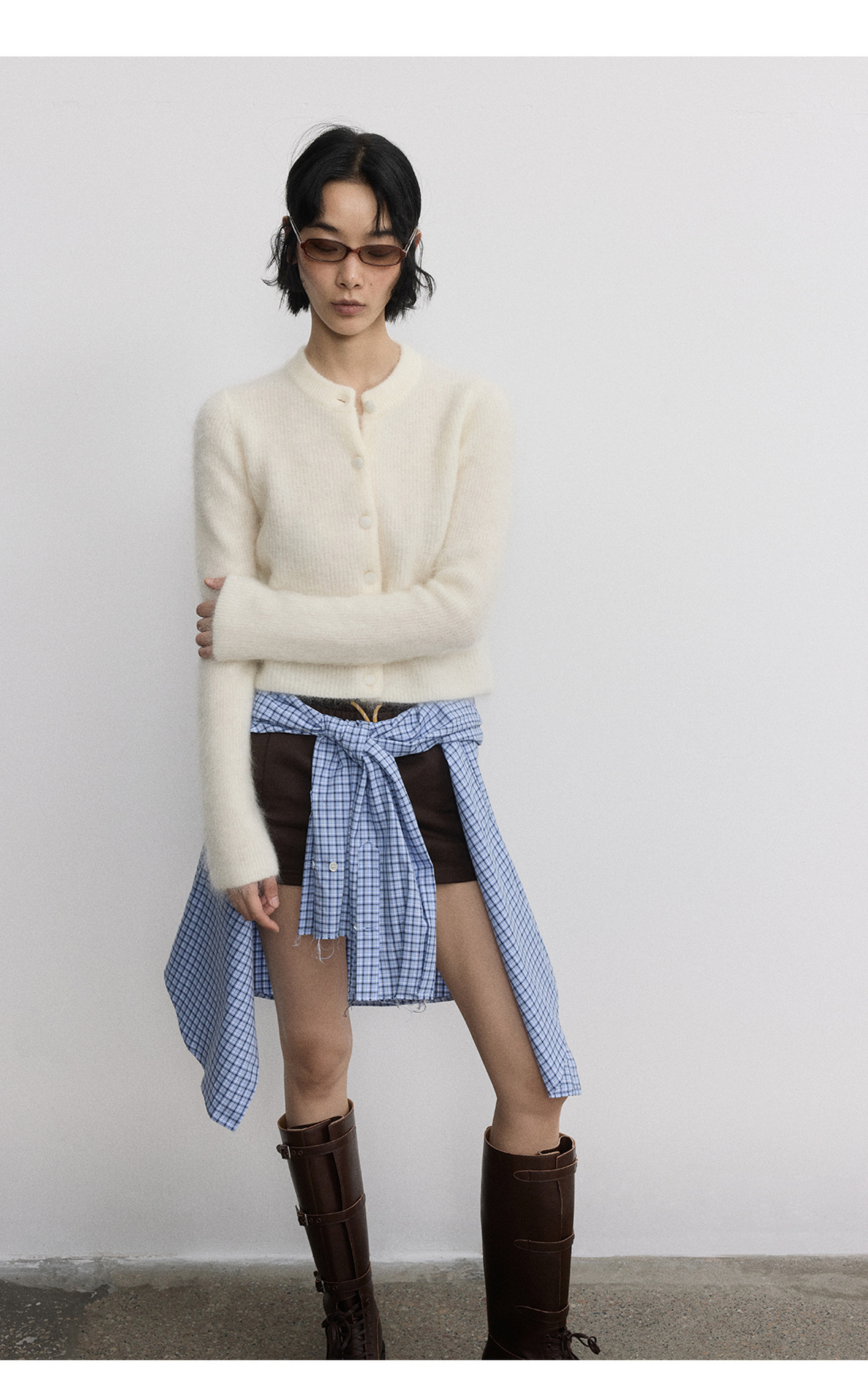 [타임키노우] 신상 솔리드 컬러 코튼 울 노블 모헤어 싱글 브레스티드 가디건 슬림 긴팔 스웨터 V7542