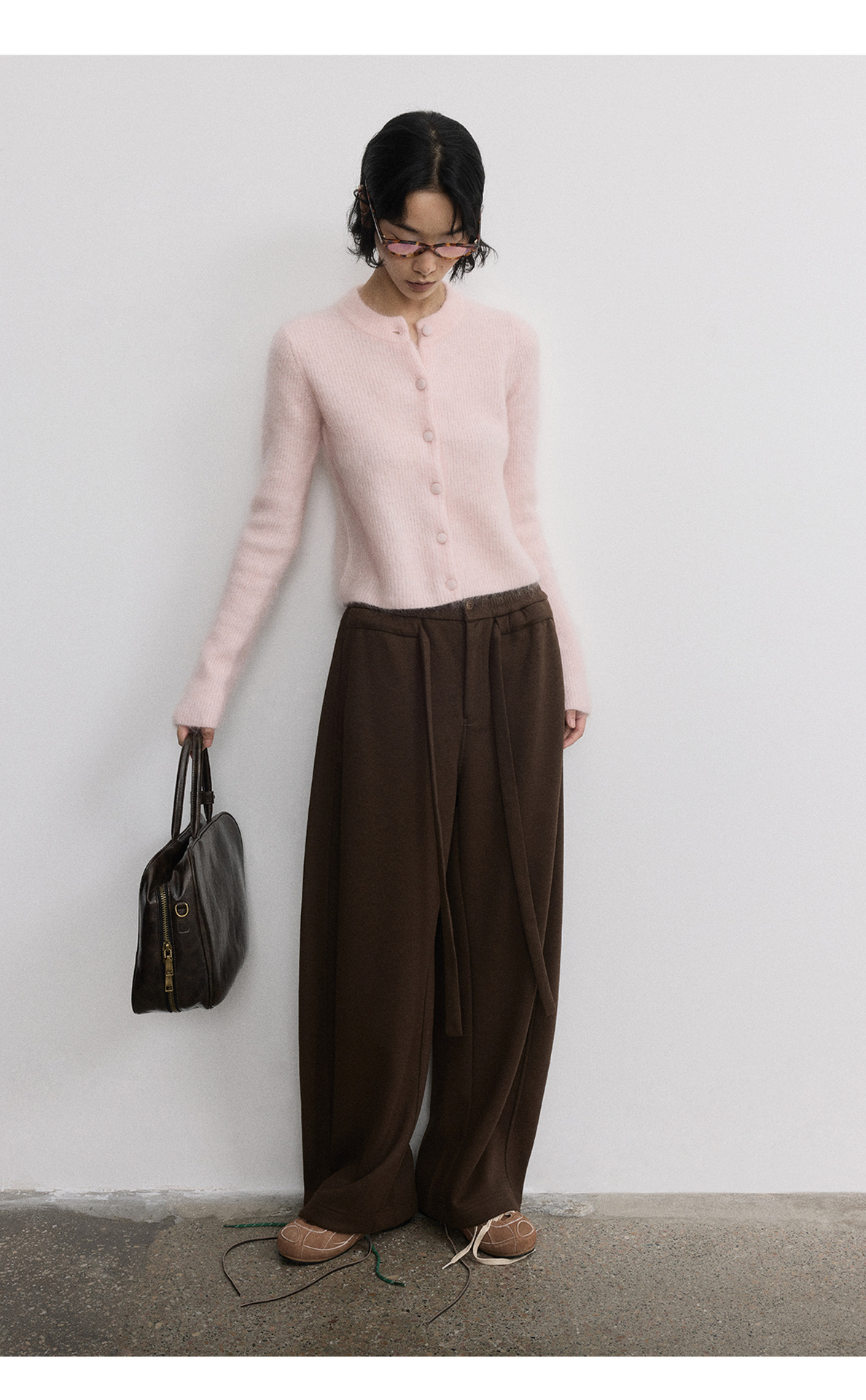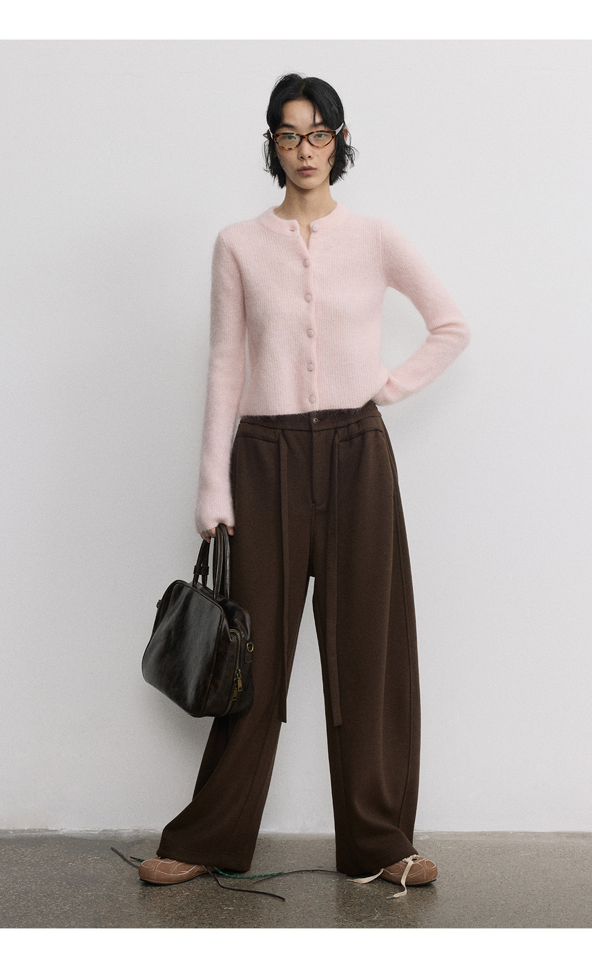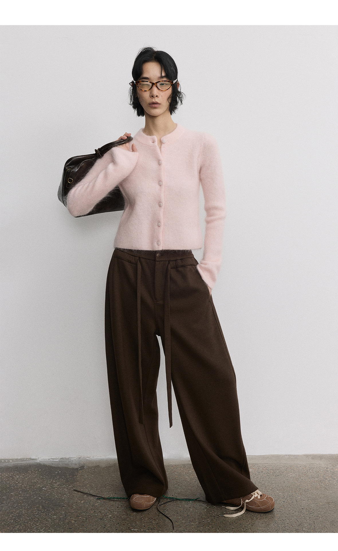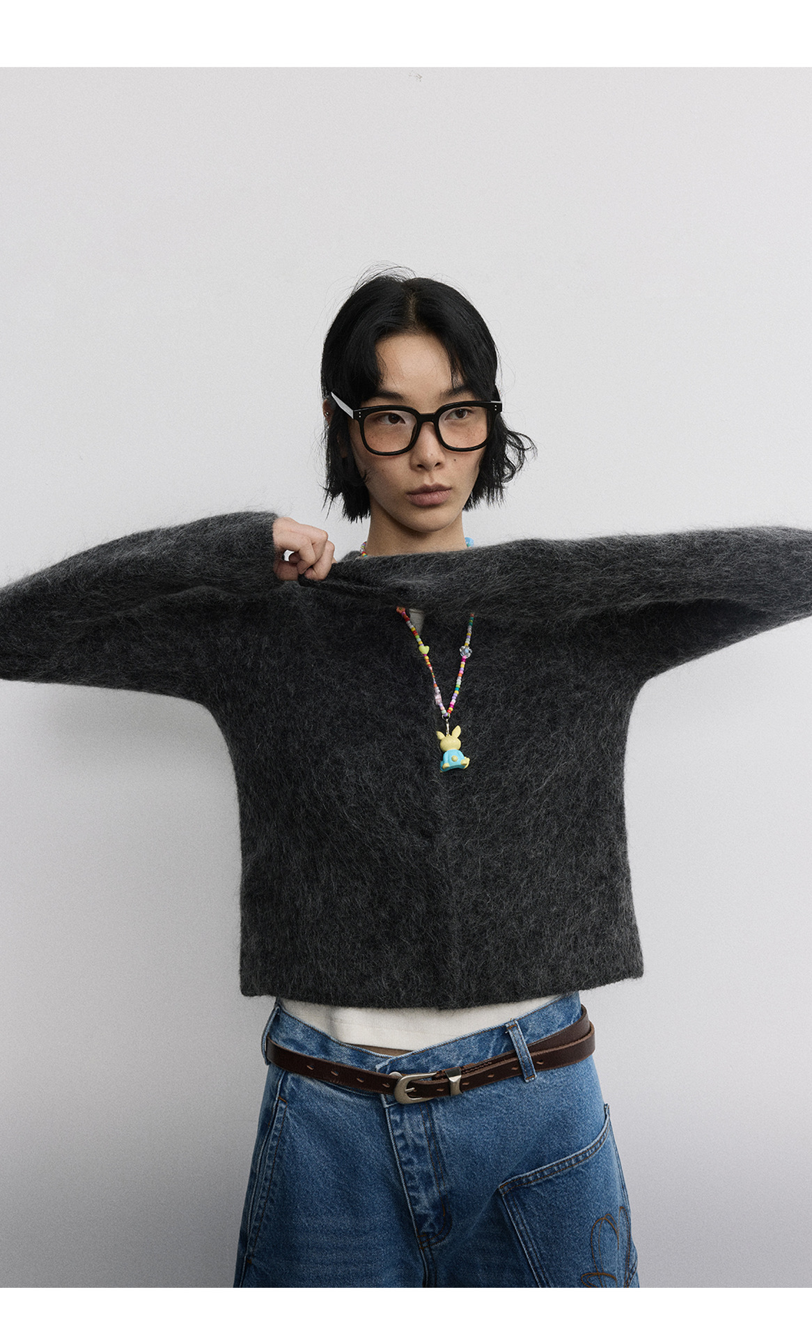 [타임키노우] 신상 솔리드 컬러 코튼 울 노블 모헤어 싱글 브레스티드 가디건 슬림 긴팔 스웨터 V7542
