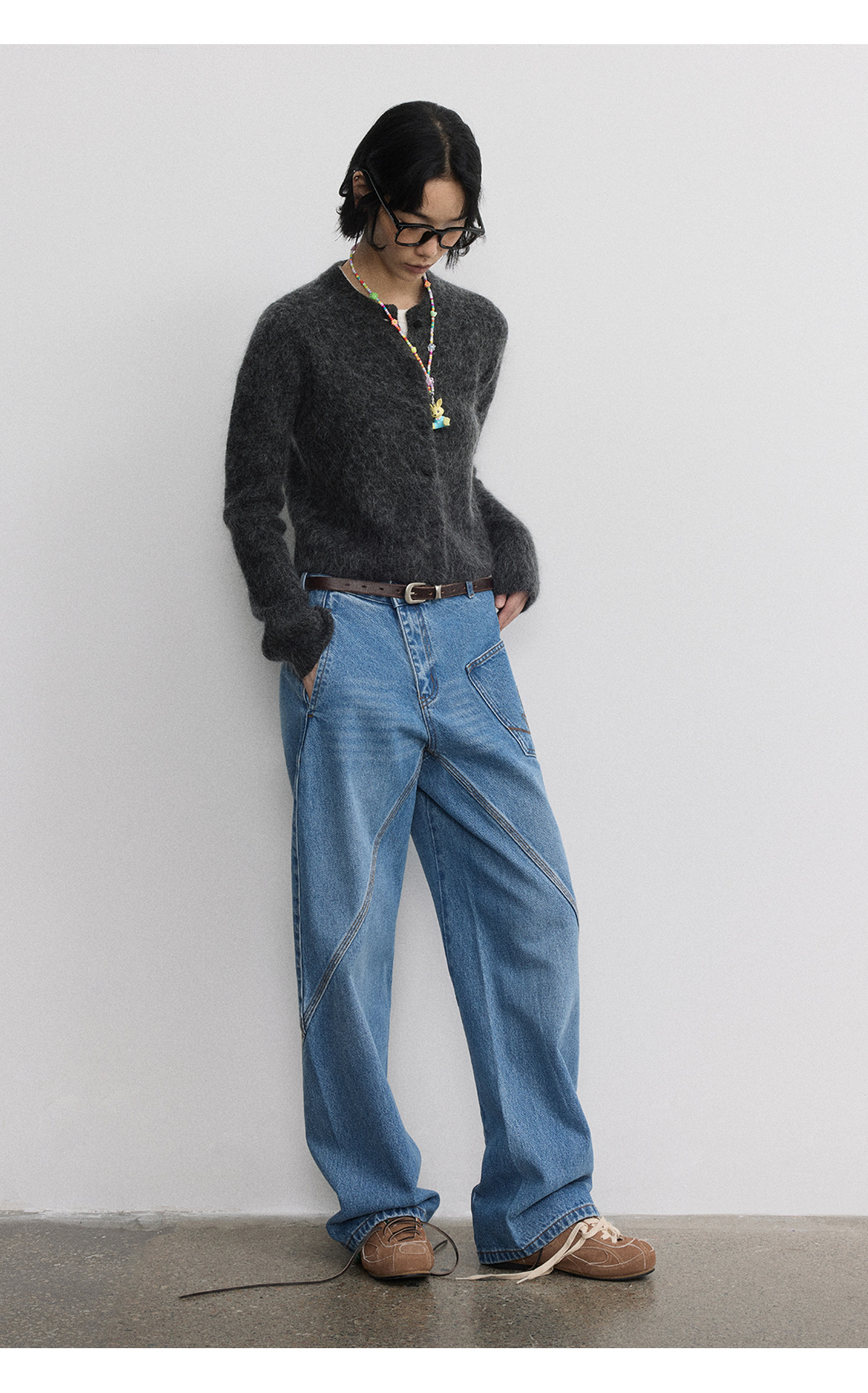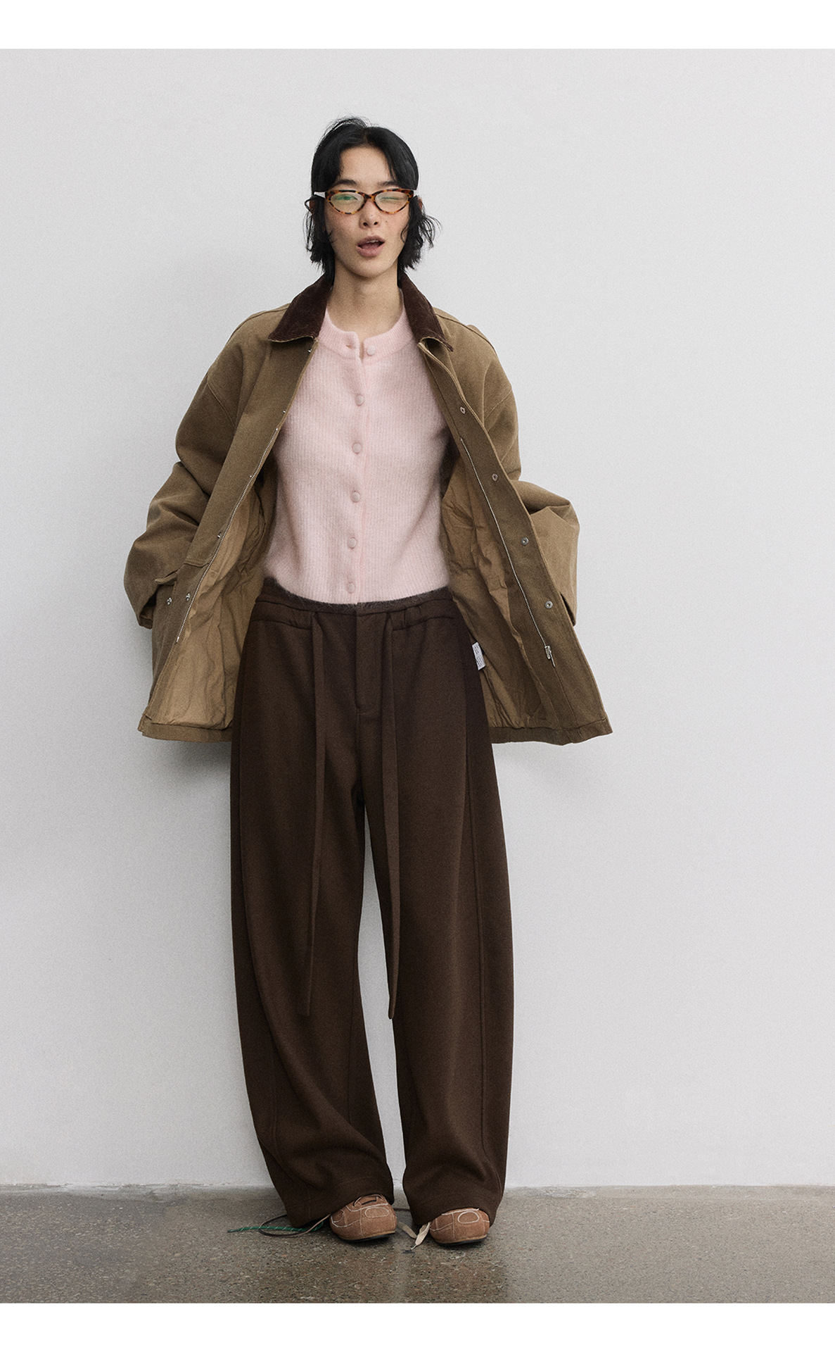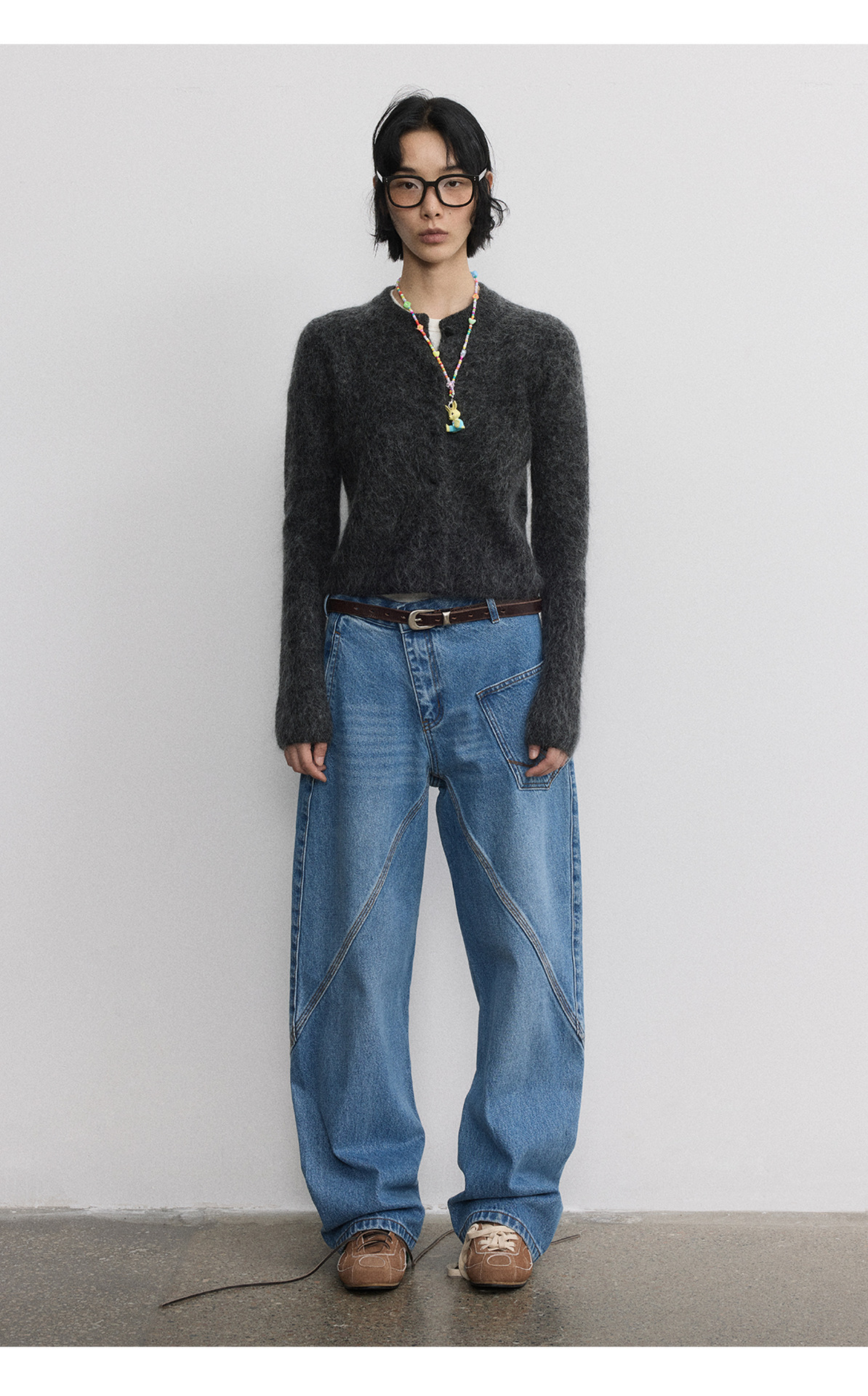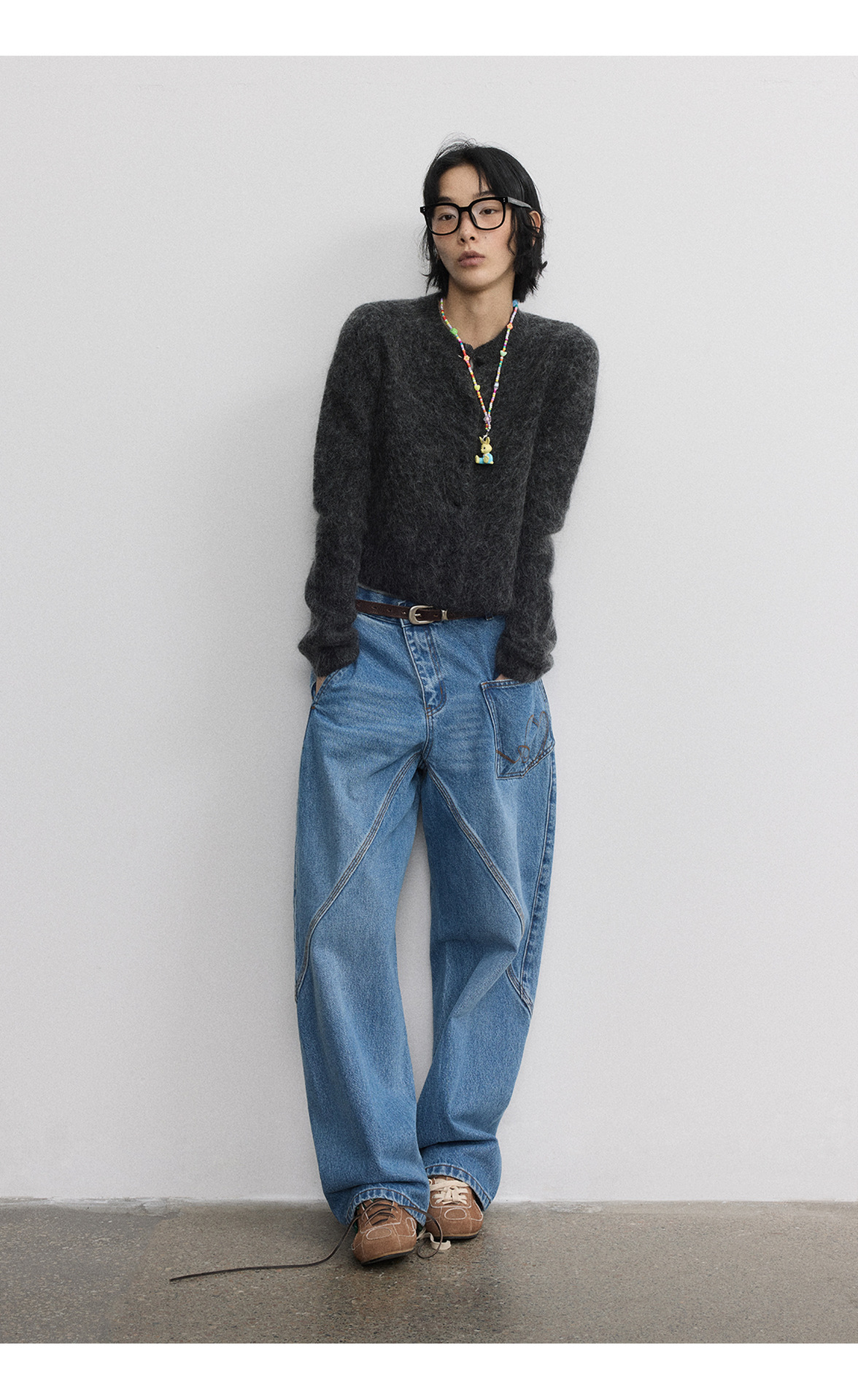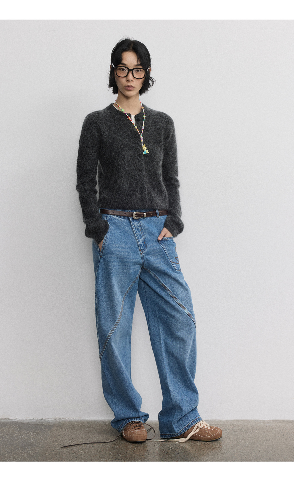 [타임키노우] 신상 솔리드 컬러 코튼 울 노블 모헤어 싱글 브레스티드 가디건 슬림 긴팔 스웨터 V7542