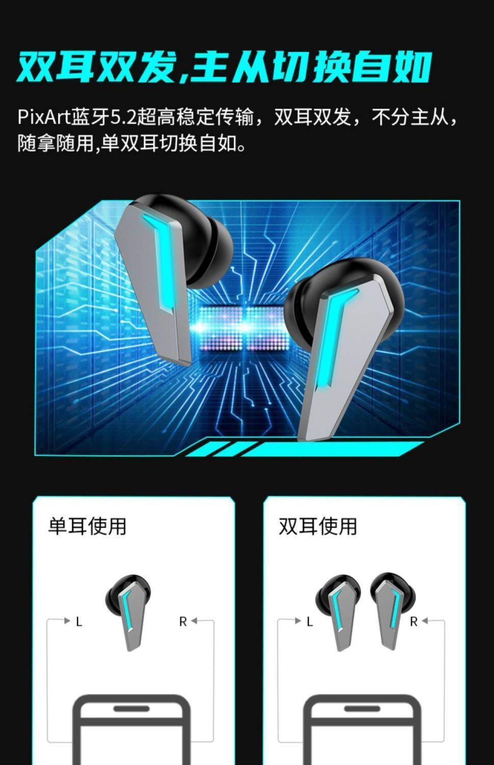 국경 간 새로운 개인 모델 전자 스포츠 블루투스 헤드셋 게임 지연 귀마개 소음 감소 미니 헤드셋 도매스토어 가기