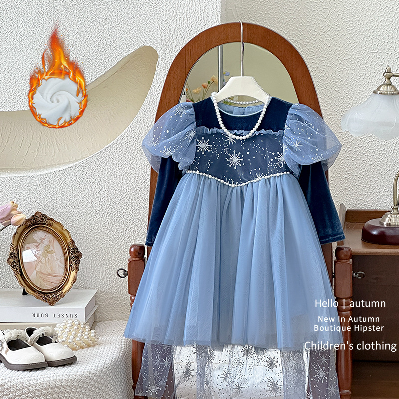 여아 드레스 봄 신상 2026 스타일리쉬 여아 생일 드레스 플러스 벨벳 두꺼운 엘사 공주 드레스 트렌디스토어 가기