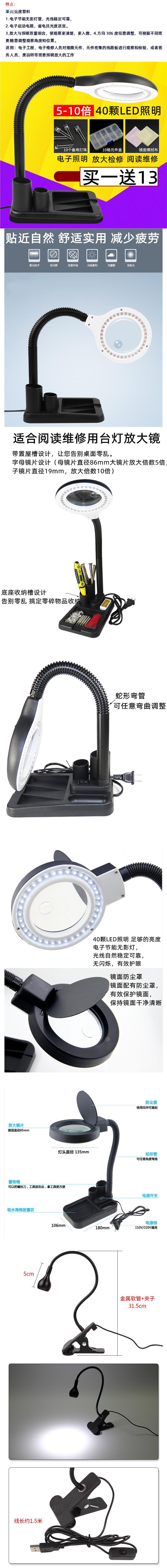 데스크탑 돋보기 LED 책상 램프 전자 수리 마더 보드 노인 독서 10 배 용접 조정 가능한 작업 램프스토어 가기
