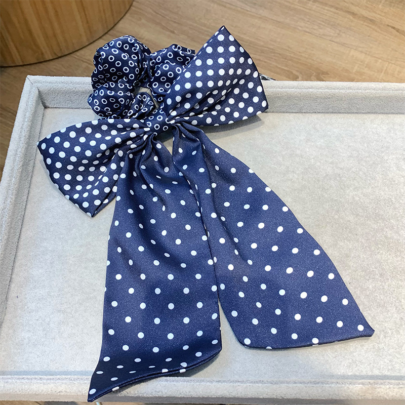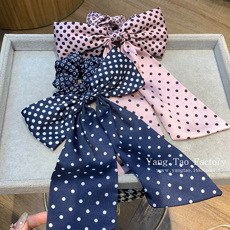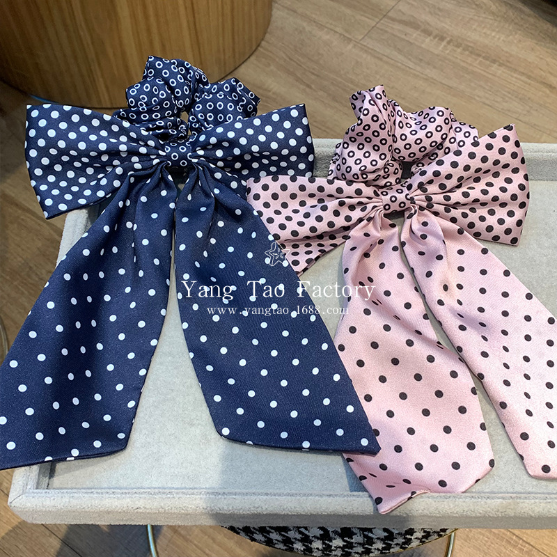고급 센스 웨이브 도트 리본 활 높은 뿔 꼬리 머리 반지 우아한 기질 뒤 머리 반 넥타이 큰 그릇 반지 머리 액세서리스토어 가기