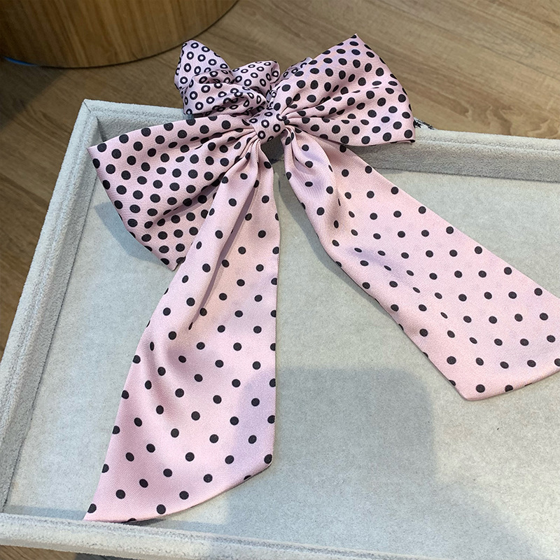고급 센스 웨이브 도트 리본 활 높은 뿔 꼬리 머리 반지 우아한 기질 뒤 머리 반 넥타이 큰 그릇 반지 머리 액세서리