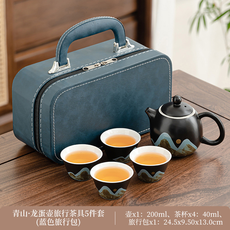 • 황루칭산 [용알 냄비 + 스트레이트 컵 4개] 작은 파란색 가방